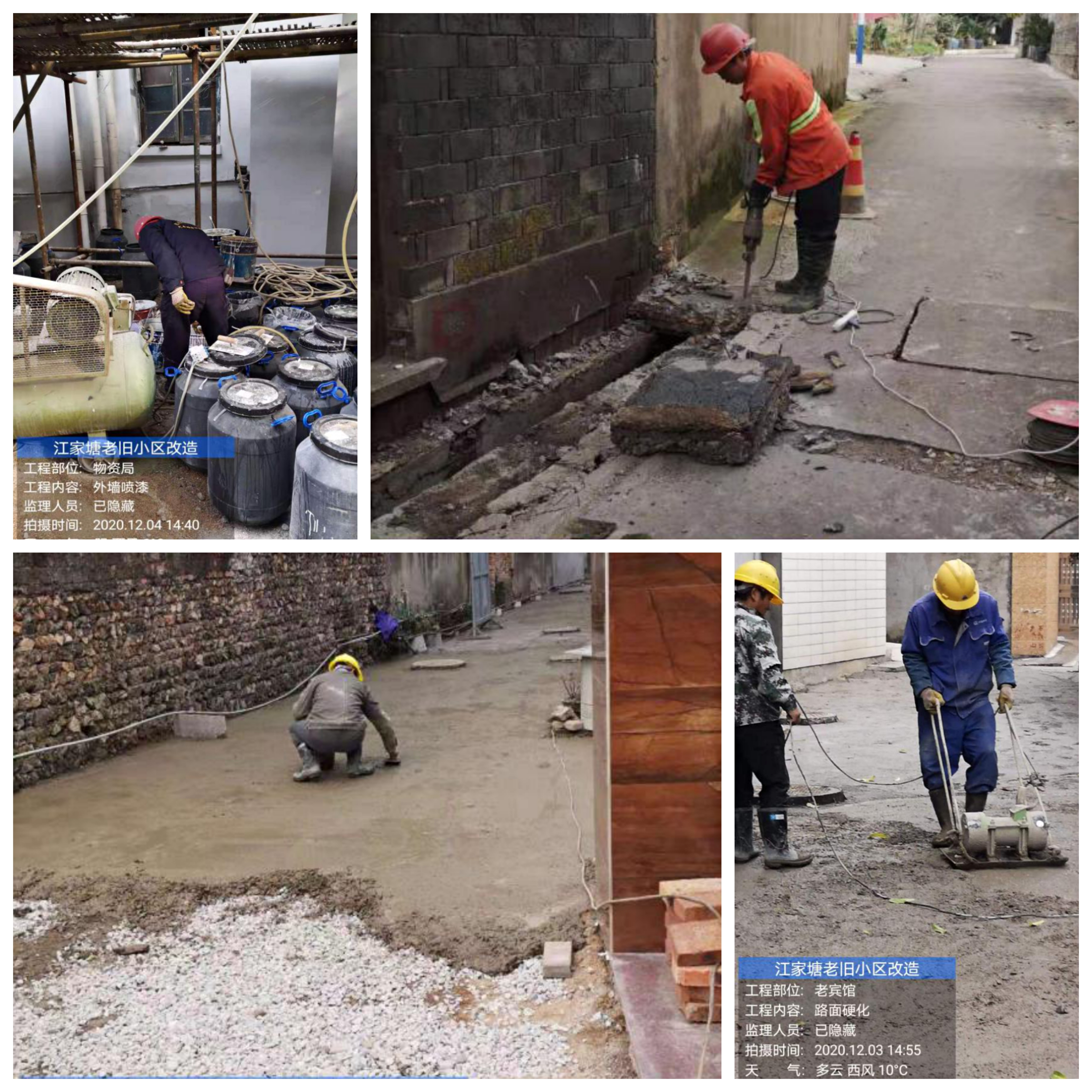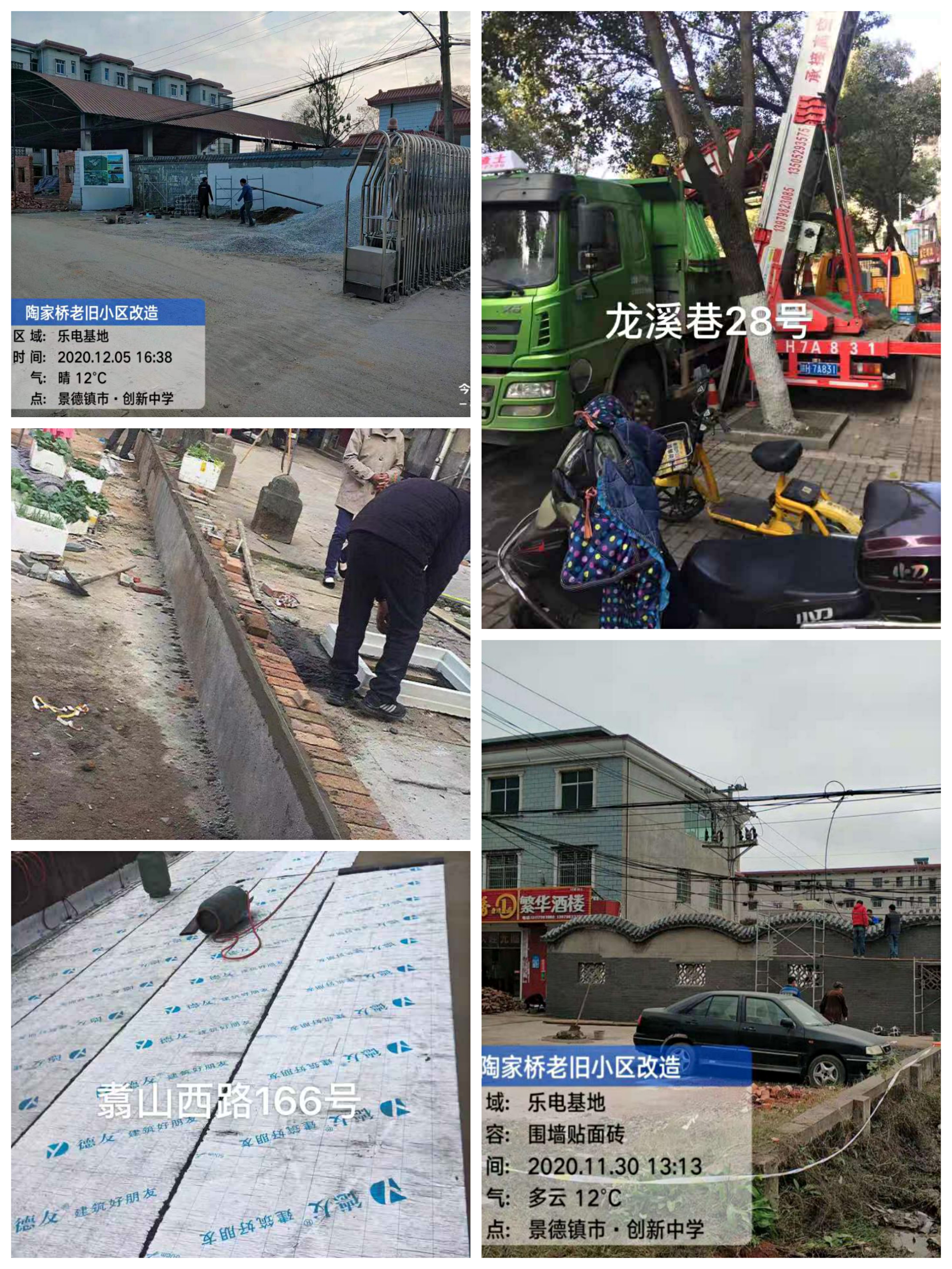 1.武装部宿舍:外立面施工及弱电下地;2.物资局宿舍:外立面施工;3.大寺上:外立面真石漆施工;4.老宾馆宿舍:路面恢复;5.华美商住楼:雨污水改造;6.邮政小区:雨污水管网施工。
