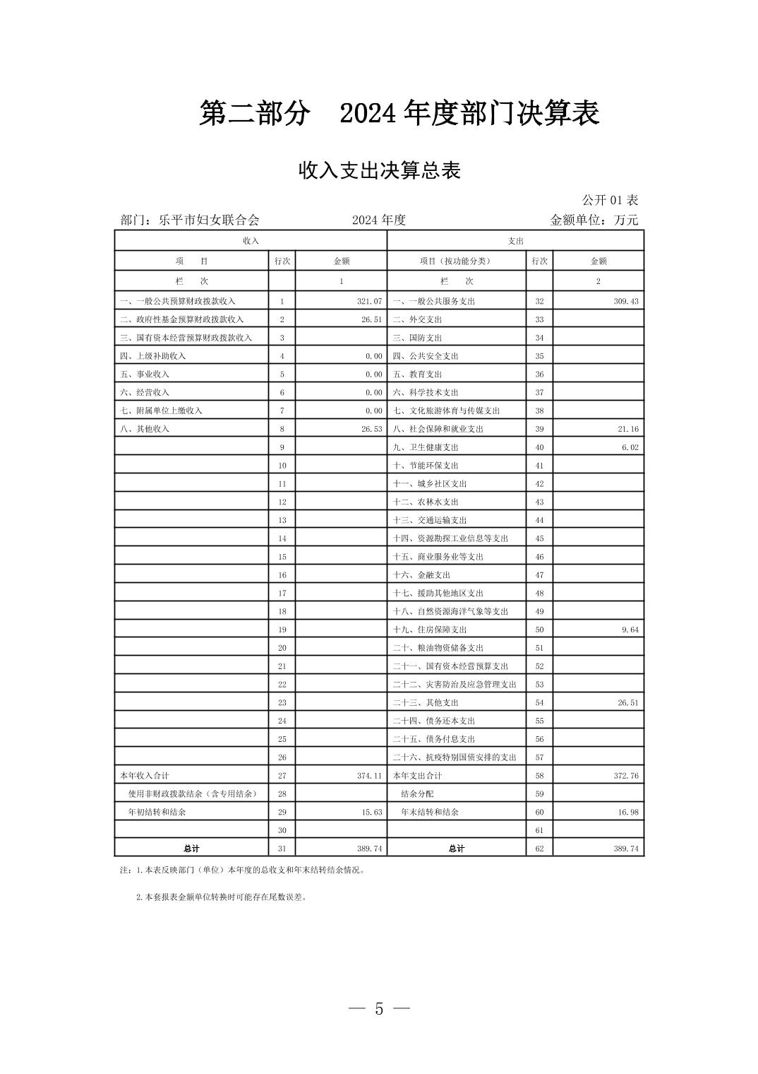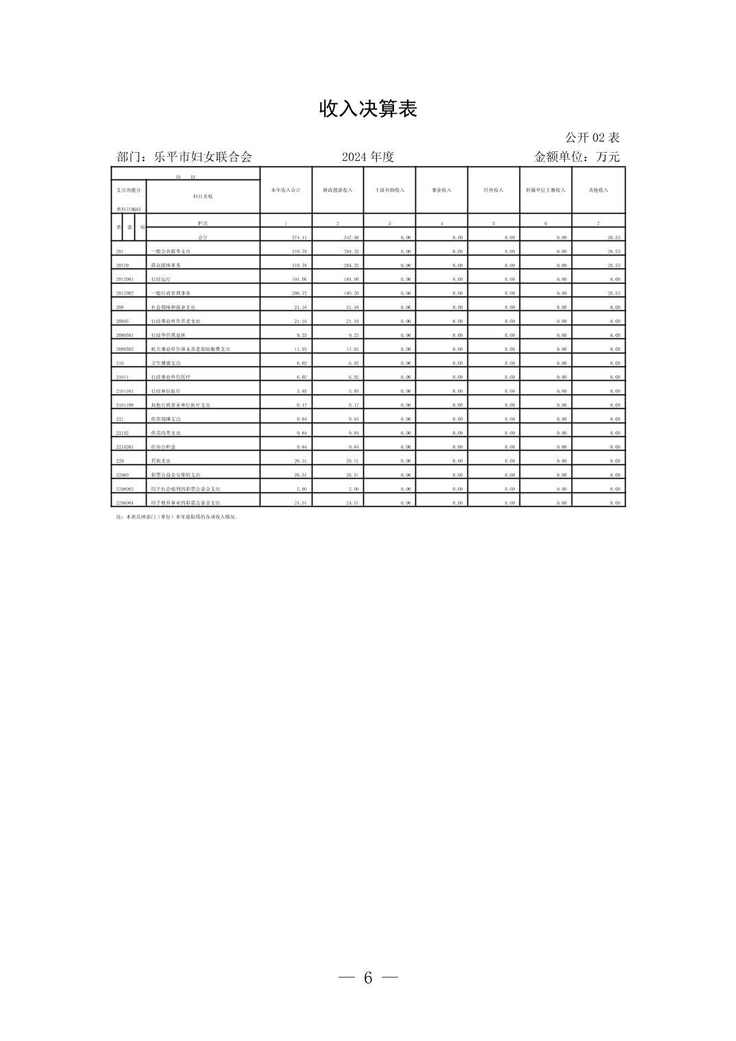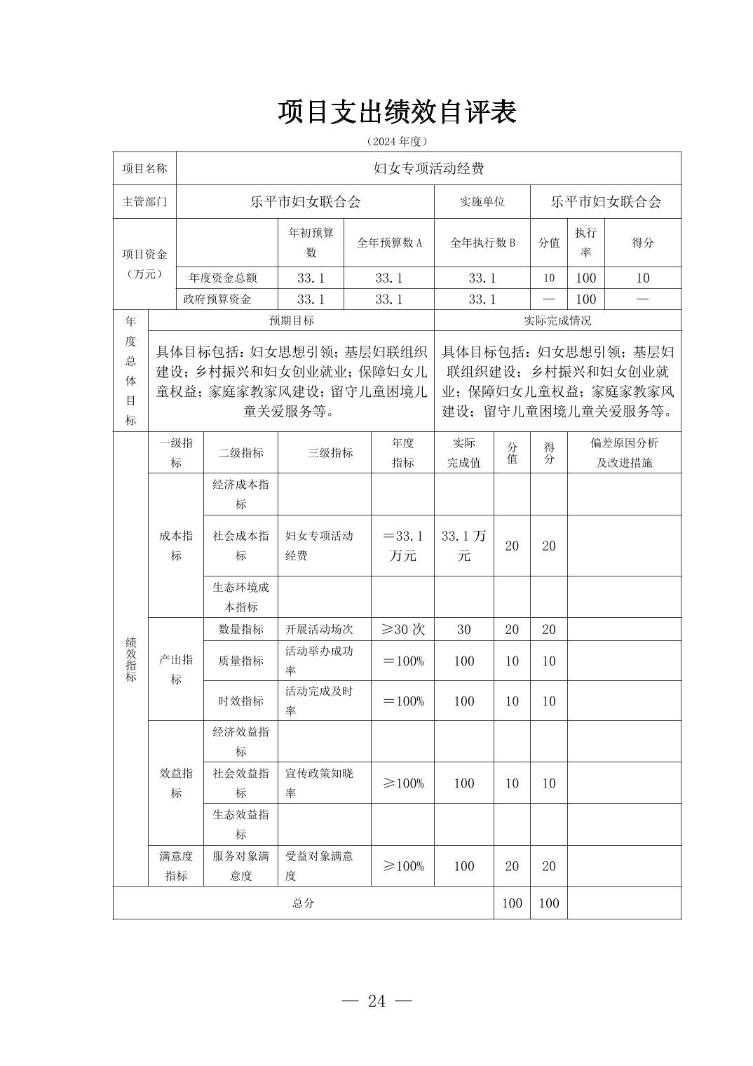乐平市妇女联合会2024年部门决算公开
