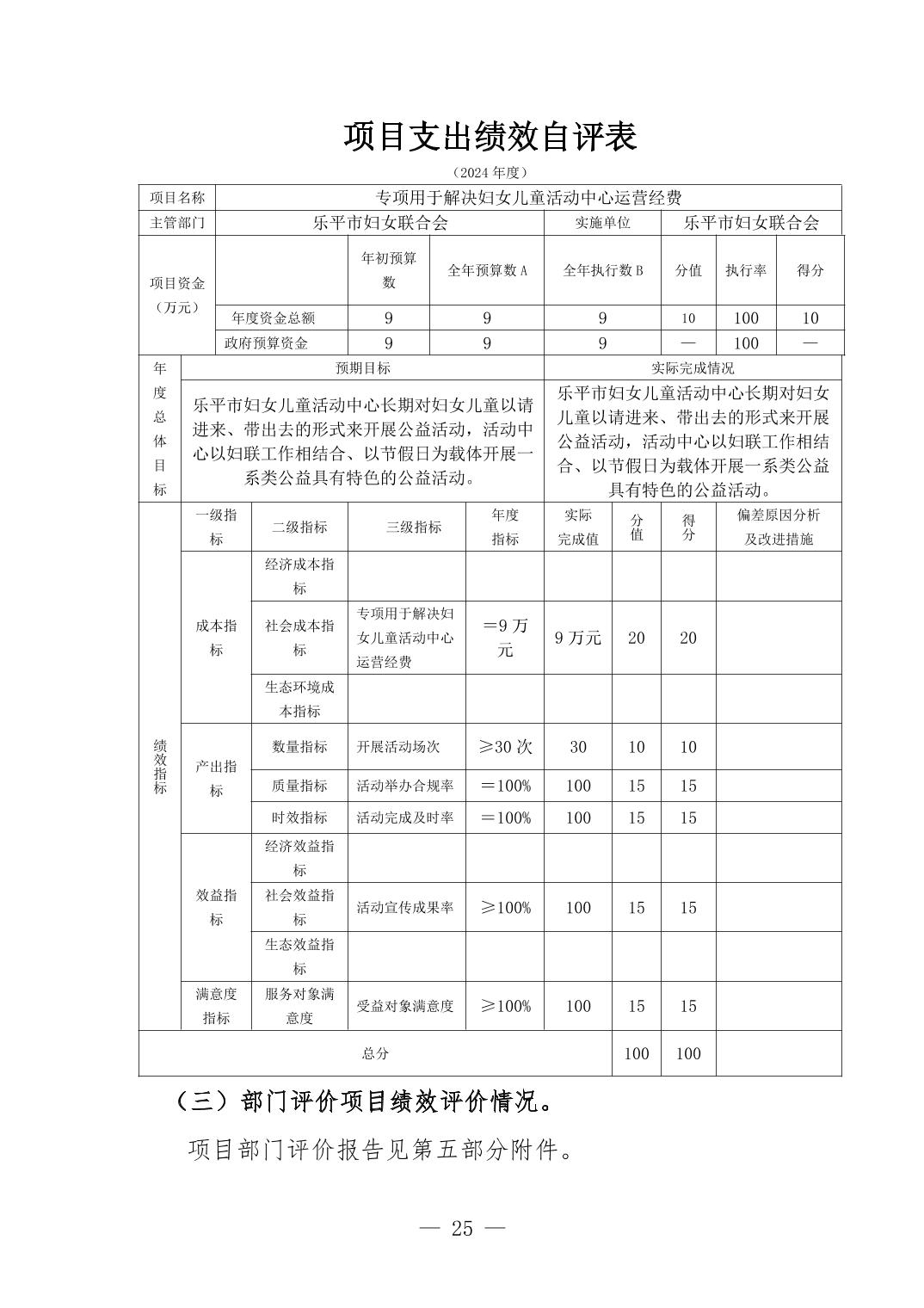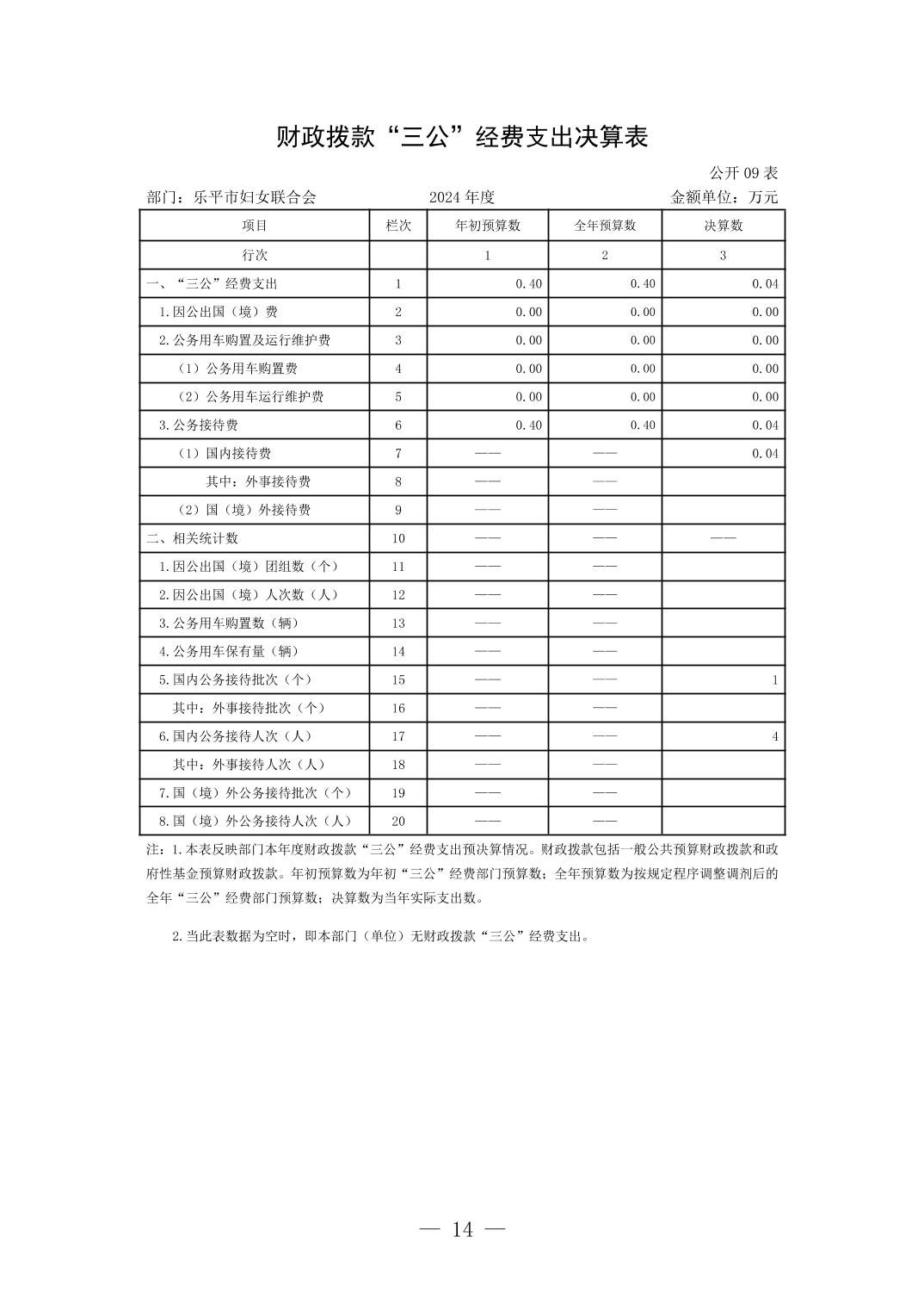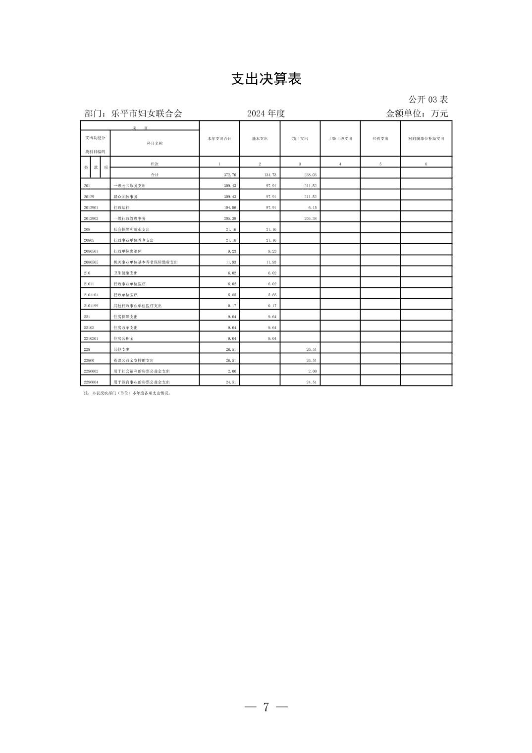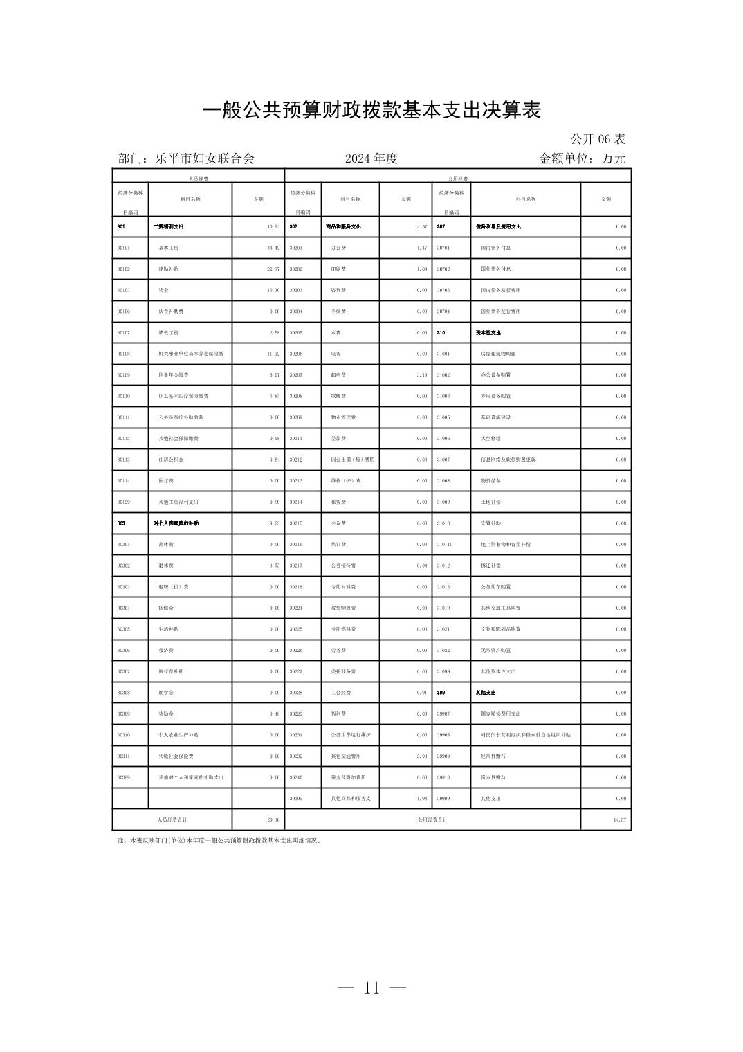 乐平市妇女联合会2024年部门决算公开