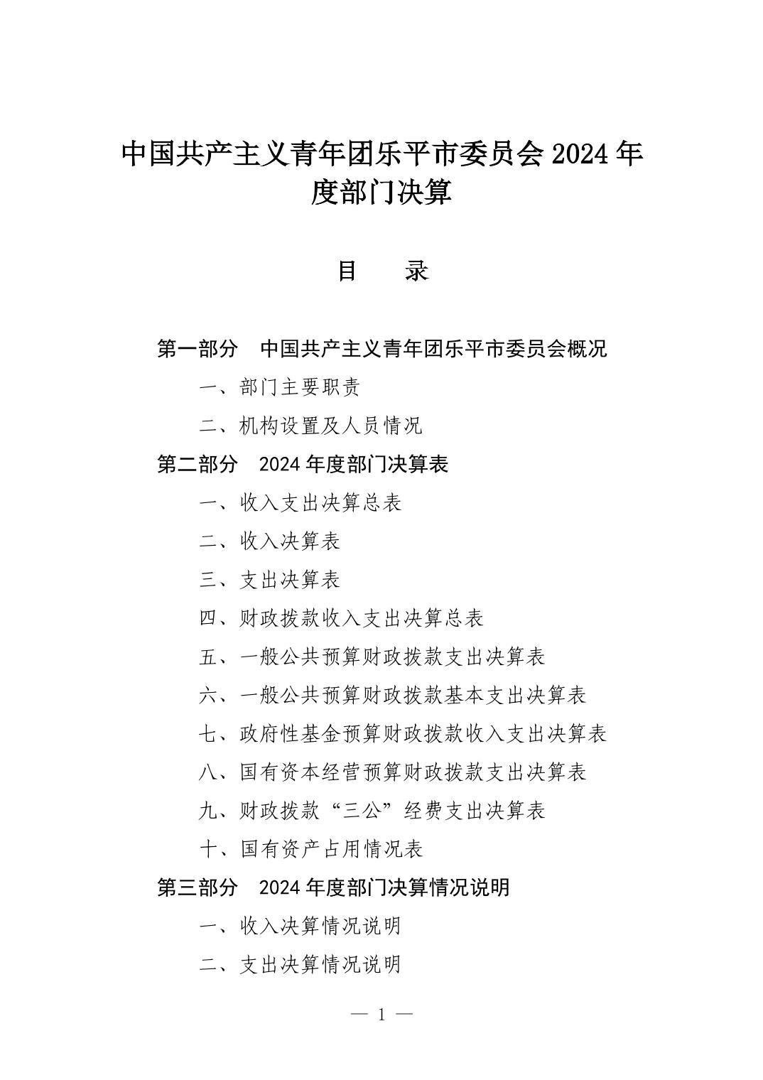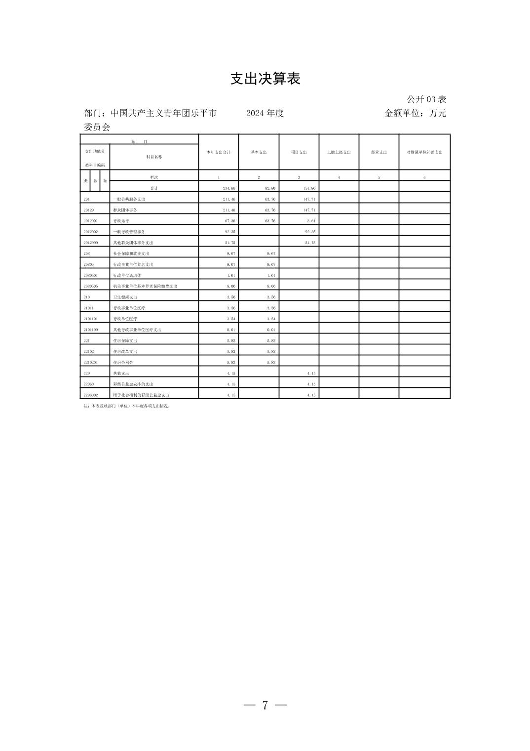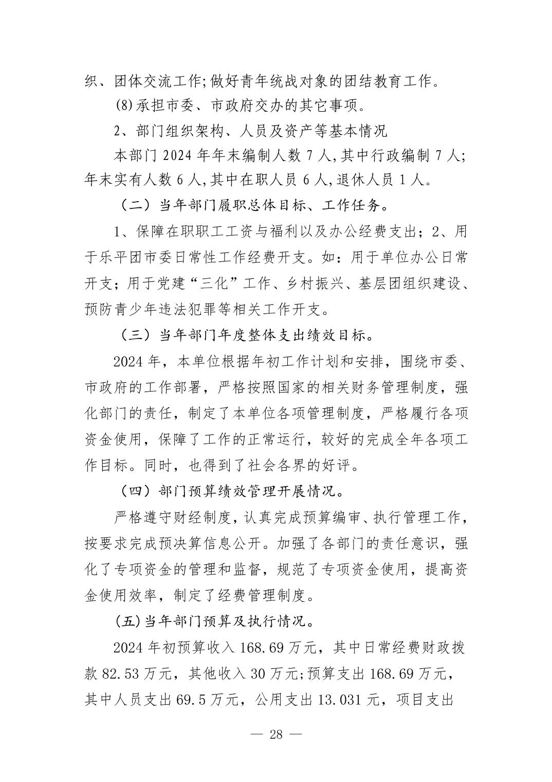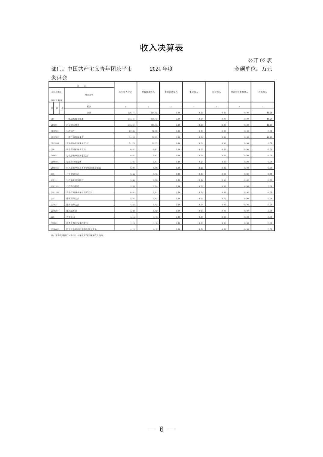 中国共产主义青年团乐平市委员会2024年单位决算公开