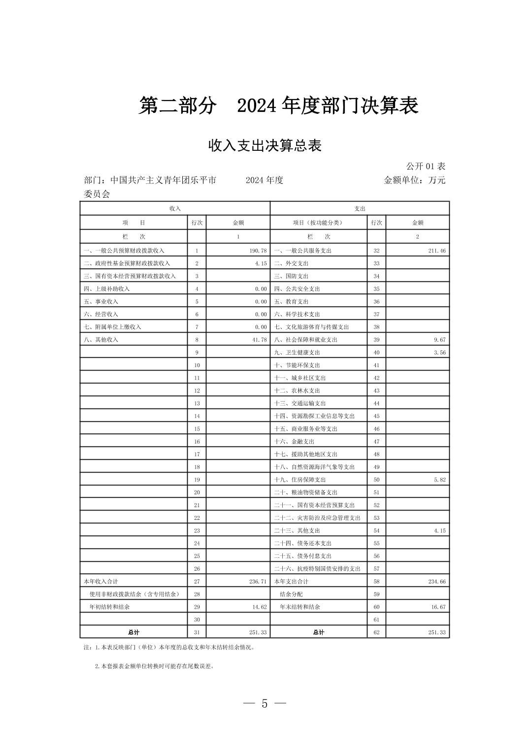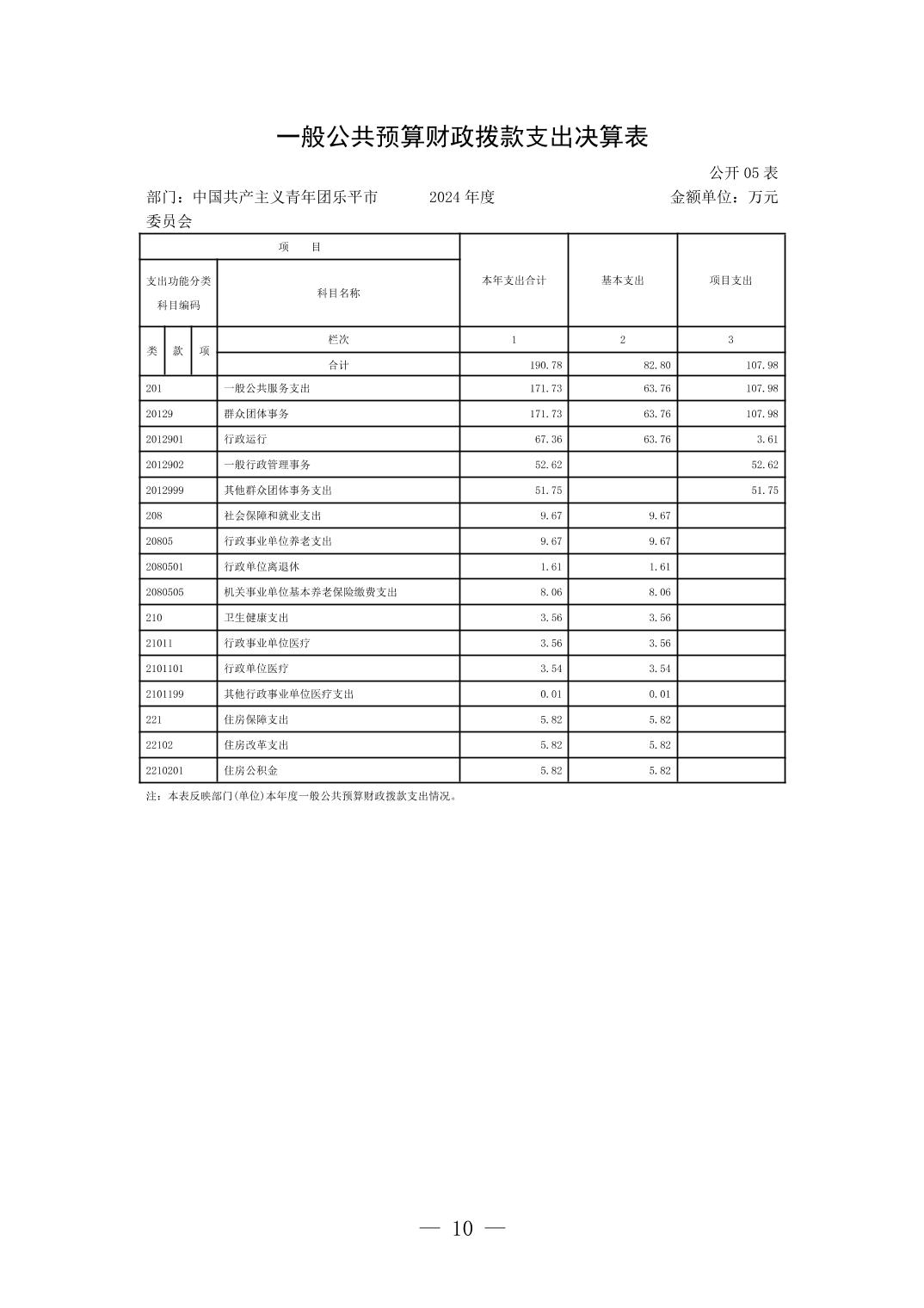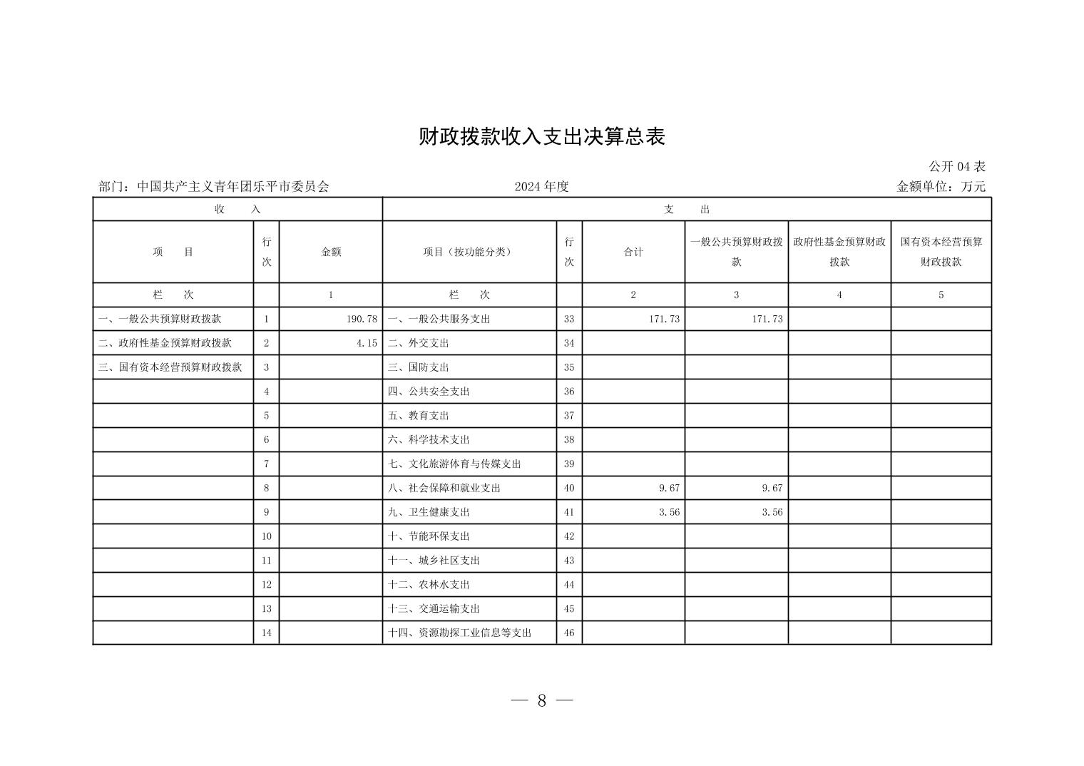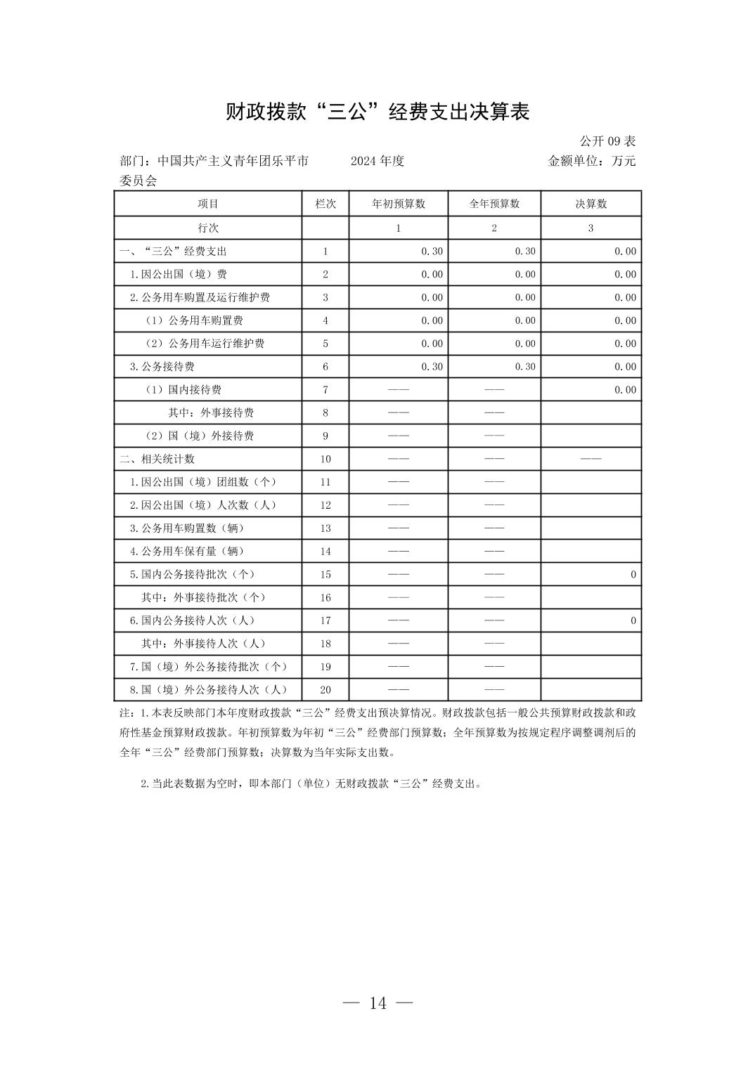 中国共产主义青年团乐平市委员会2024年单位决算公开