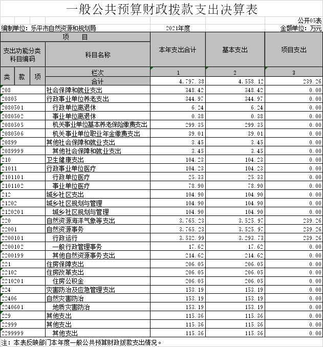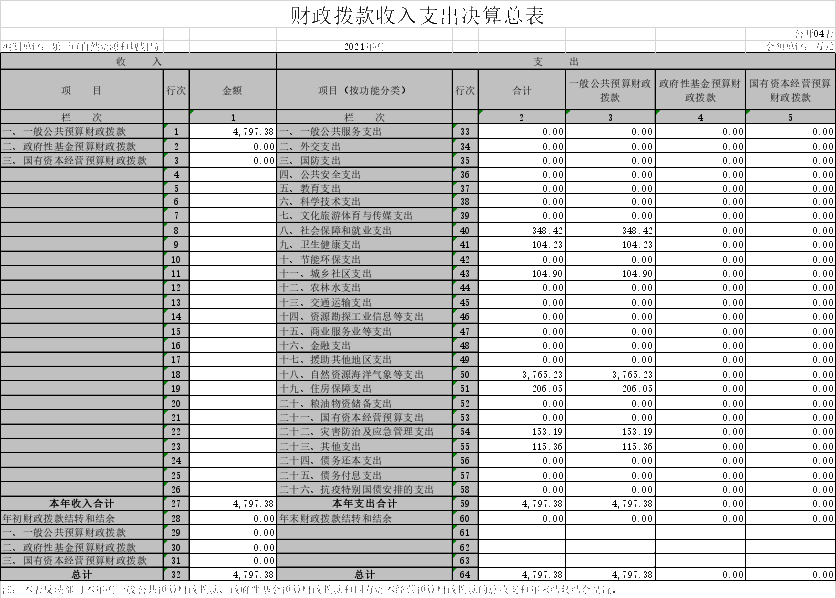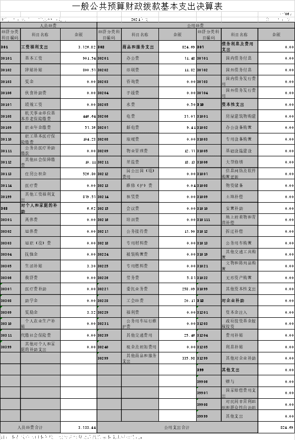 2021年度财政拨款总收入为4797.38万元,总支出4797.38万元。其中基本支出4558.12万元,项目支出239.26万元;基本支出中人员经费支出3733.44万元,日常公用经费支出824.69万元。