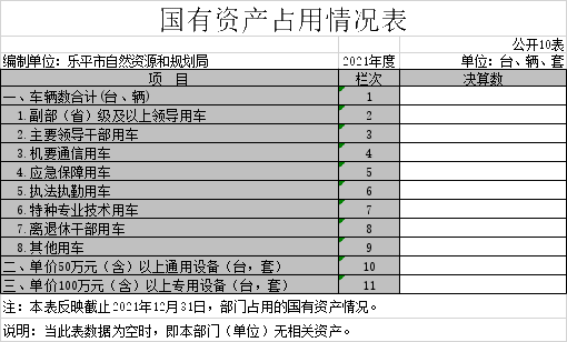截至2021年12月31日,本部门无国有资产占用情况,见公开10表《国有资产占用情况表》。