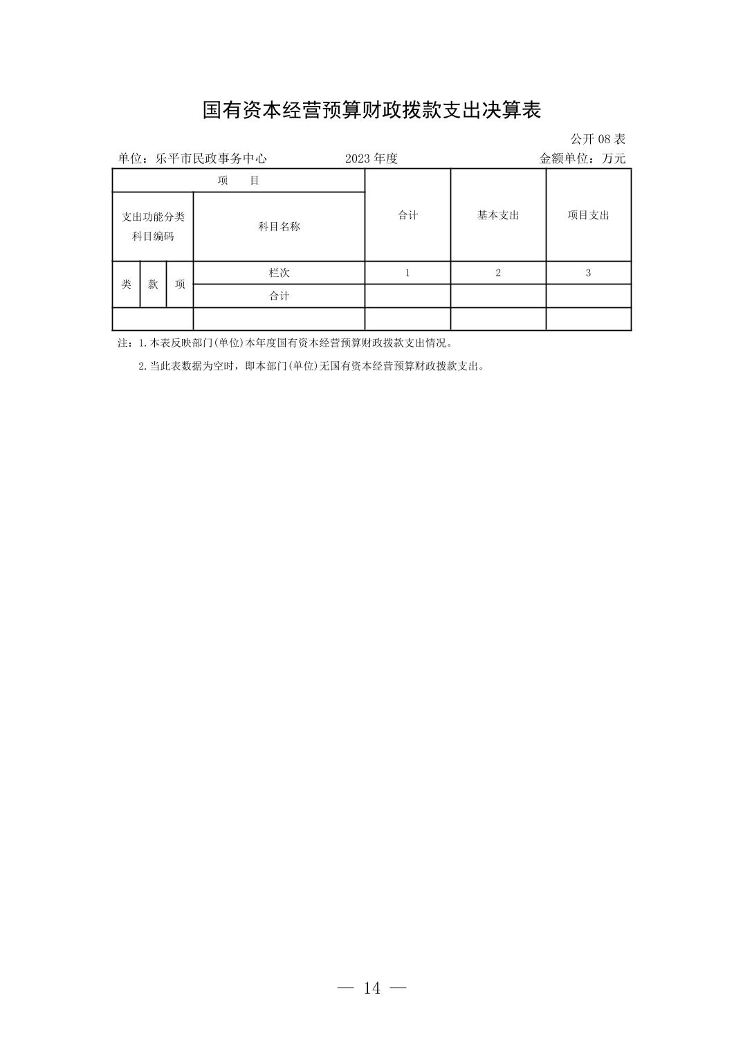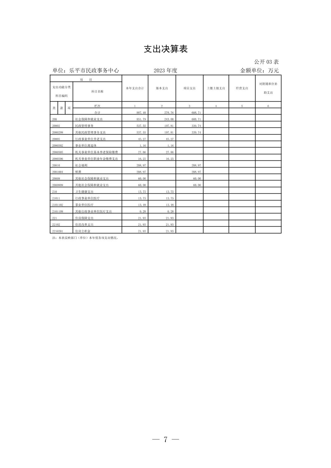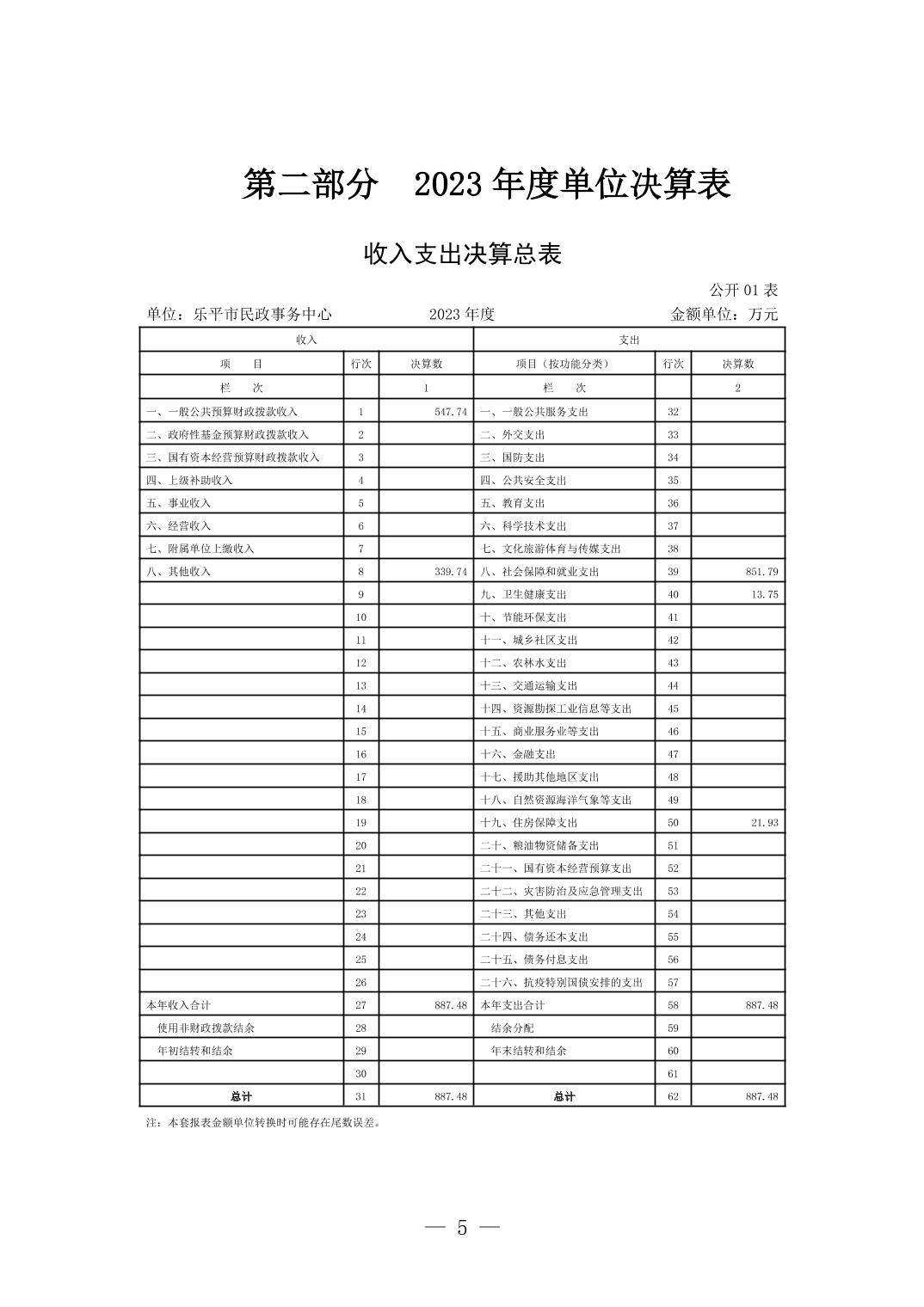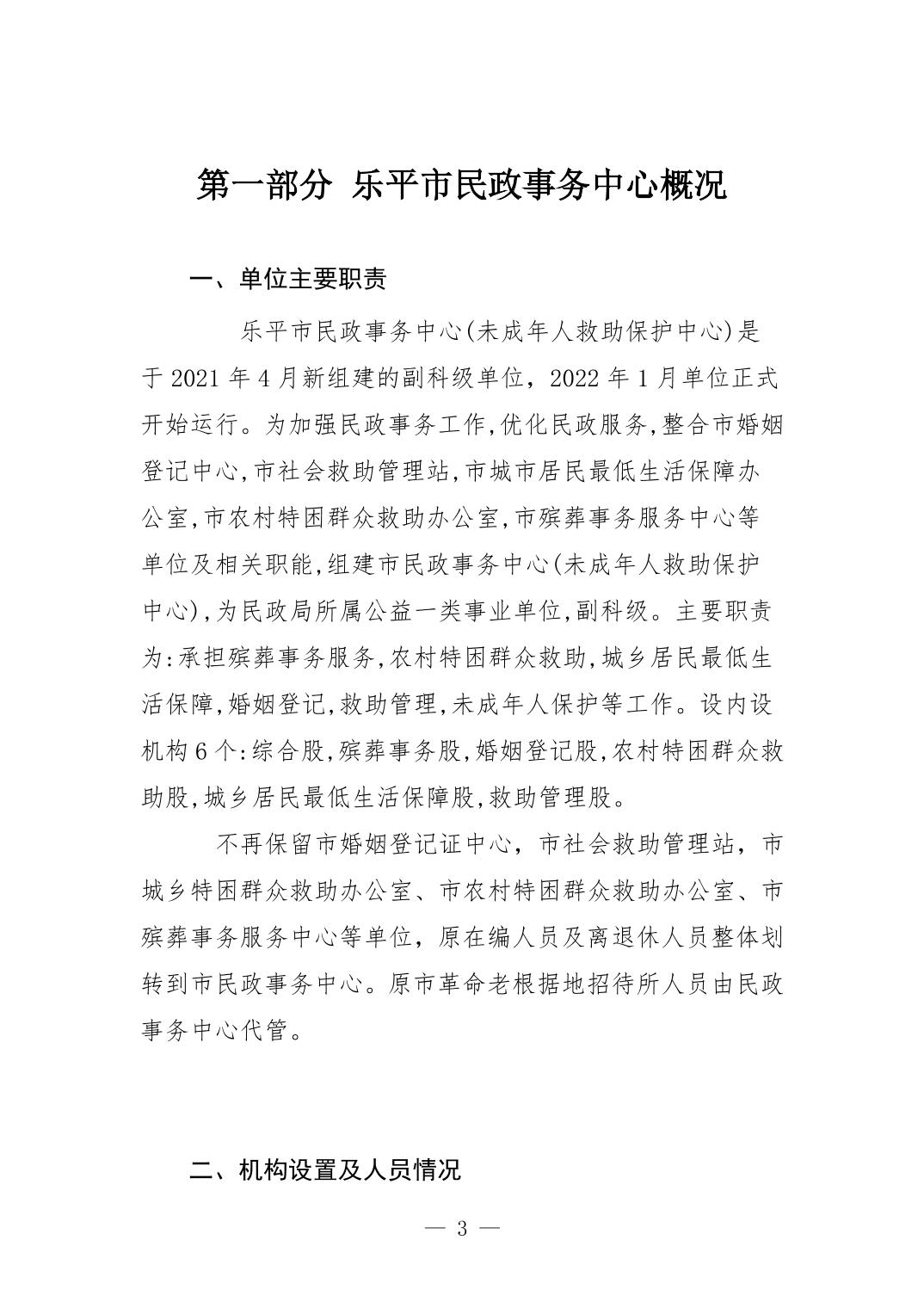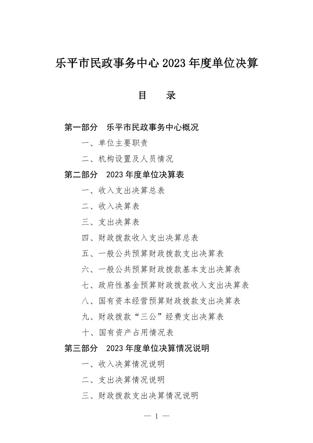 乐平市民政事务中心2023年度单位决算
