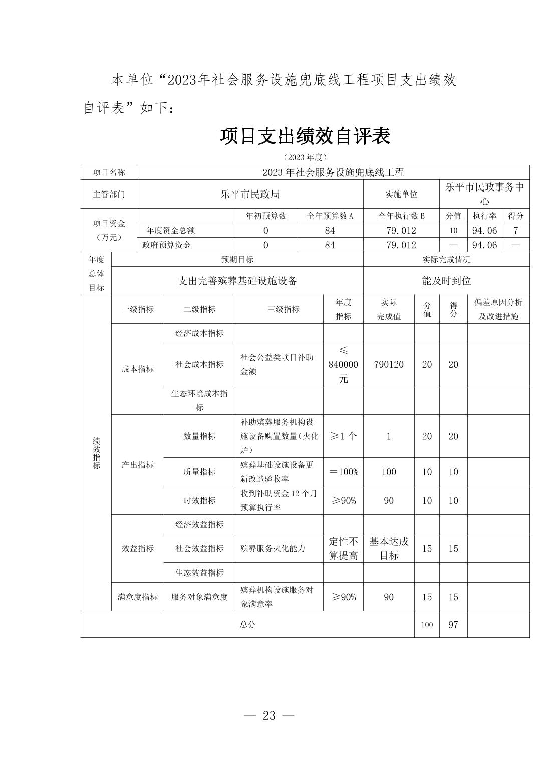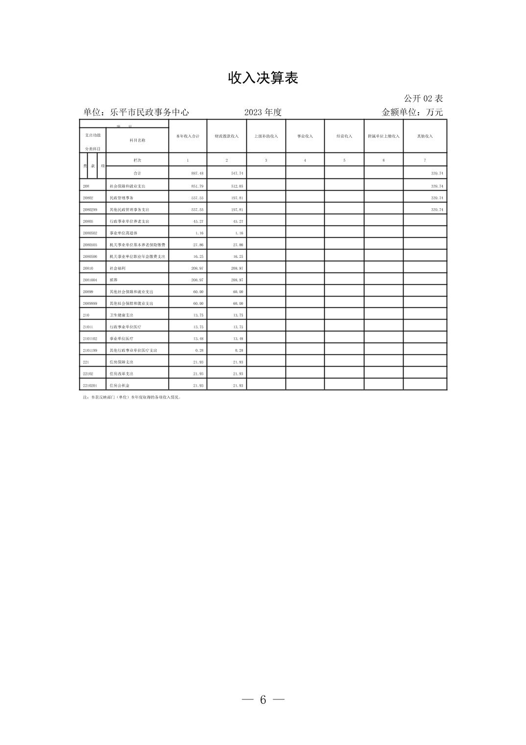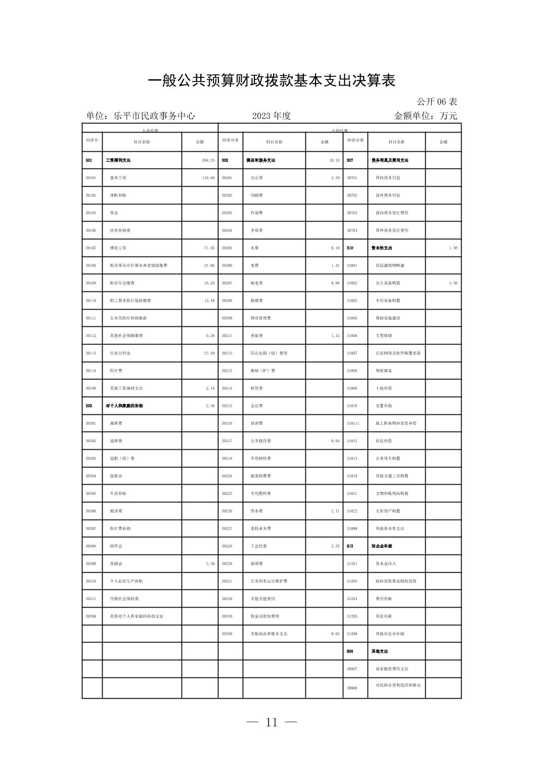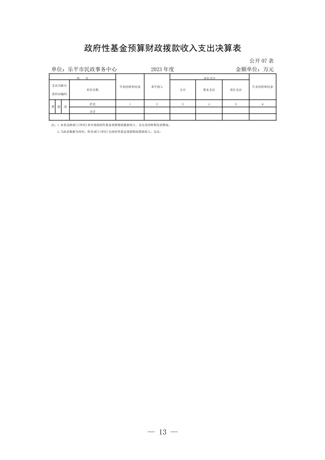 乐平市民政事务中心2023年度单位决算