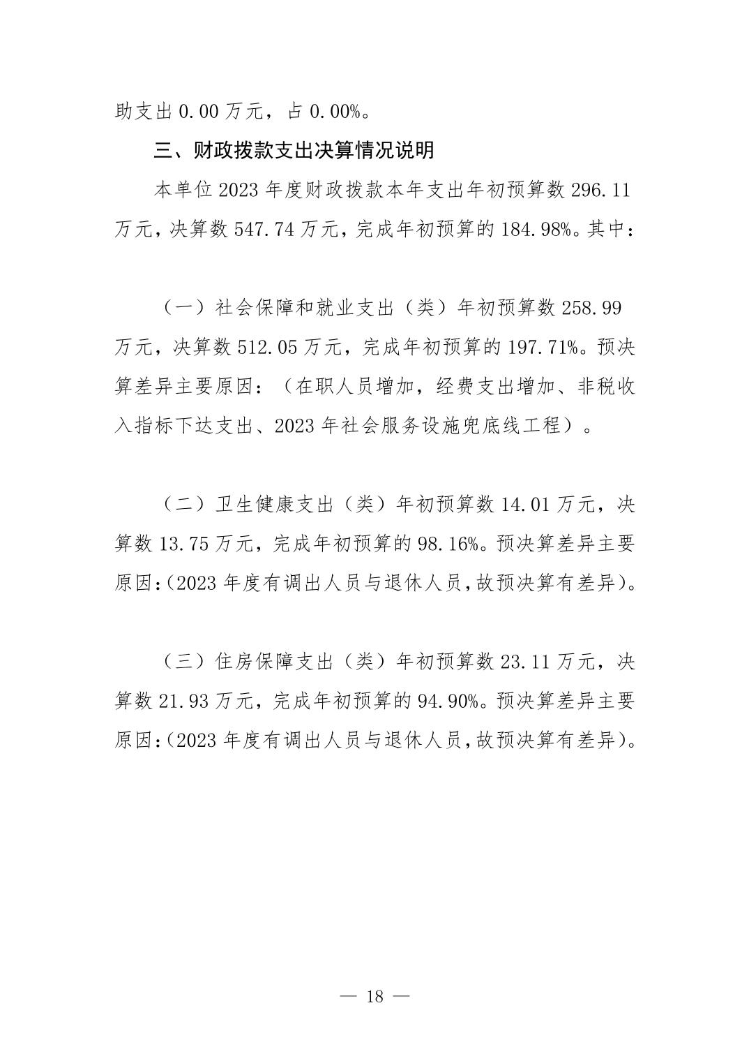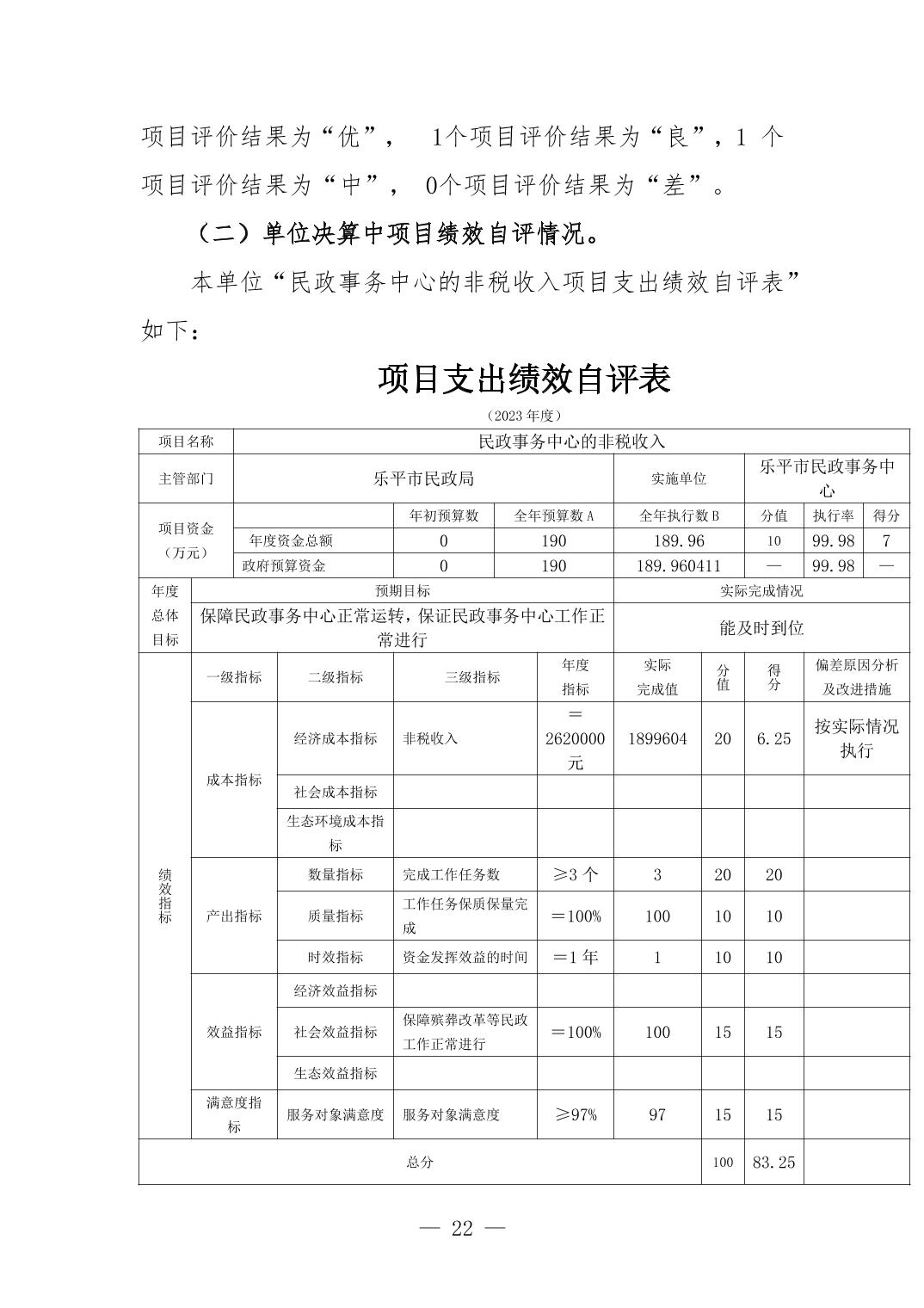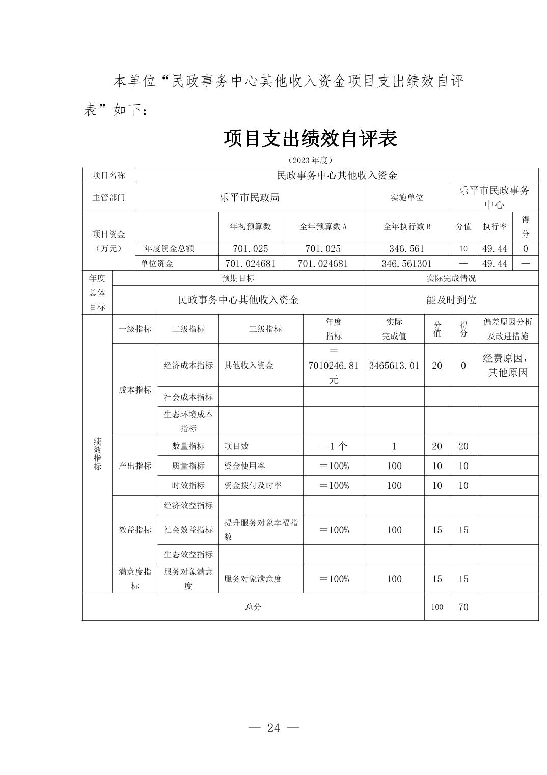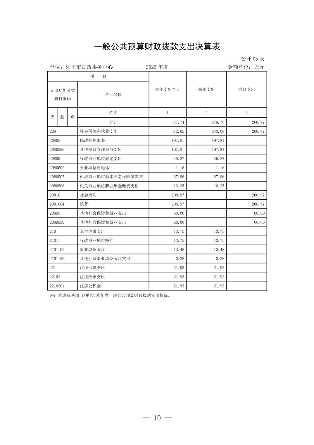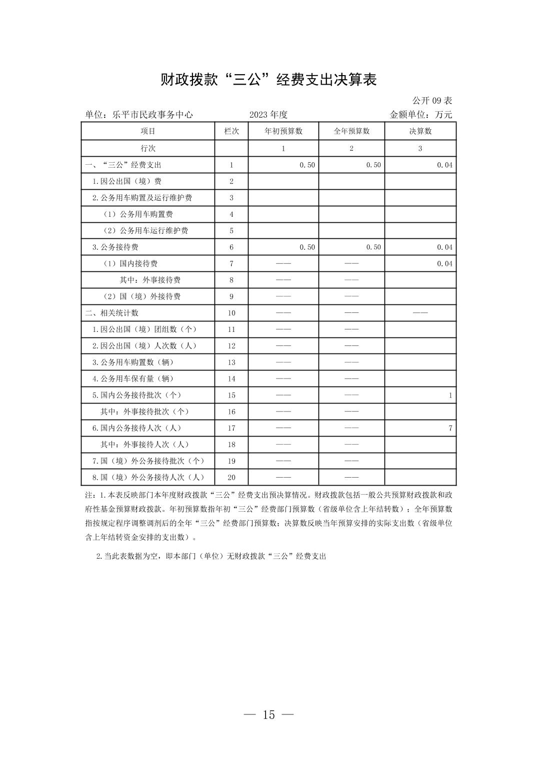 乐平市民政事务中心2023年度单位决算