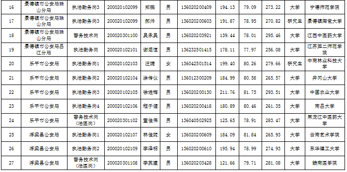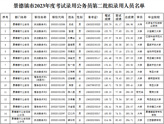景德镇市(含乐平)2023年度考试录用公务员第二批拟录用人员公示