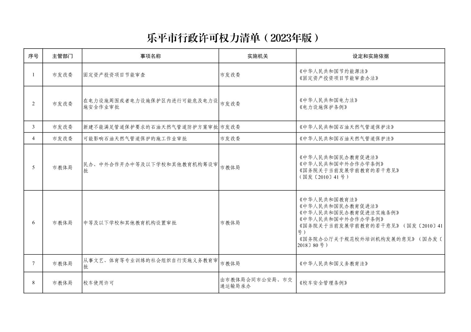 附件:乐平市行政许可事项清单(2023年版)