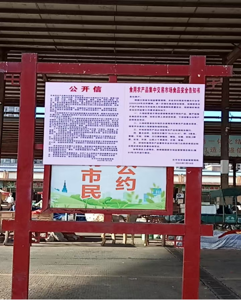 通过在中远蔬菜农产品批发市场张贴食用农产品集中交易市场食品安全告知书、公开信,逐门逐户宣贯国家市场监管总局81号令等方式,引导市场开办者和商户切实履行食品安全主体责任,严格落实入场查验和进货查验制度。