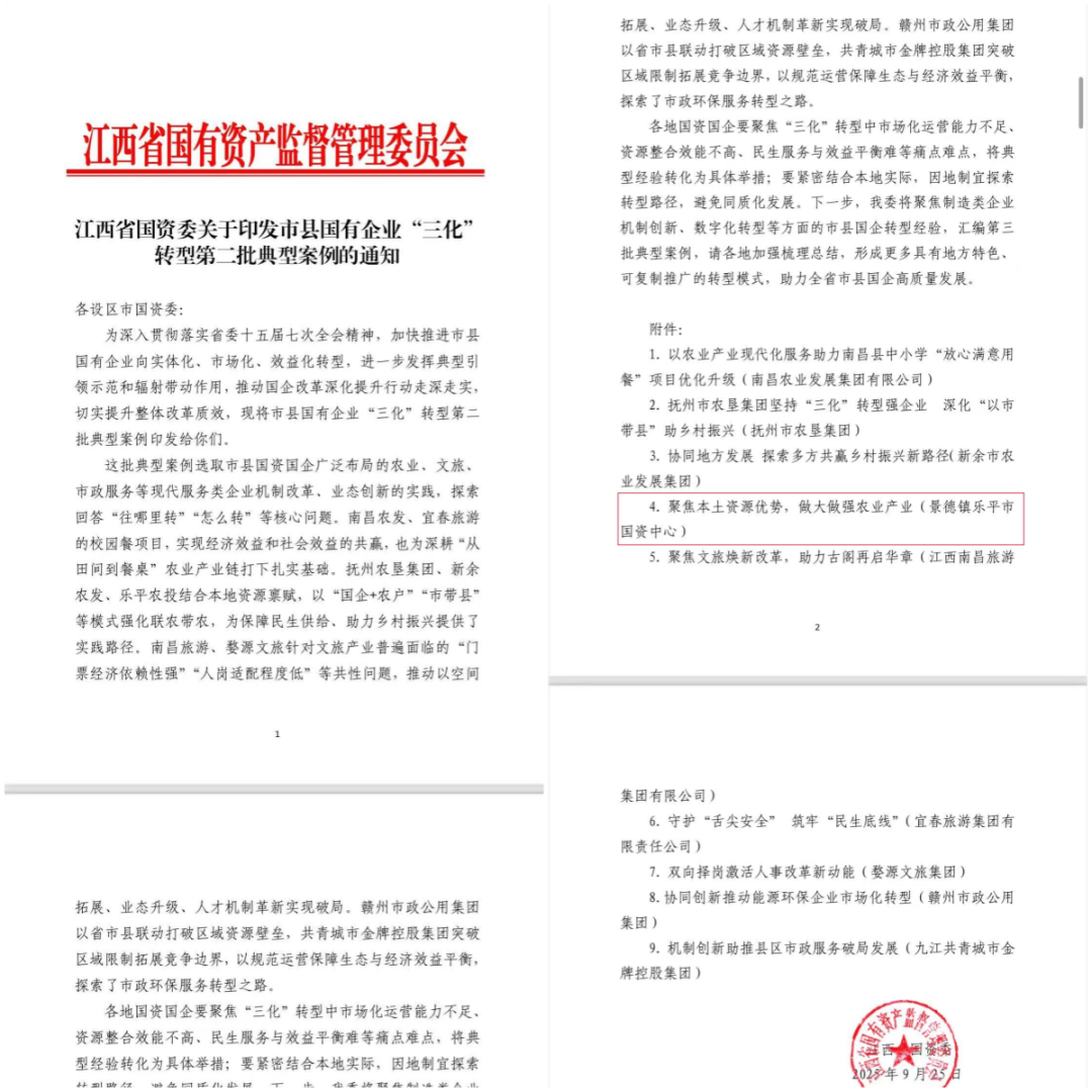 近日,江西省国资委发布市县国有企业“三化”转型第二批典型案例,我市国资国企凭借聚焦本土资源优势、推动农业产业提质升级的实践成功入选。此举不仅是对该市国资国企改革发展成效的肯定,更为全省县域农业类国企高质量发展提供可复制、可推广的经验。