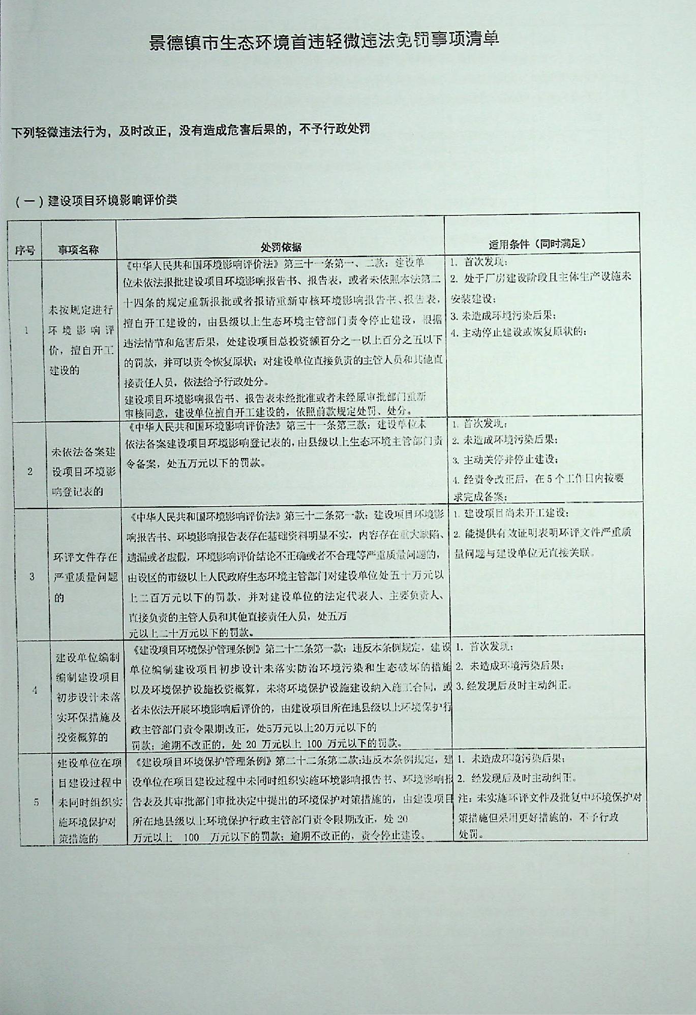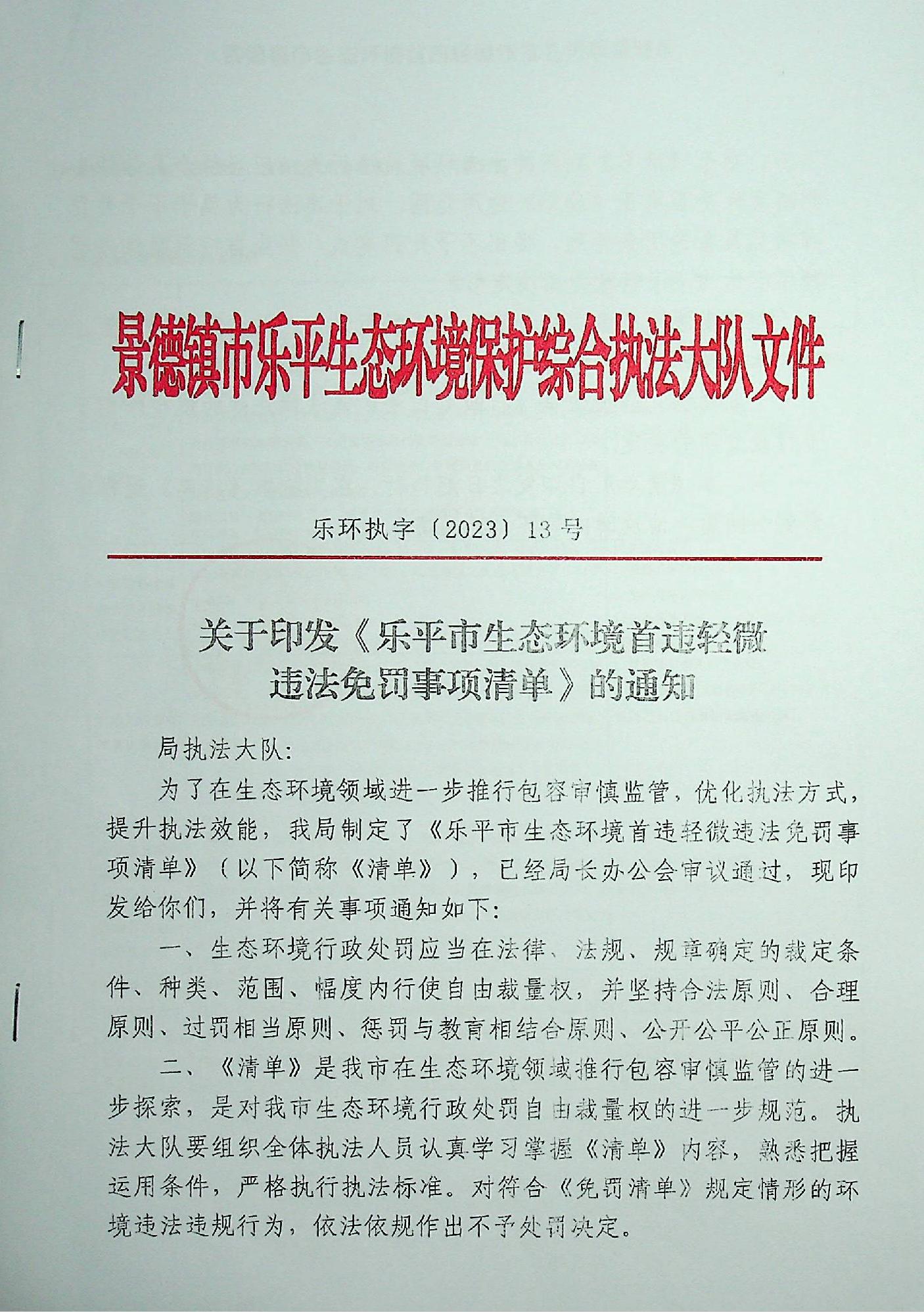关于印发《乐平市生态环境首违轻微违法免罚事项清单》的通知