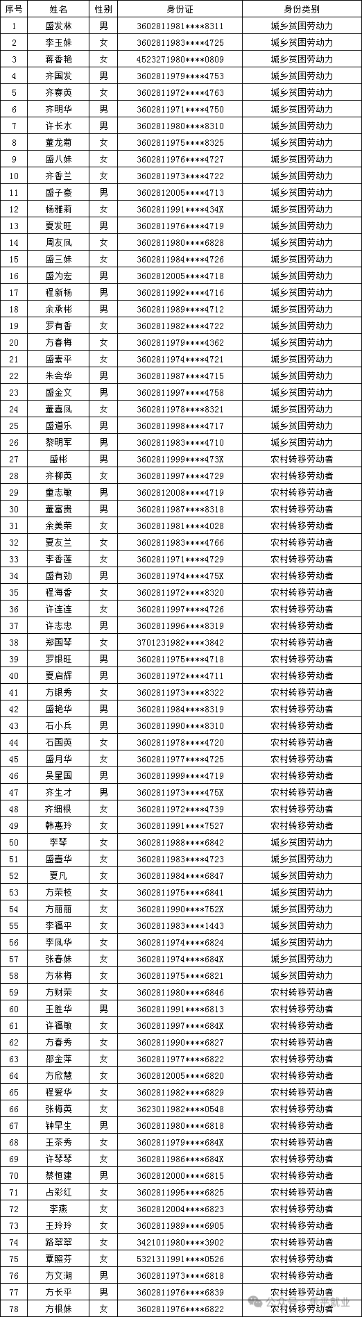 根据《关于印发〈江西省就业补助资金职业培训补贴管理办法〉的通知》(赣人社发[2019]3号)、《江西省人力资源和社会保障厅 江西省财政厅关于<做好职业技能提升行动专账资金使用管理工作>的通知》(赣人社发[2022]30号)文件精神,我中心已对乐平市星辰职业培训学校2025年11月7日及11月8日申报的2期美容师培训班进行了审核。通过现场巡查、事后跟踪调查,该2期培训班共计78人达到了规定的教学课时,符合享受国家职业技能培训补贴的条件,现将有关信息公示如下: