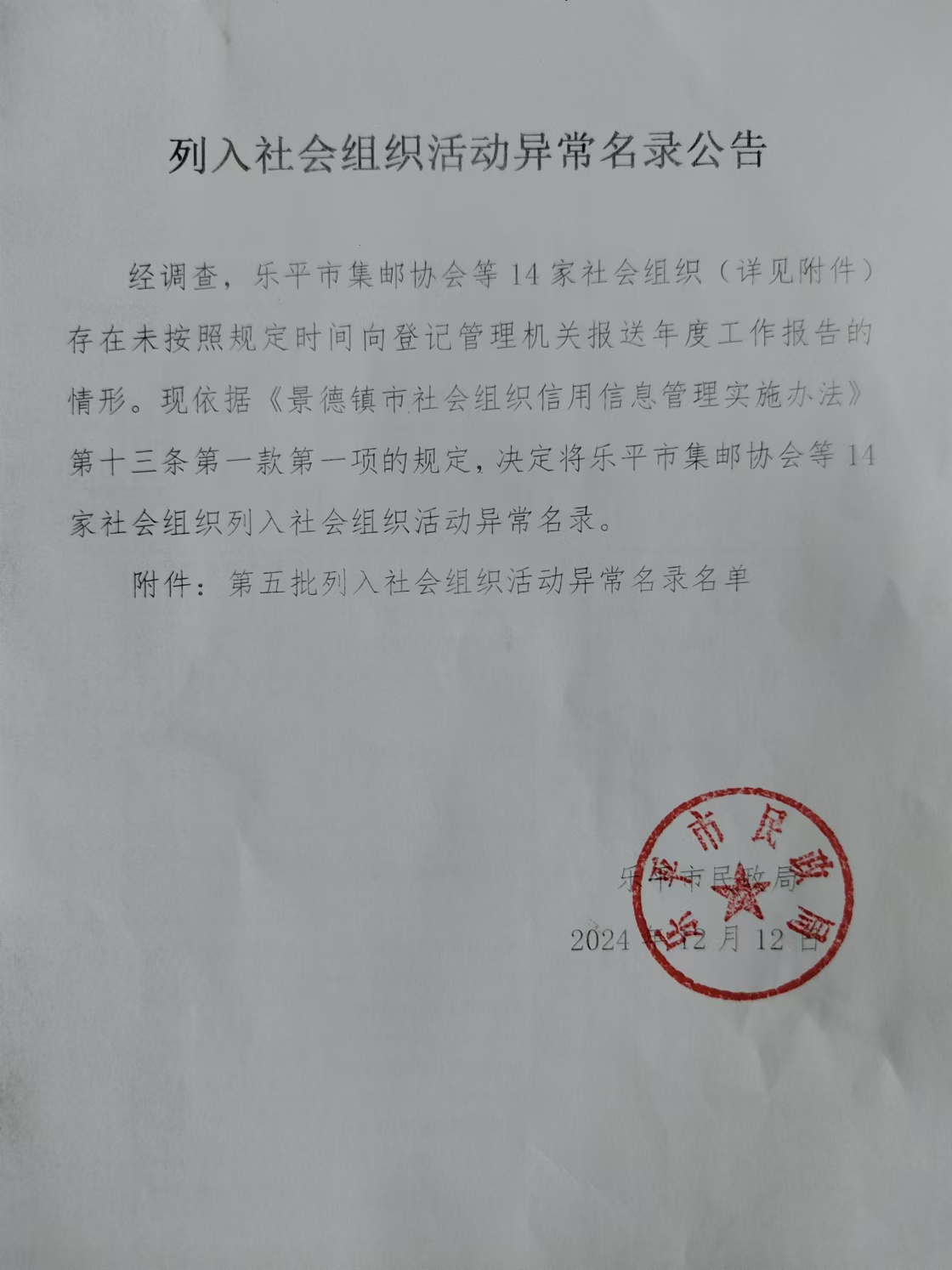 列入社会组织活动异常名录公告(14家)