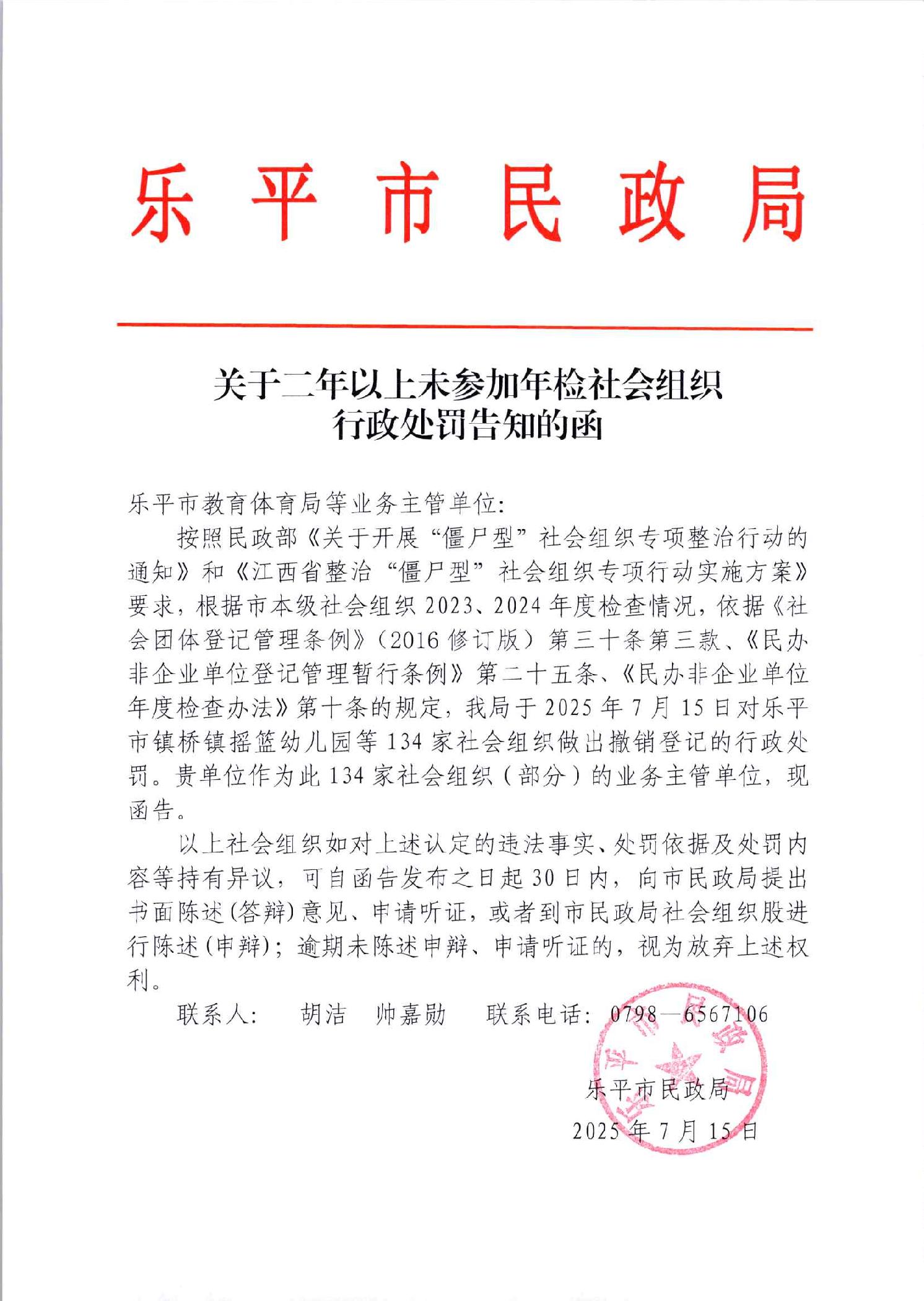 关于二年以上未参加年检社会组织行政处罚告知的函