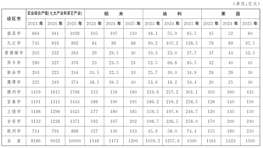 原文链接:江西省人民政府关于印发江西省农业七大产业高质量发展三年行动方案(2023-2025年)的通知