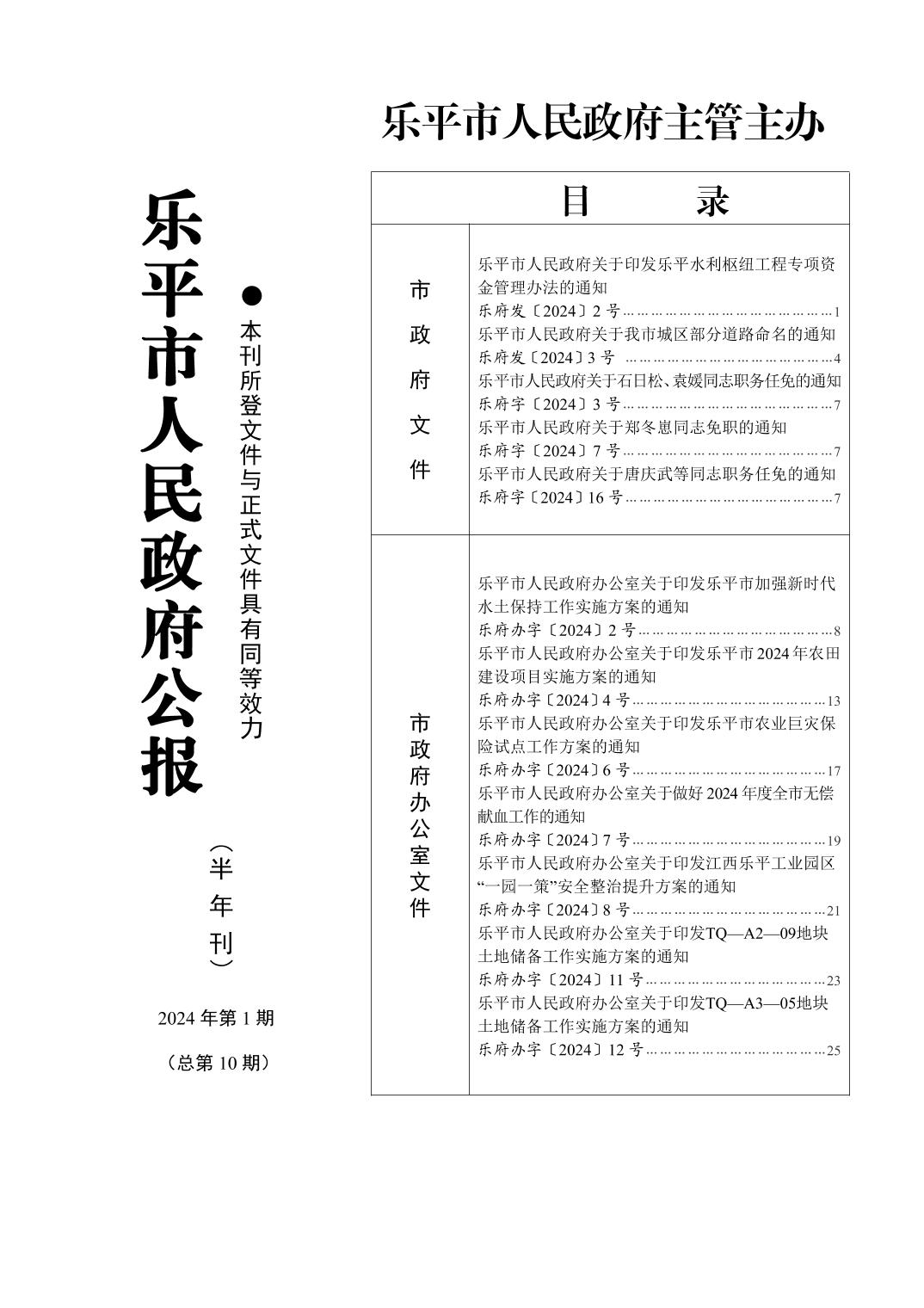 乐平市人民政府公报第10期