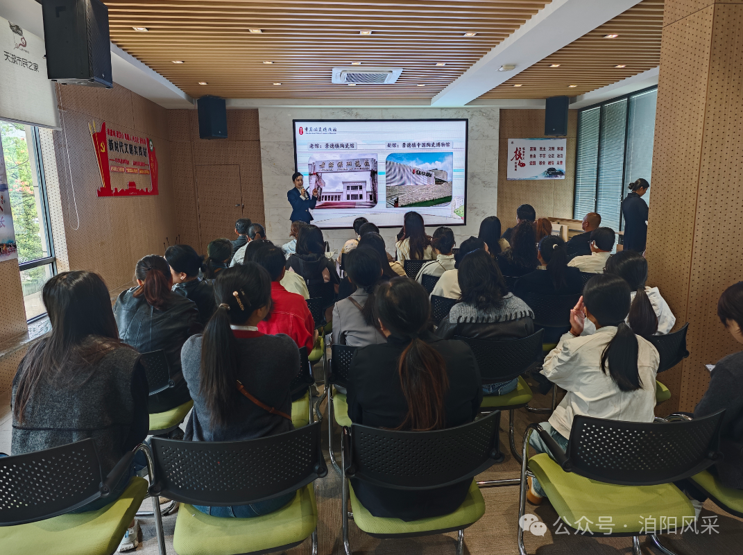 二楼多功能厅内,“景博·瓷文化”课堂同样座无虚席。活动采用“高清视频展播+专业教育员现场讲授”的沉浸式教学模式,通过震撼的视觉影像与生动的现场解说,将陶瓷的制作工艺、美学价值及历史传承娓娓道来。专业解说员不仅讲解了陶瓷的原料选取、成型技法、装饰工艺和烧制过程,还分享了许多鲜为人知的历史典故,让参与者在深入了解陶瓷文化的同时,感受到江西陶瓷文明的独特魅力。