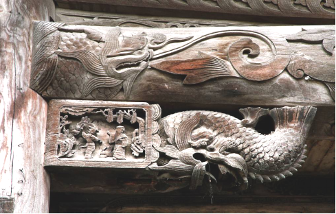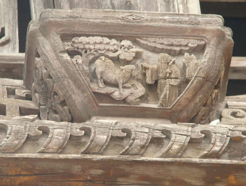 整,结构坚固,构架稳定,几经修葺整旧如旧,虽风貌沧桑,然风姿坚挺。当为乐平古戏台中万年戏台类型的典型杰作。戏台造型气势恢宏,端庄肃穆。横路戏台是第三次全国文物大普查发现的新成果。戏台正面戏台鳌鱼和戏文人物雀替戏台明间梁