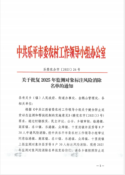 关于批复2025年监测对象标注风险消除名单的通知