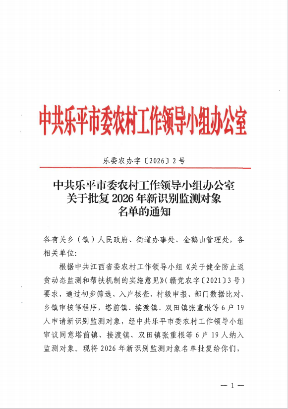关于批复2026年新识别监测对象名单的通知