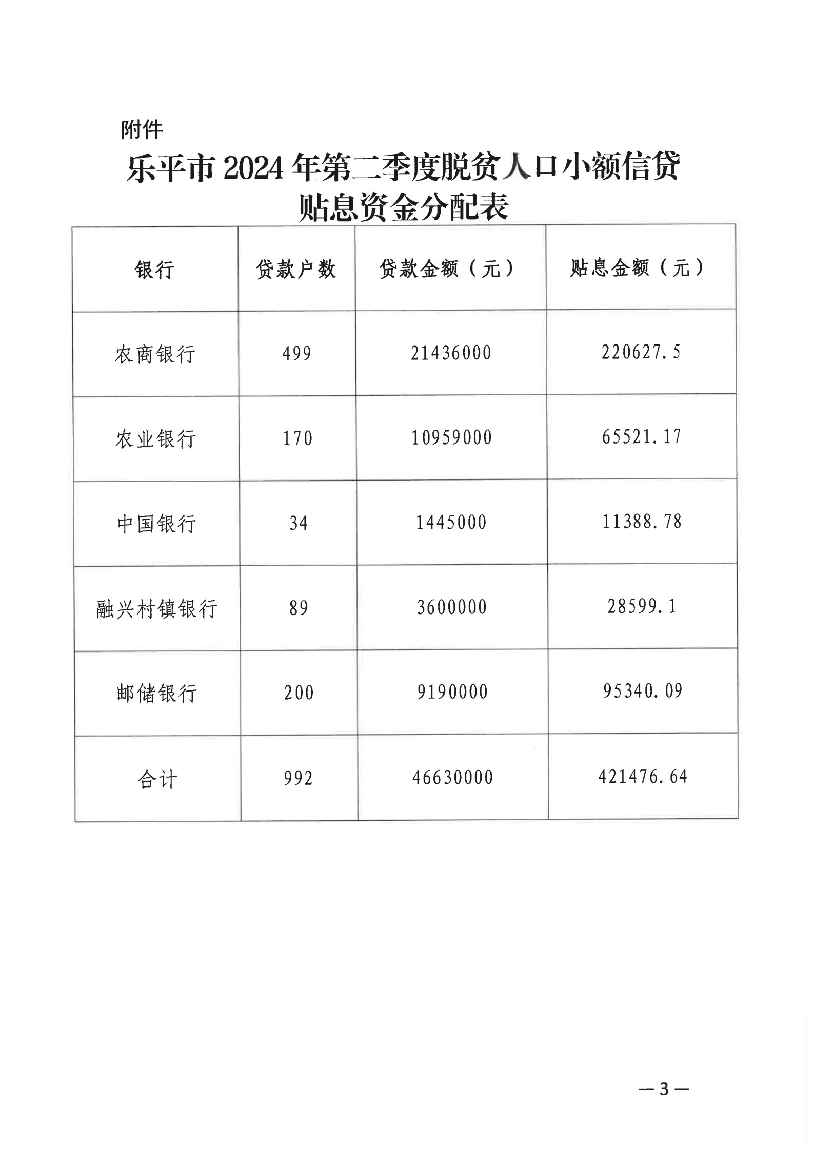 关于下达我市脱贫人口小额信贷2024年第三季度贴息资金的通知