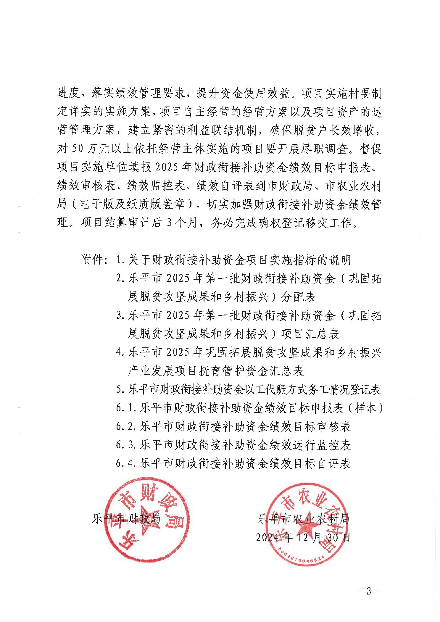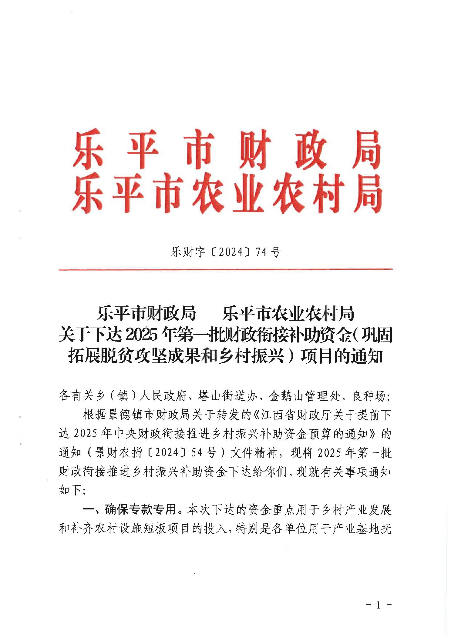 关于下达2025年第一批财政衔接补助资金(巩固脱贫攻坚成果和乡村振兴)项目的通知