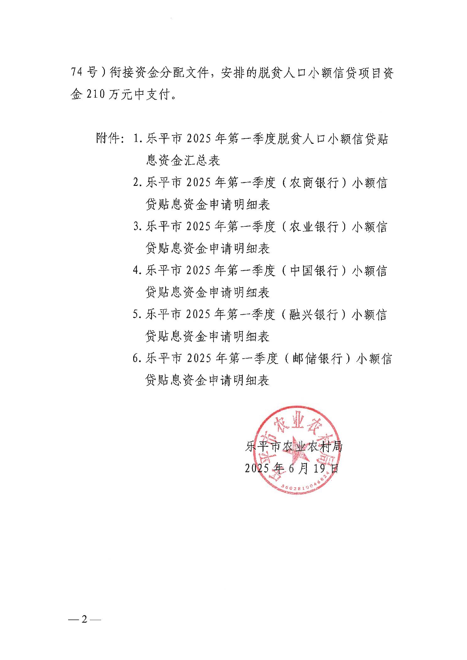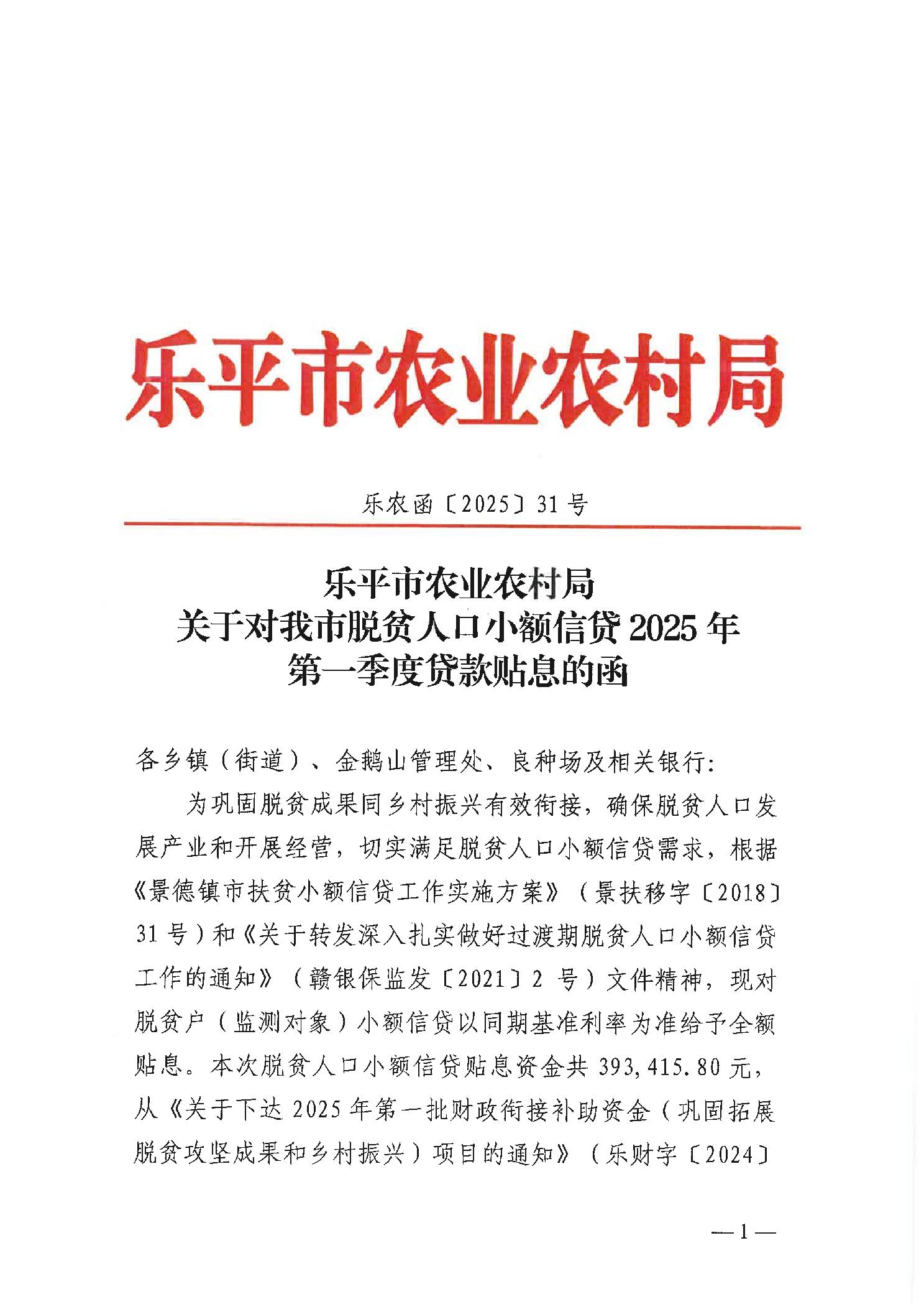 关于对我市脱贫人口小额信贷2025年第一季度贷款贴息的函