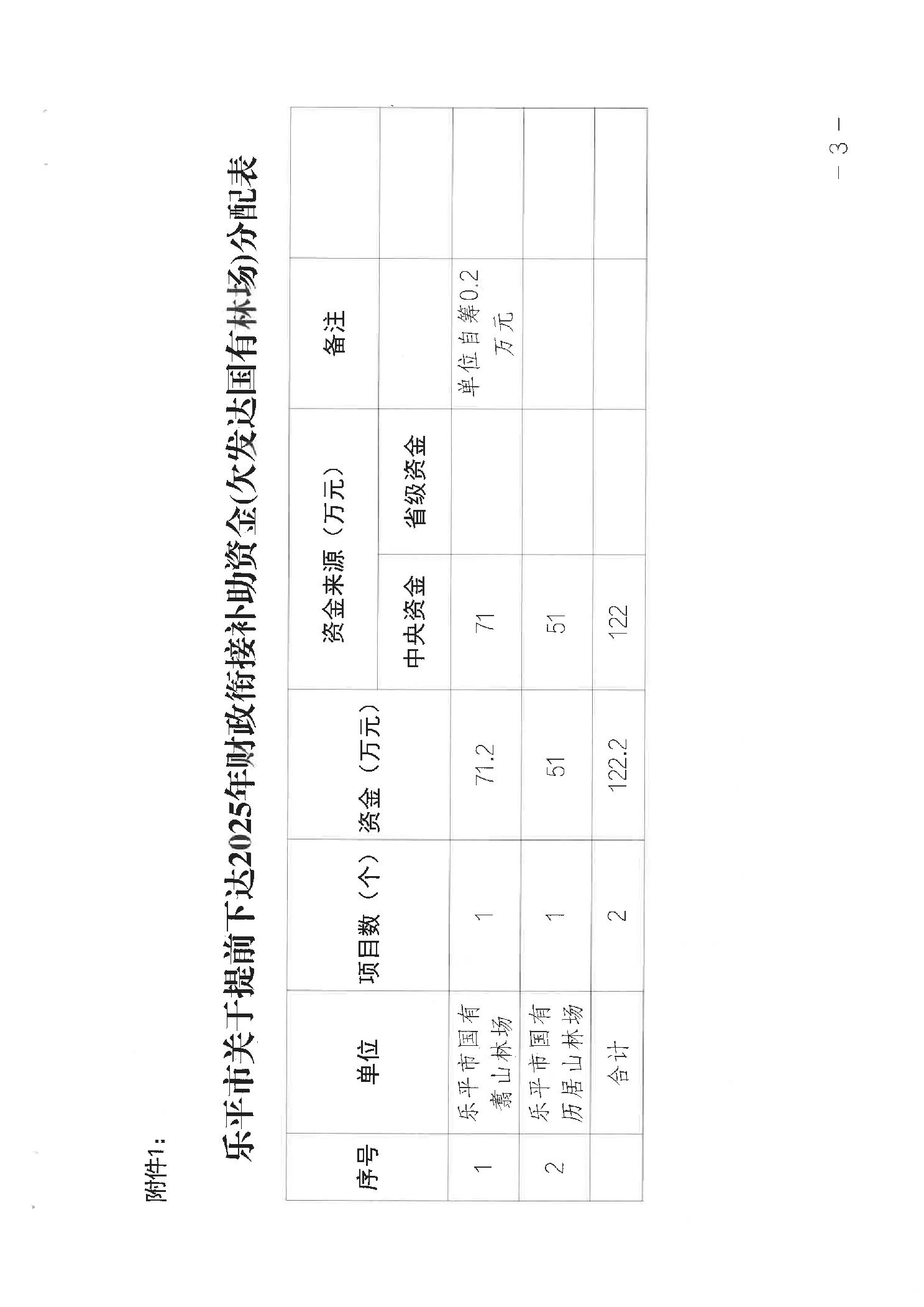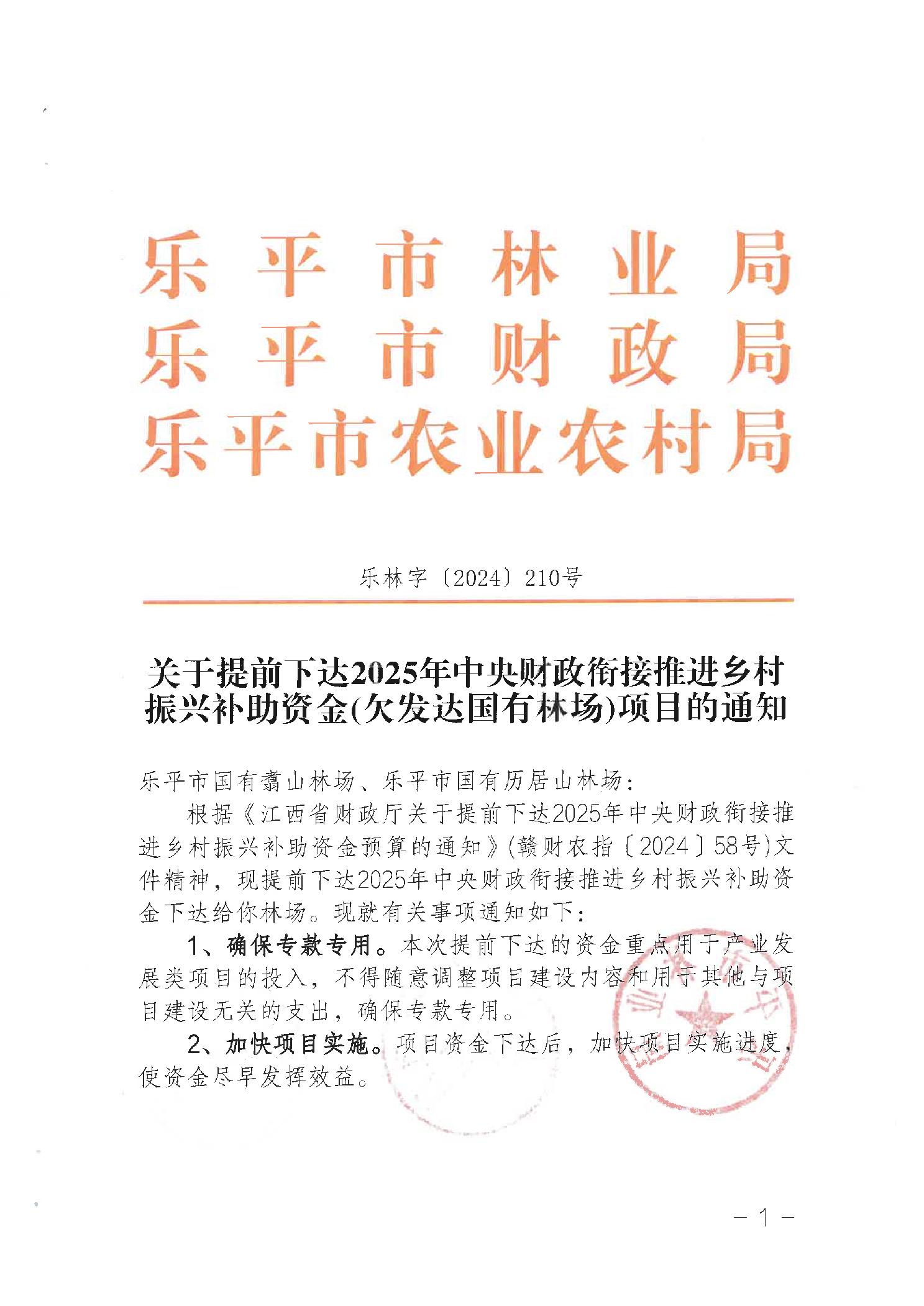 关于提前下达2025年中央财政衔接推进乡村振兴补助资金(欠发达国有林场)项目的通知