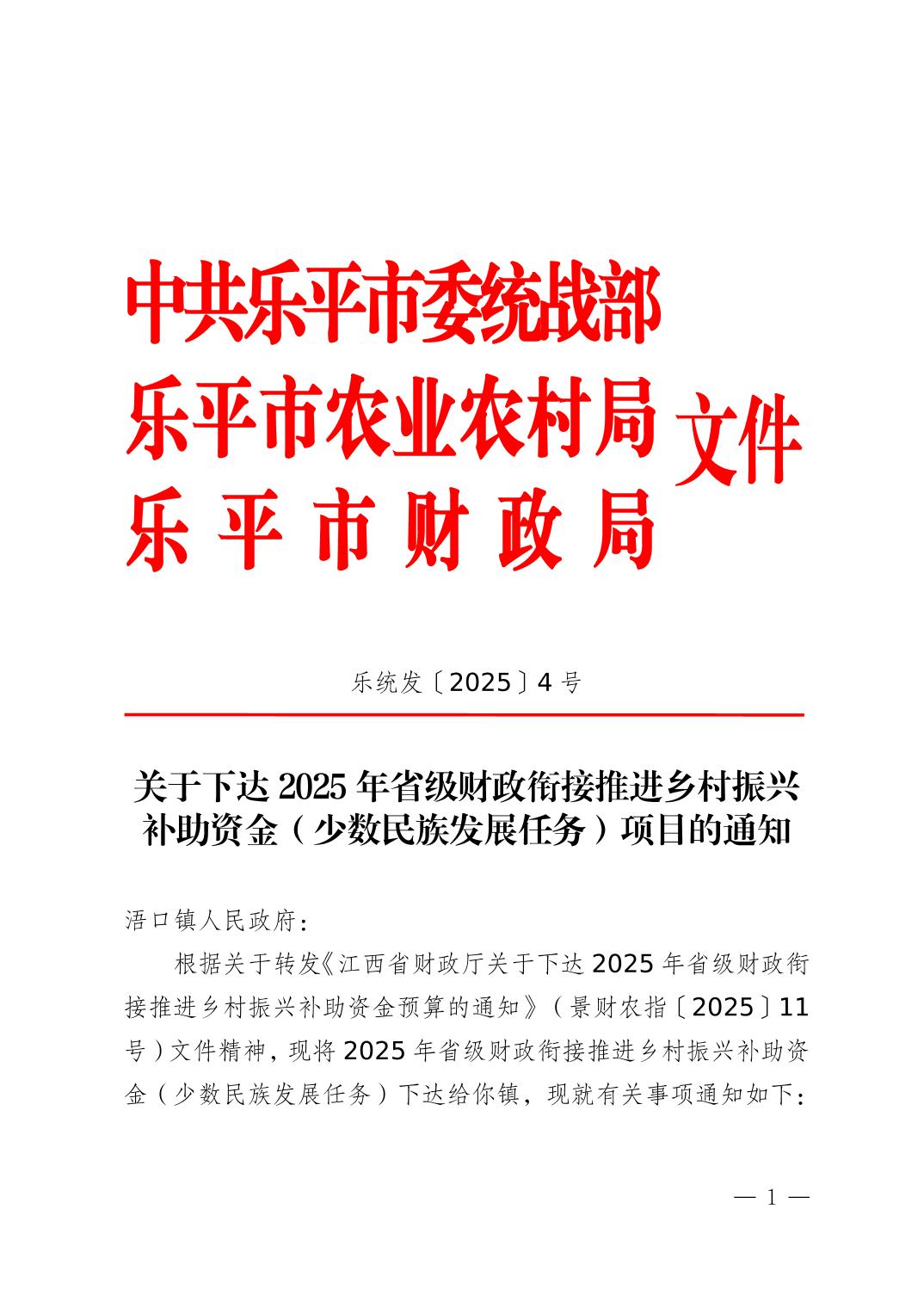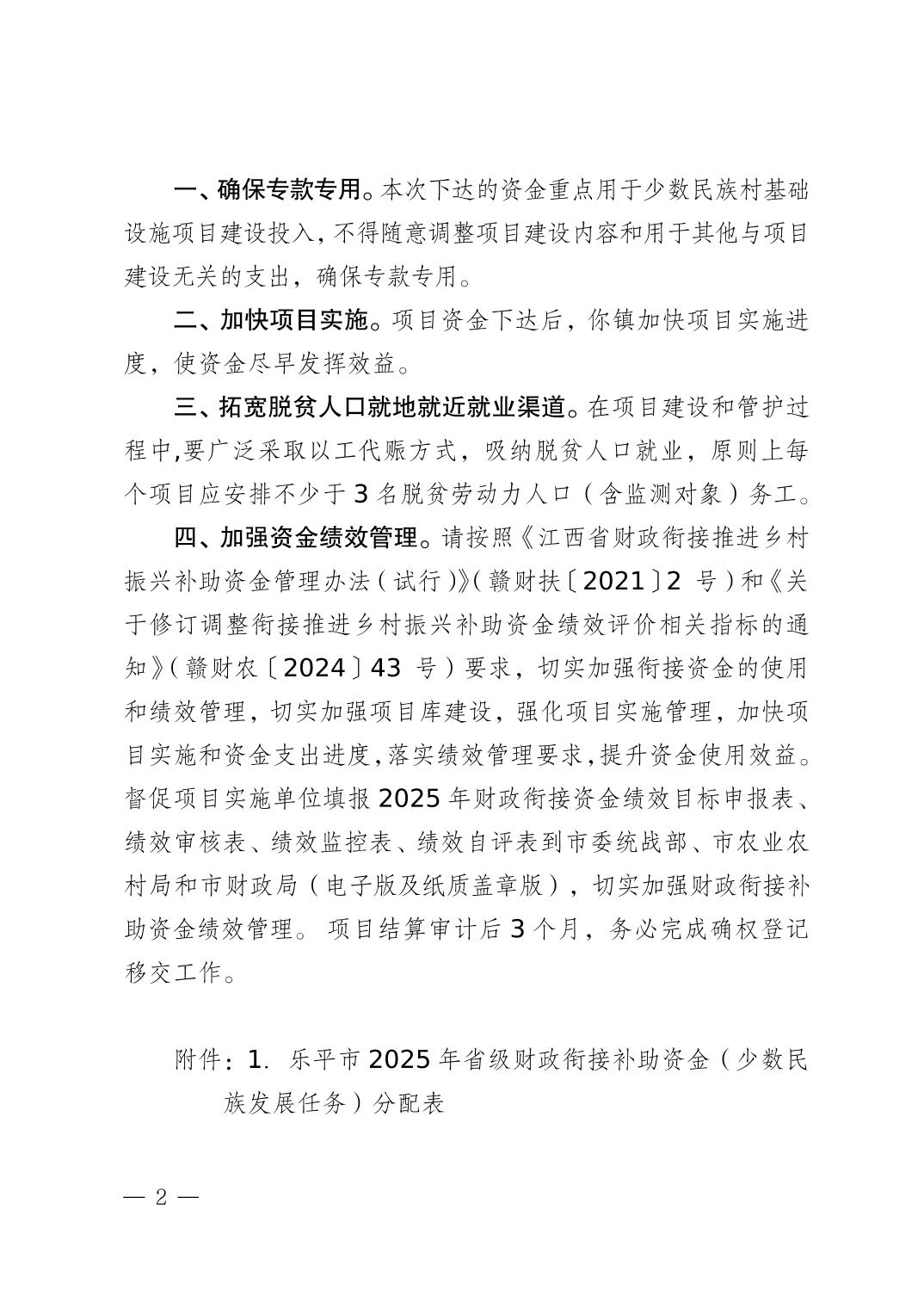 关于下达2025年省级财政衔接推进乡村振兴补助资金(少数民族发展任务)项目的通知