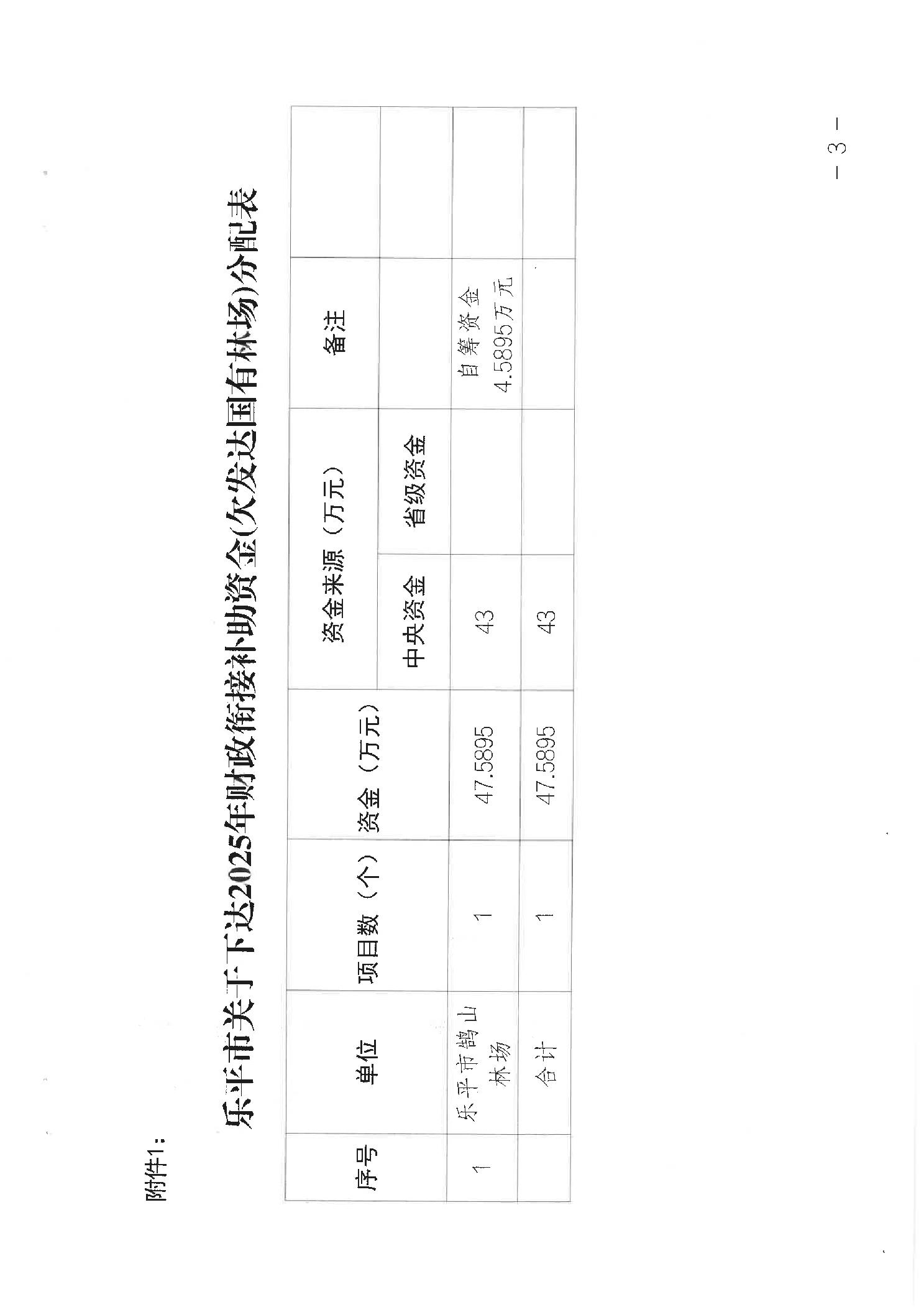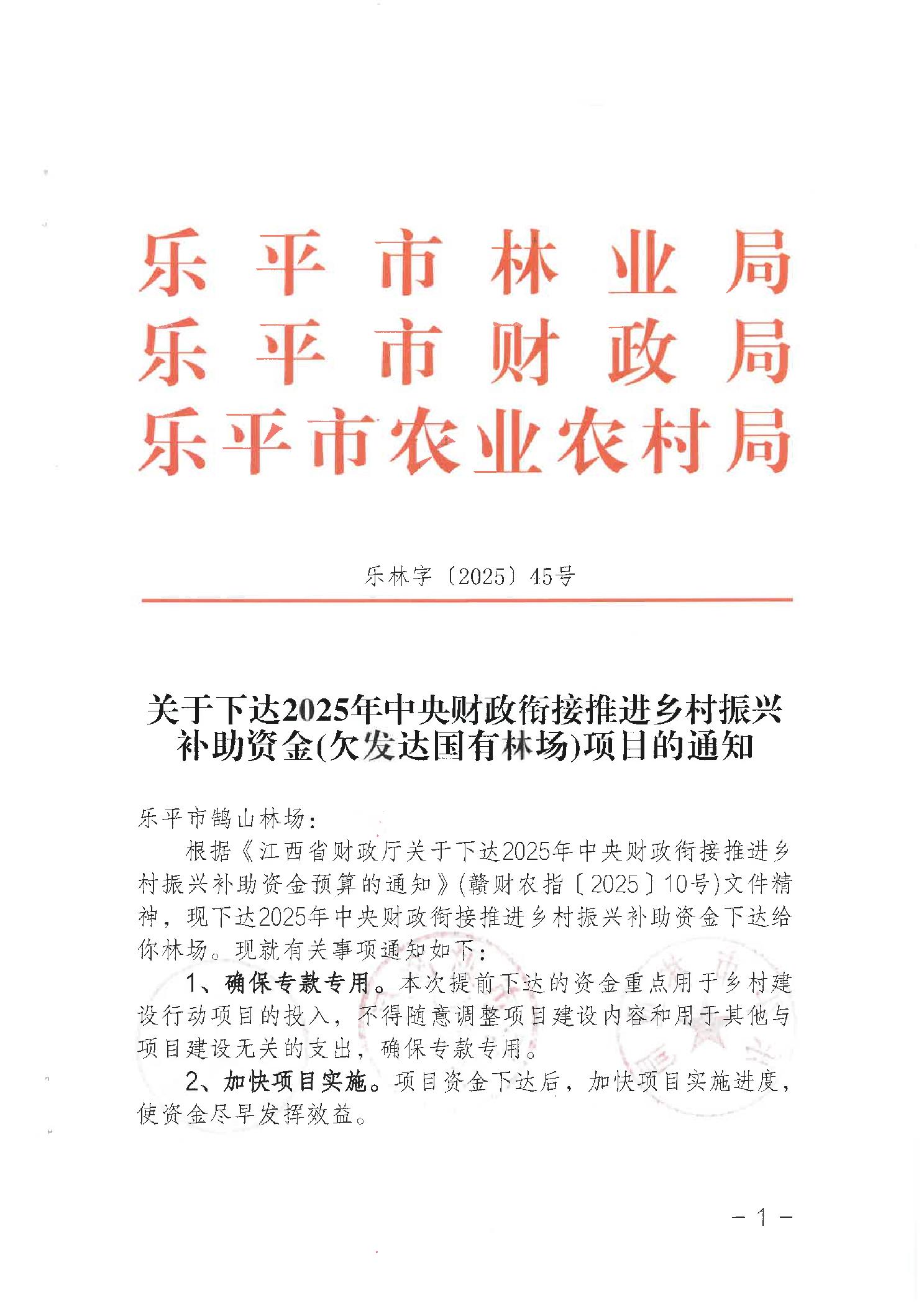 关于下达2025年中央财政衔接推进乡村振兴补助资金(欠发达国有林场)项目的通知