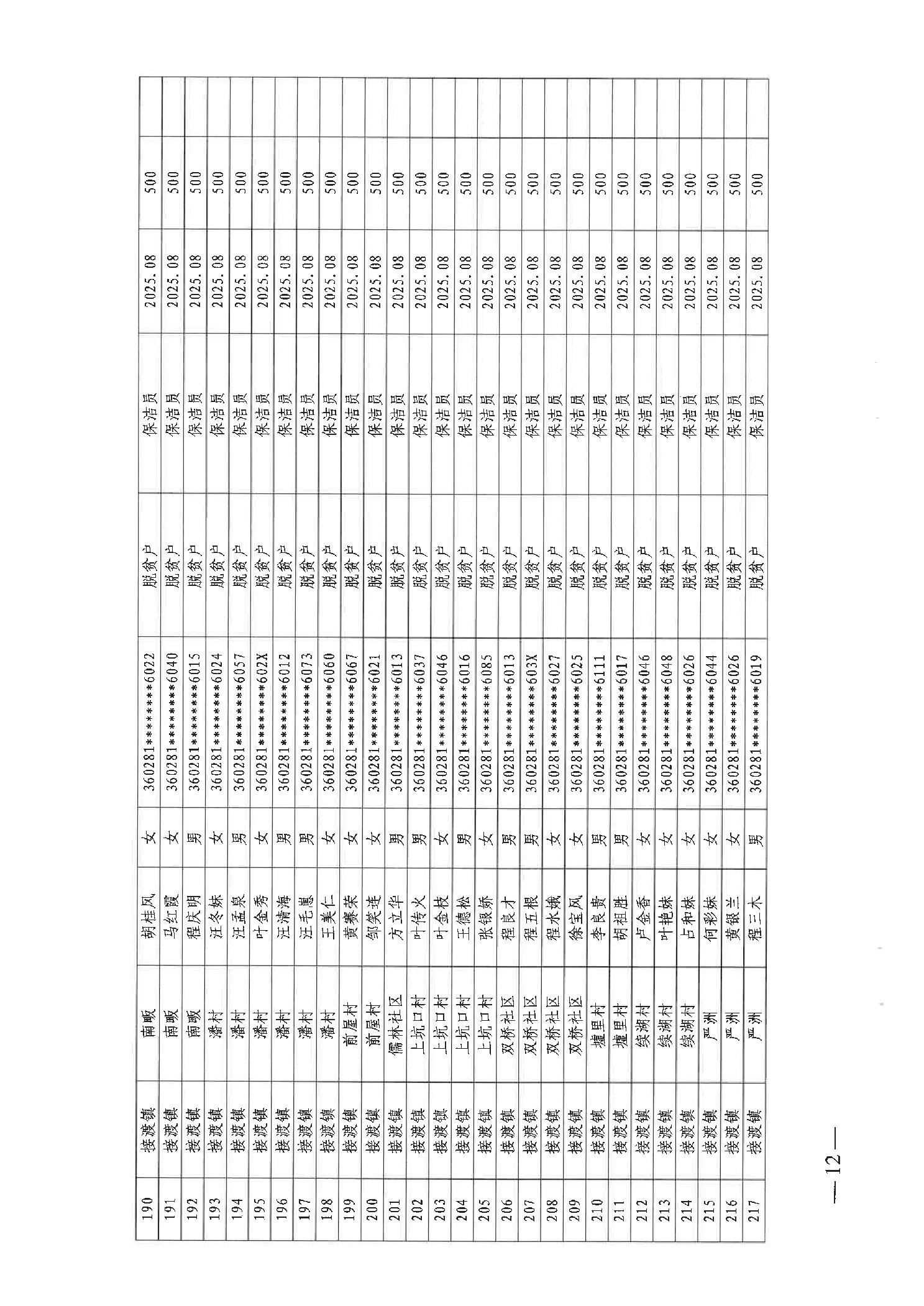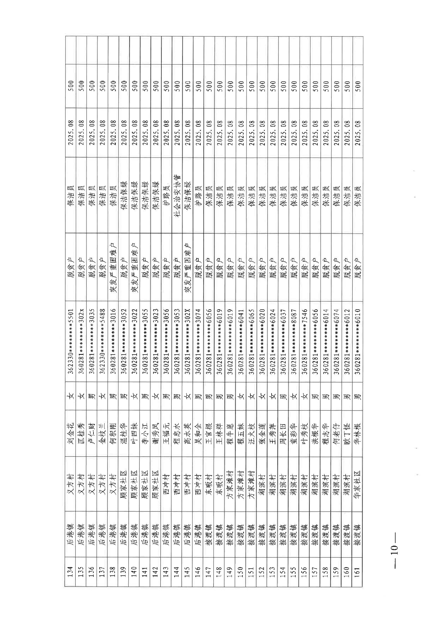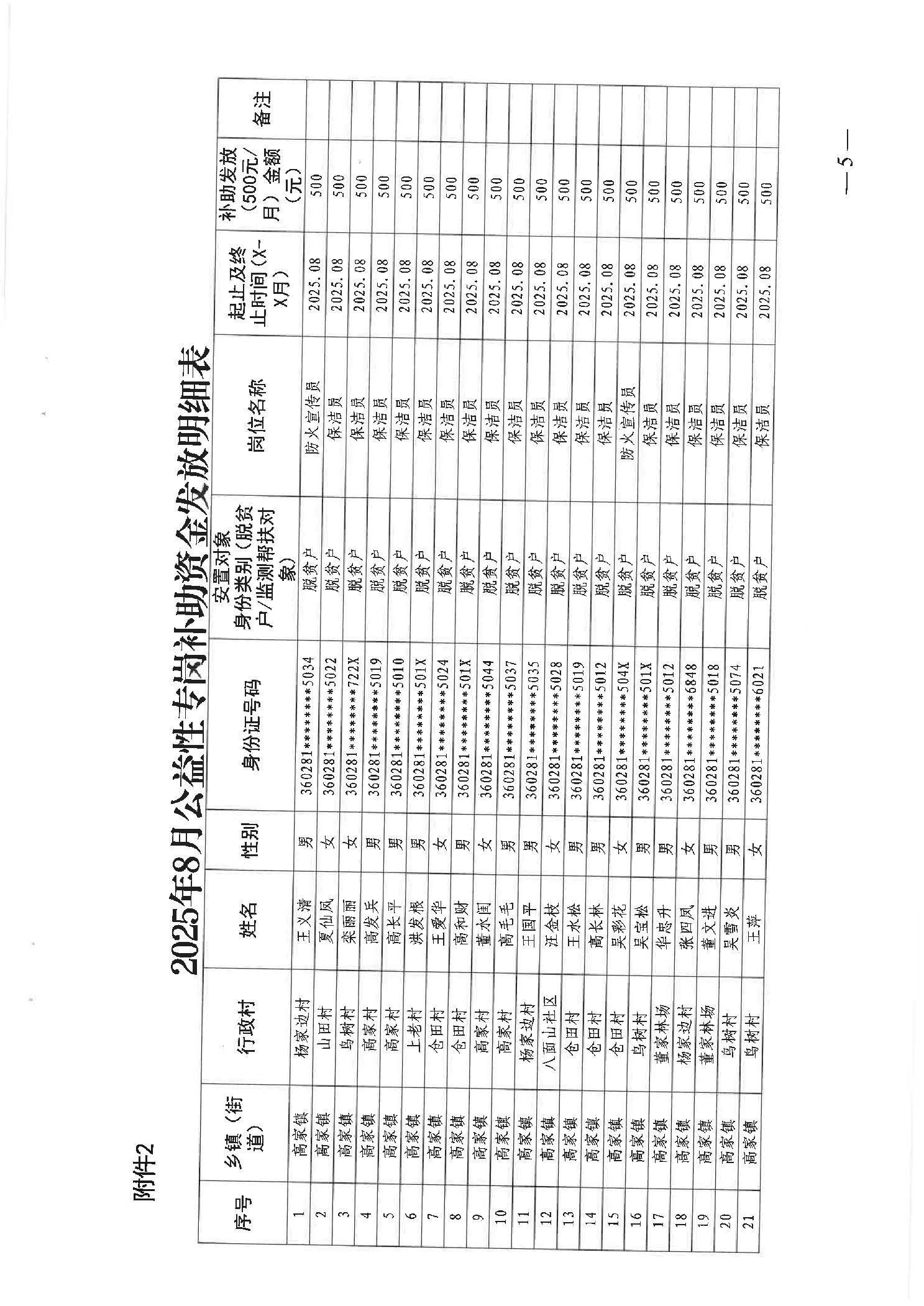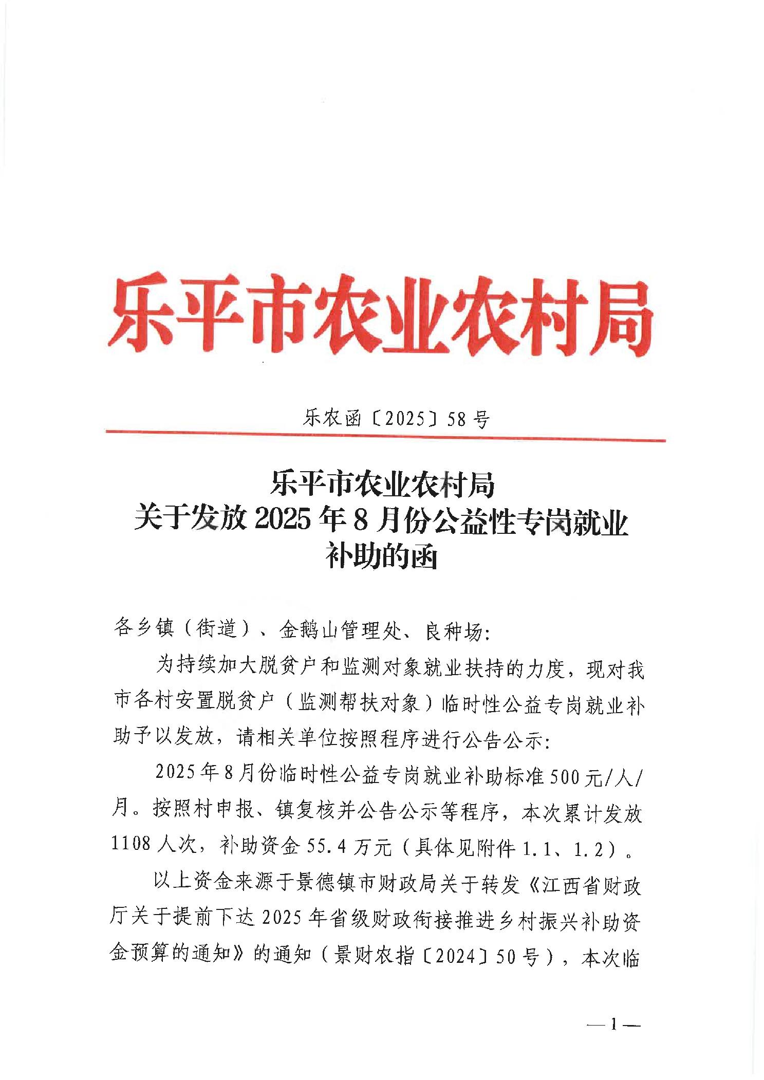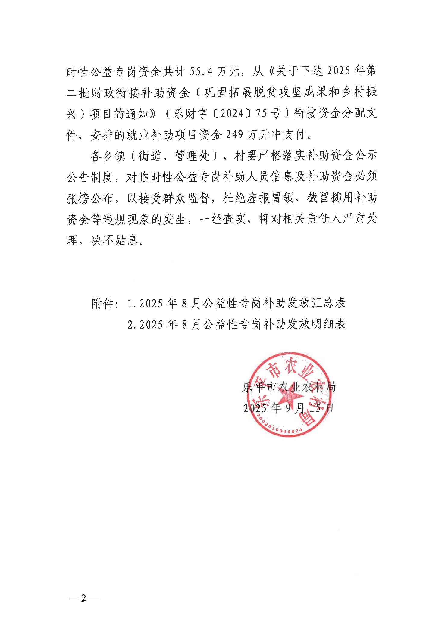 关于发放2025年8月份公益性专岗就业补助的函