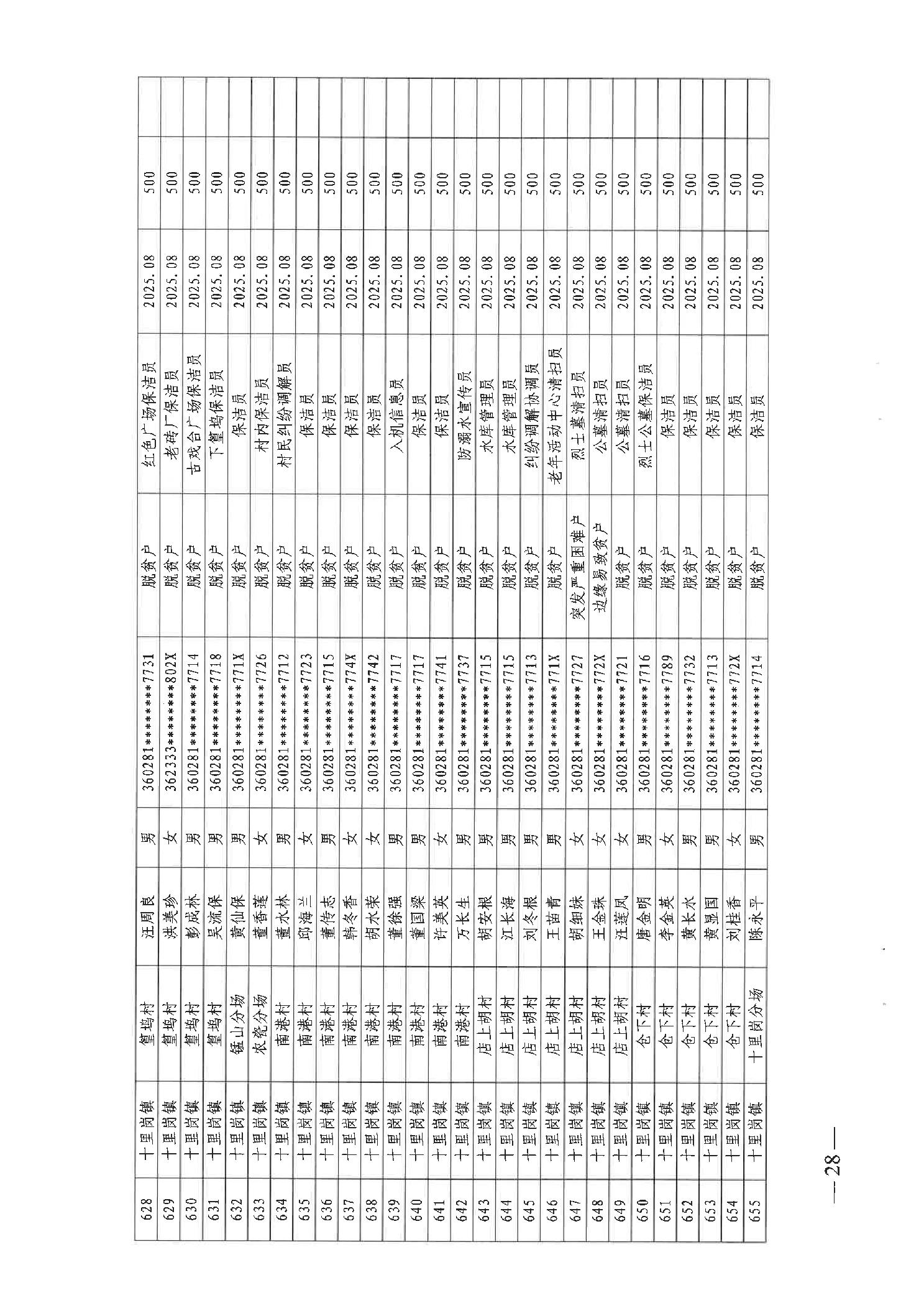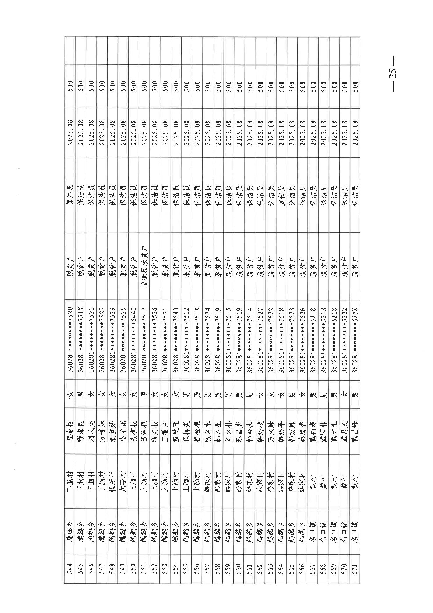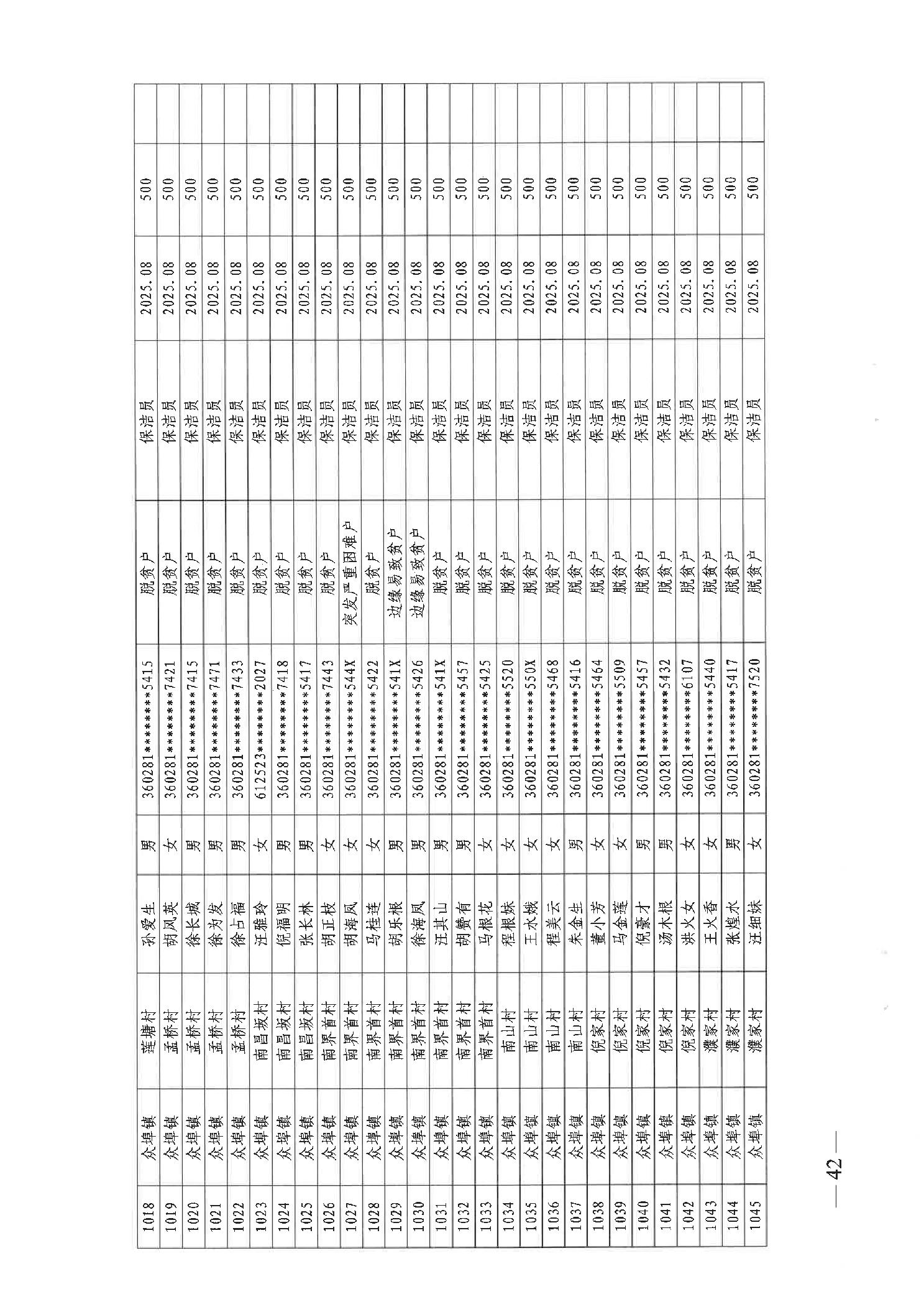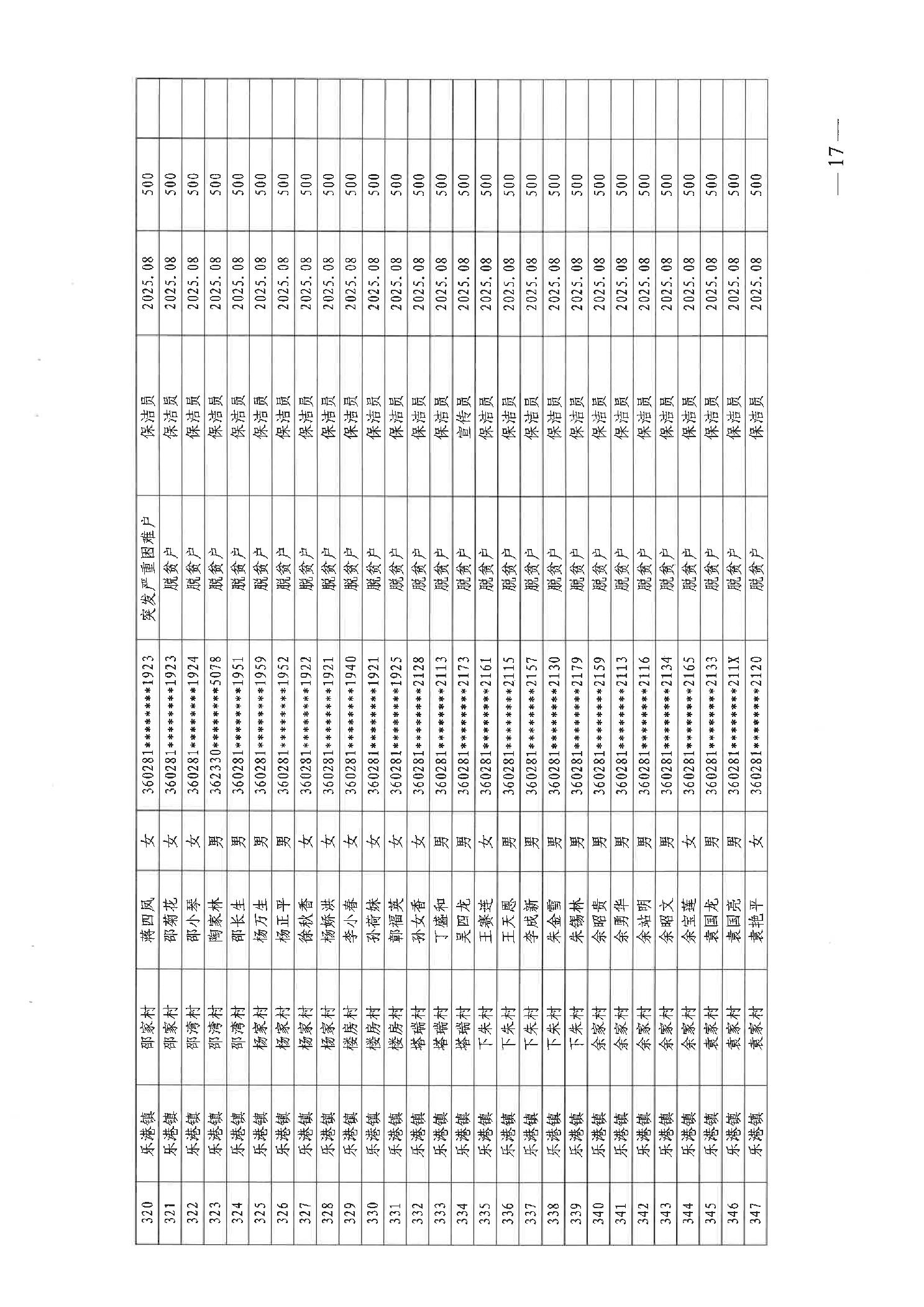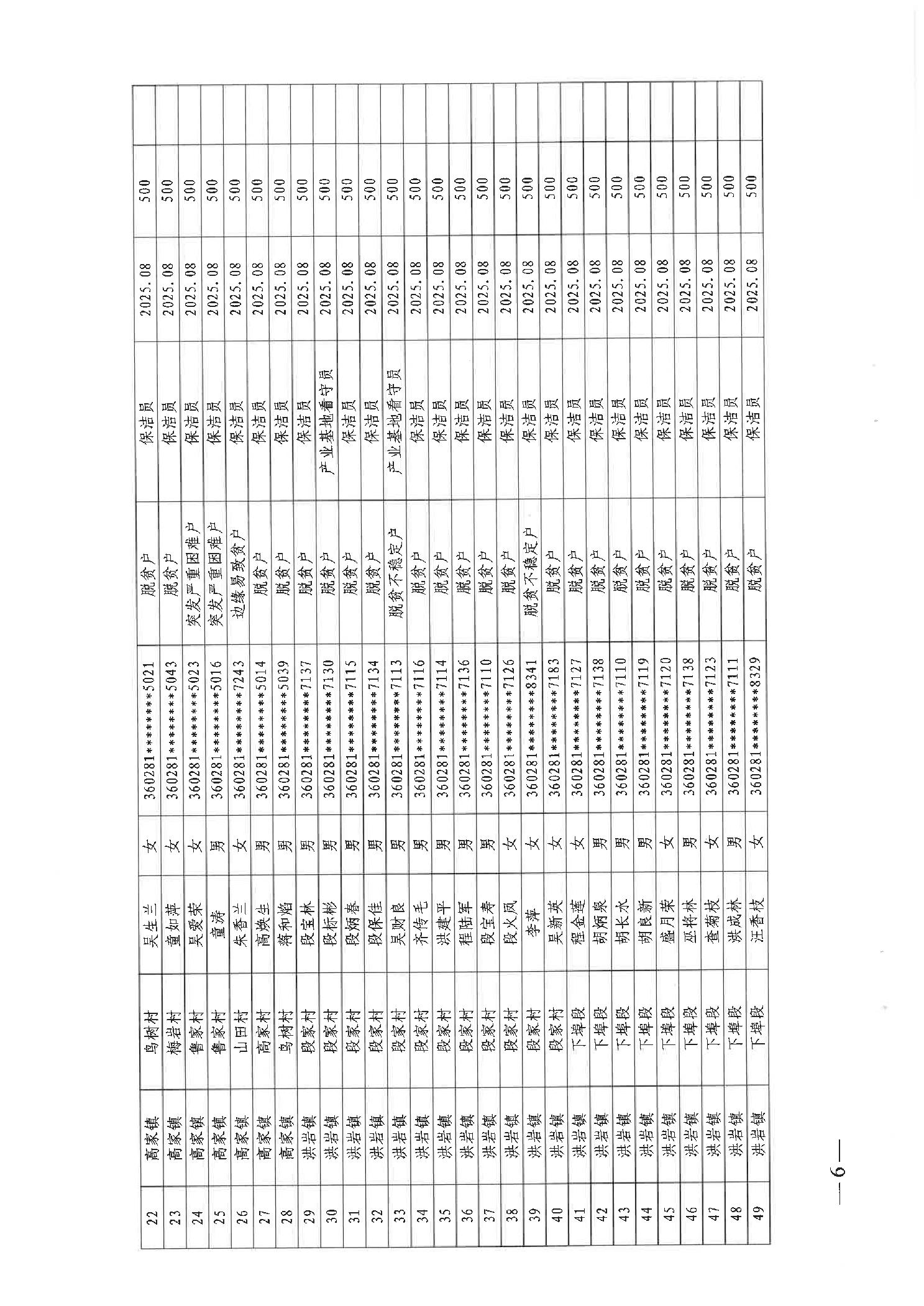 关于发放2025年8月份公益性专岗就业补助的函