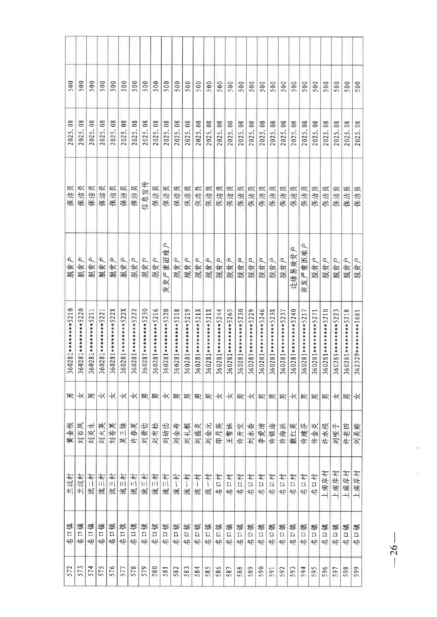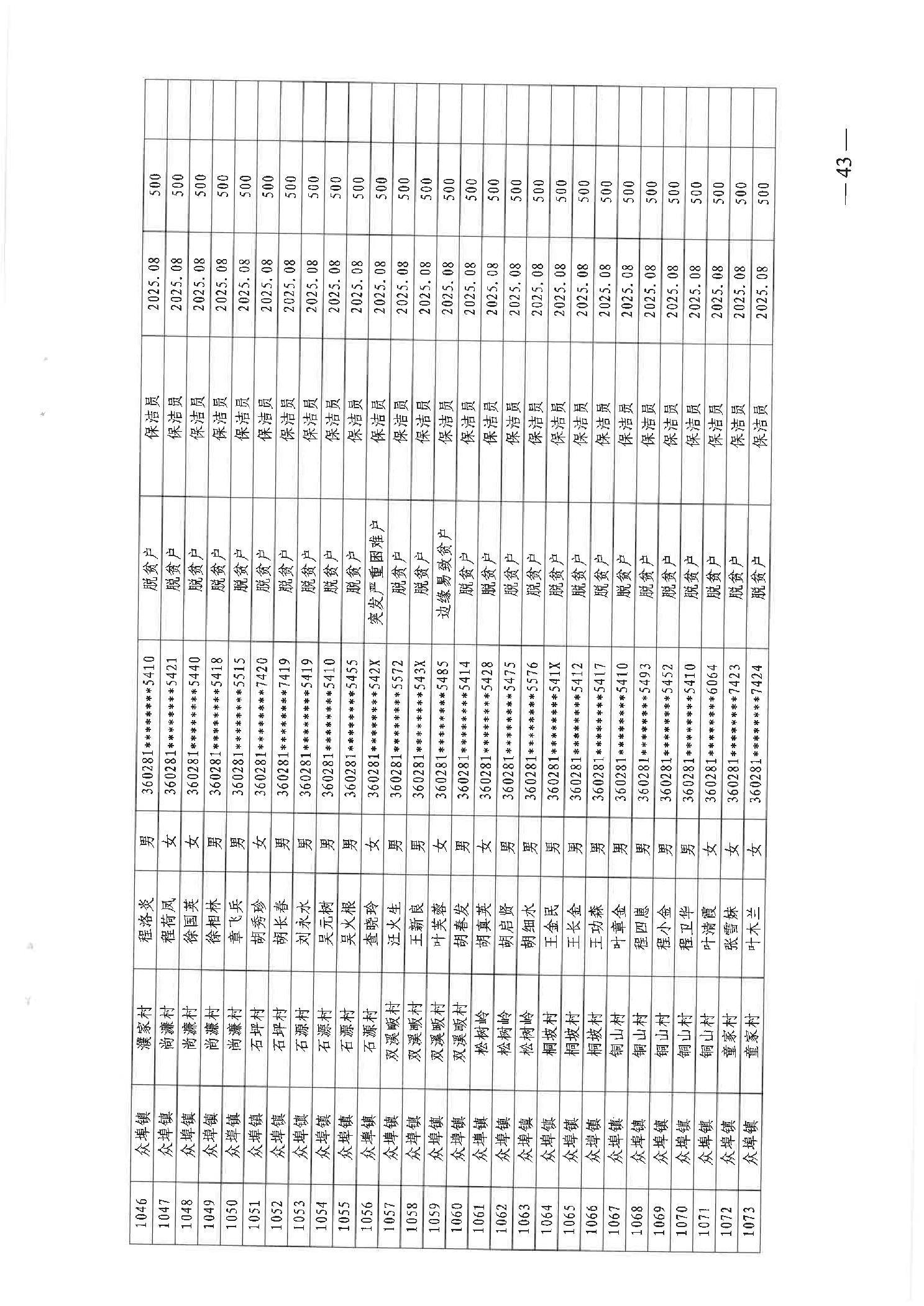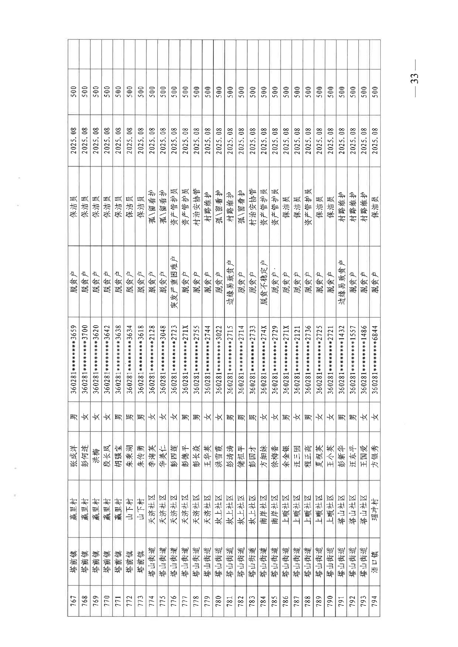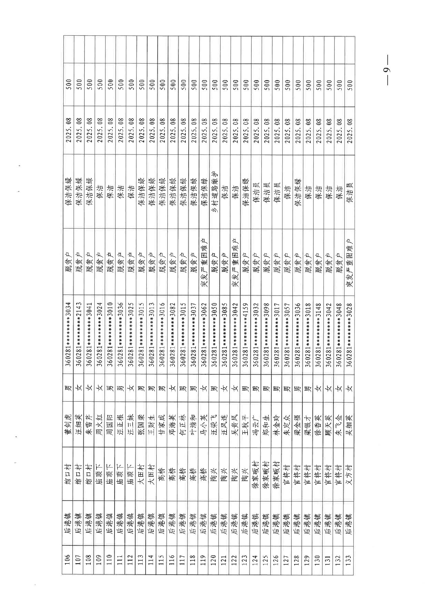 关于发放2025年8月份公益性专岗就业补助的函