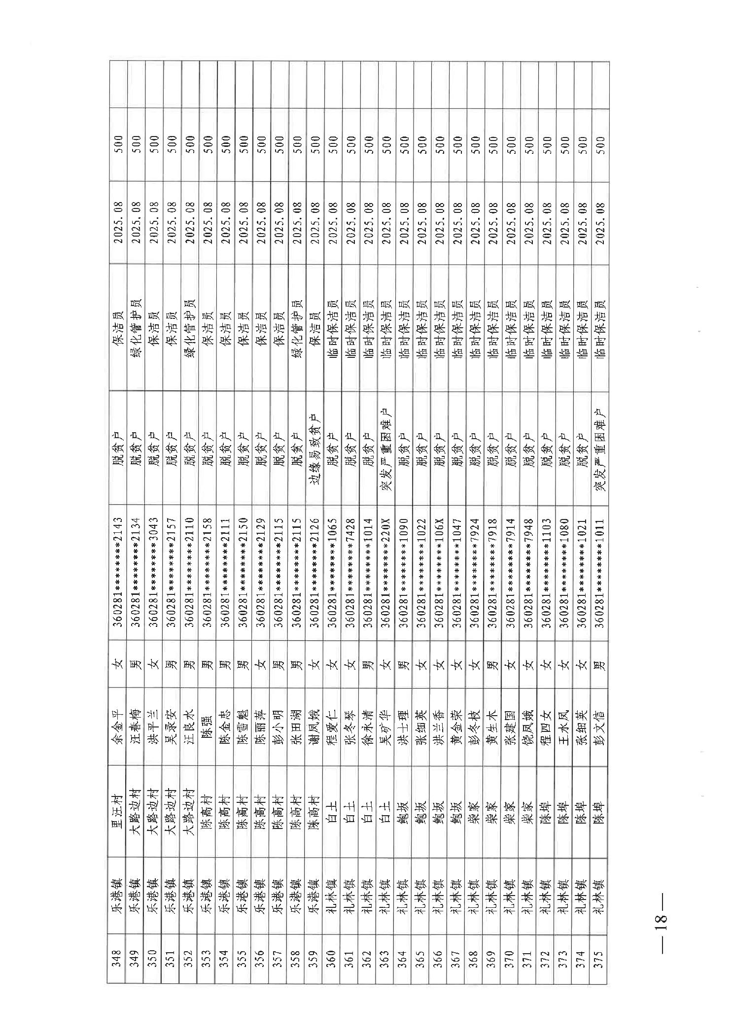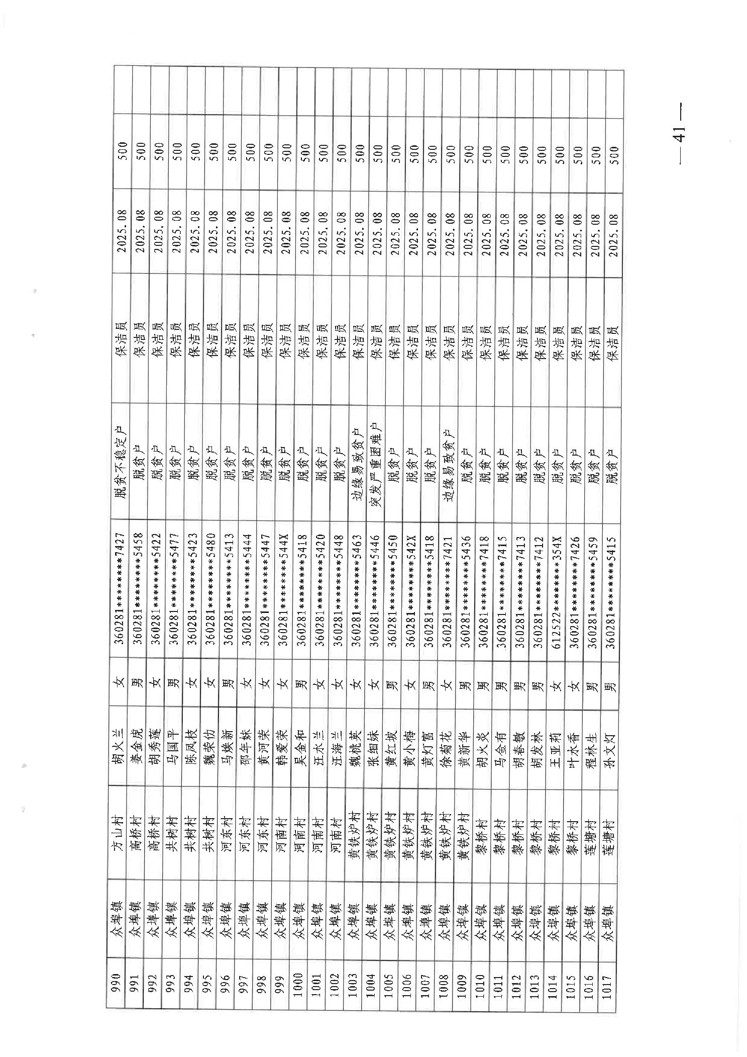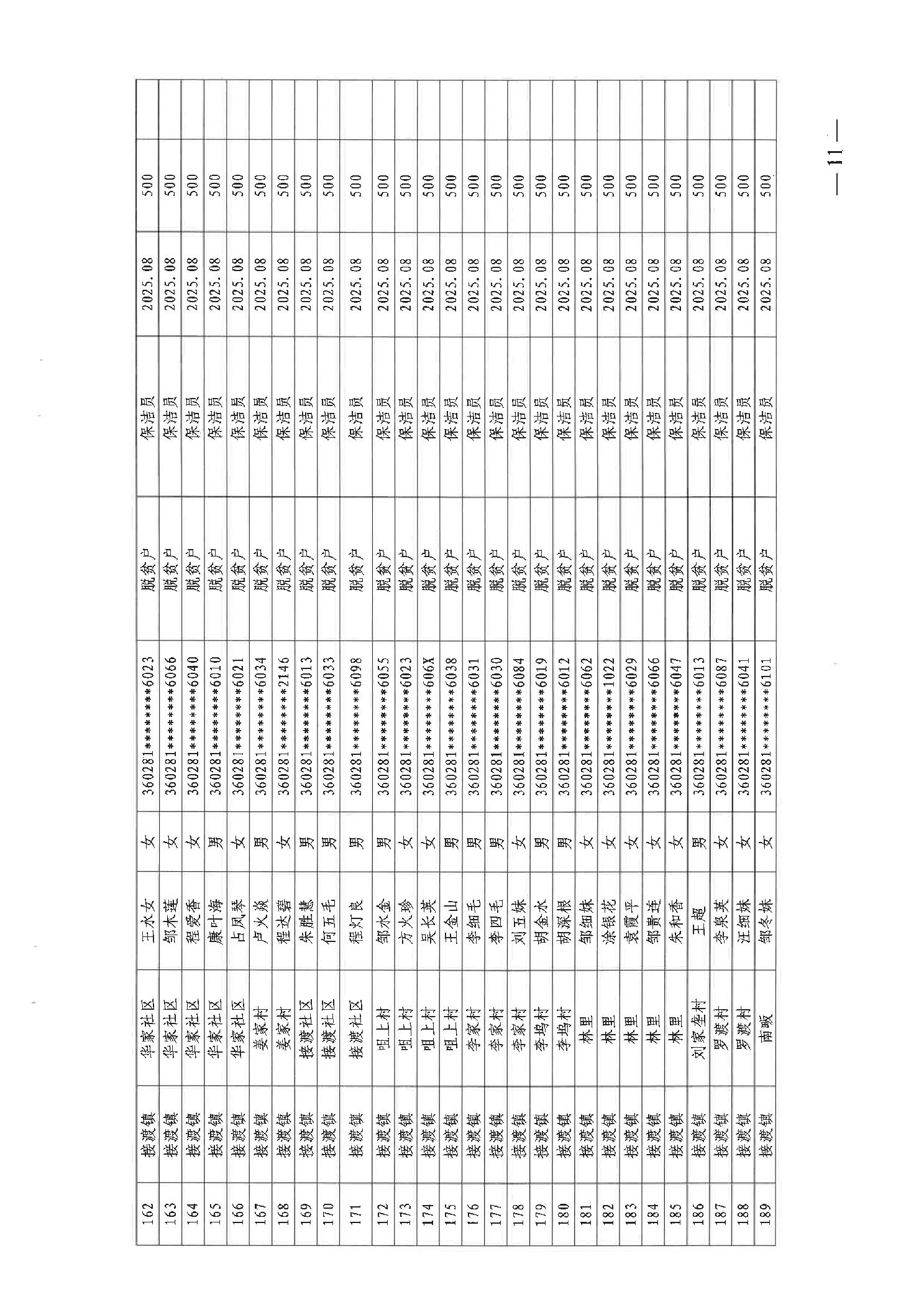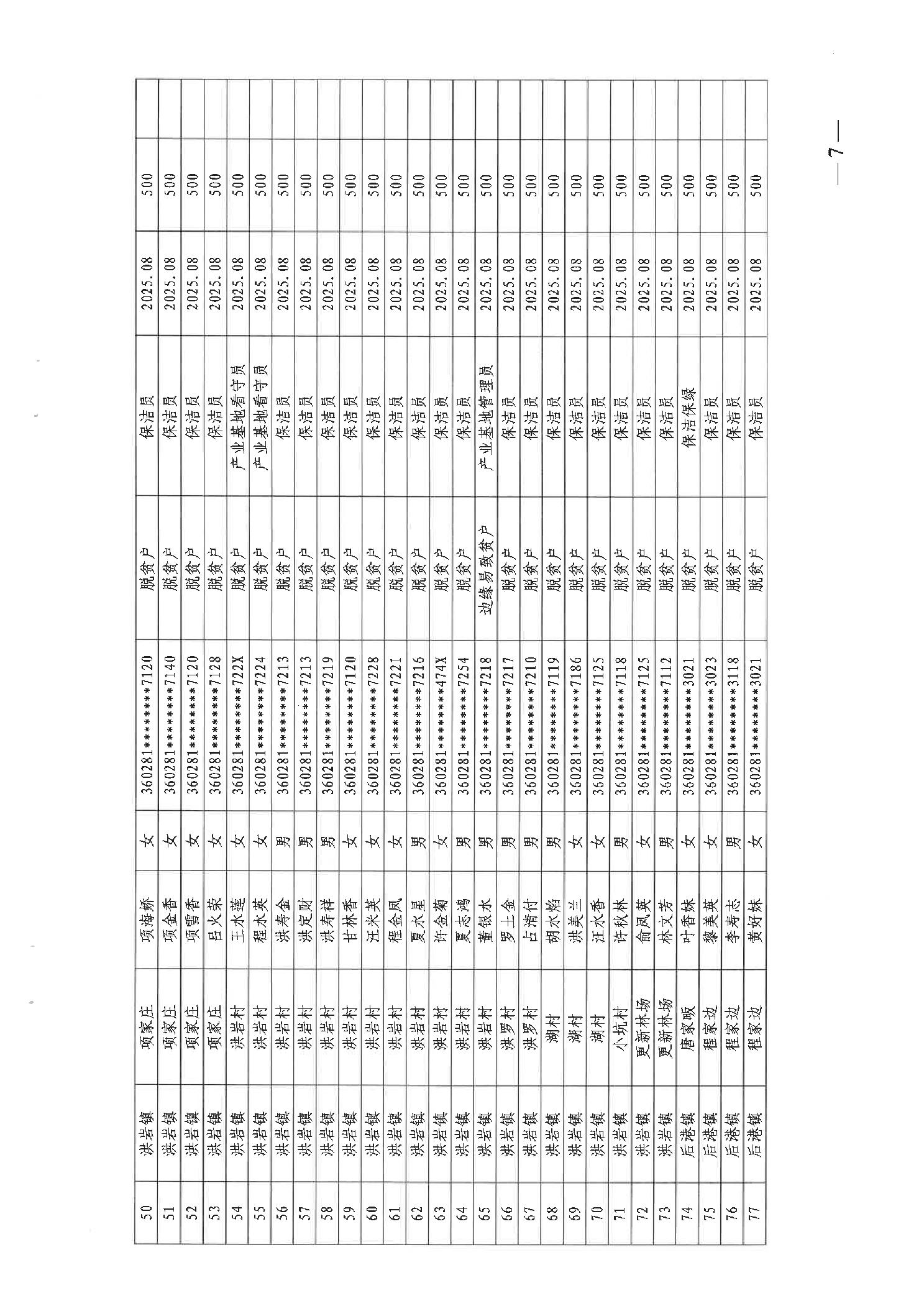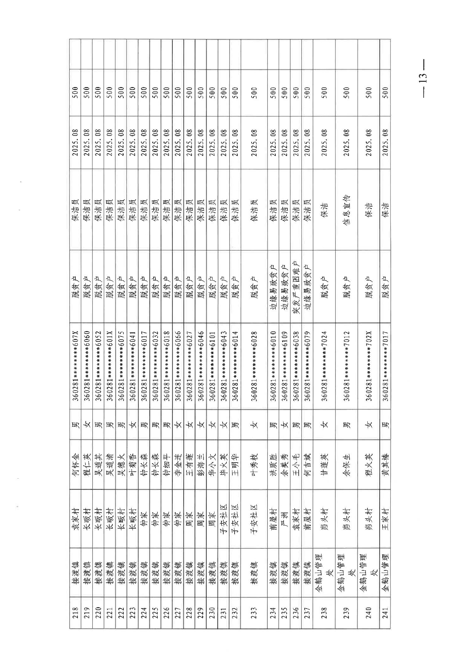关于发放2025年8月份公益性专岗就业补助的函
