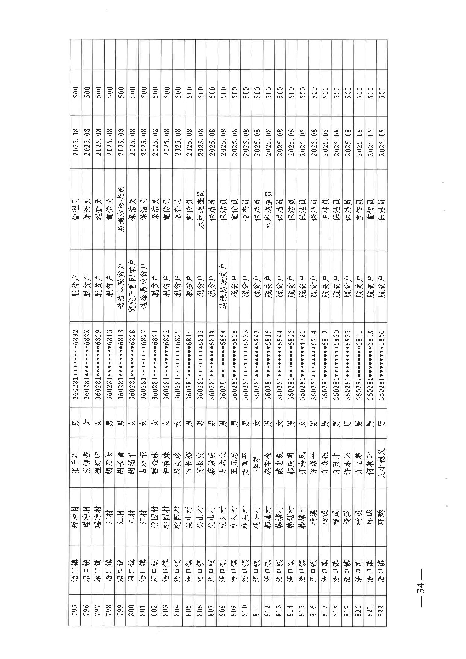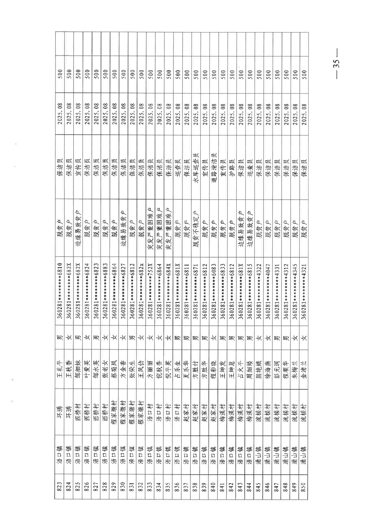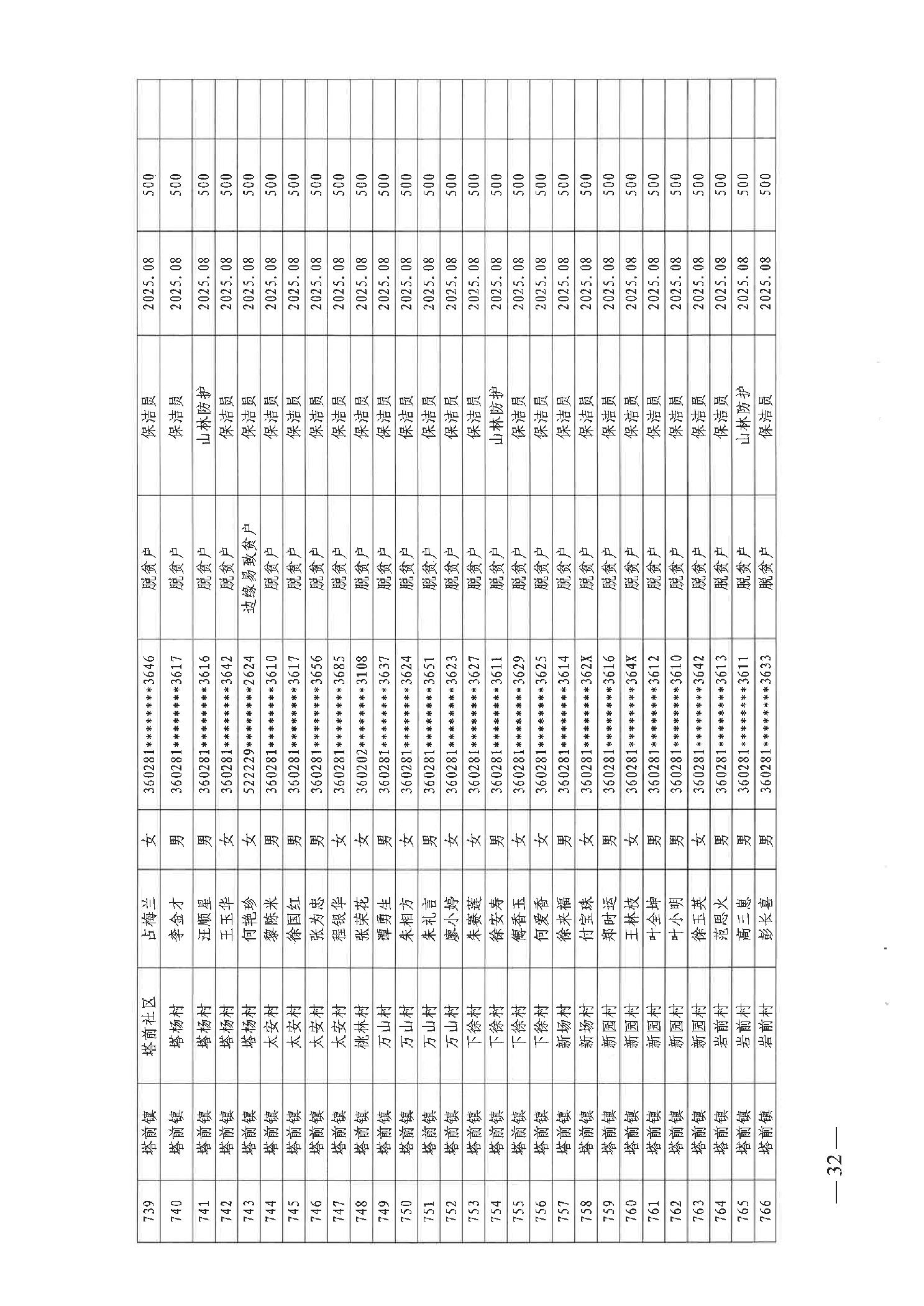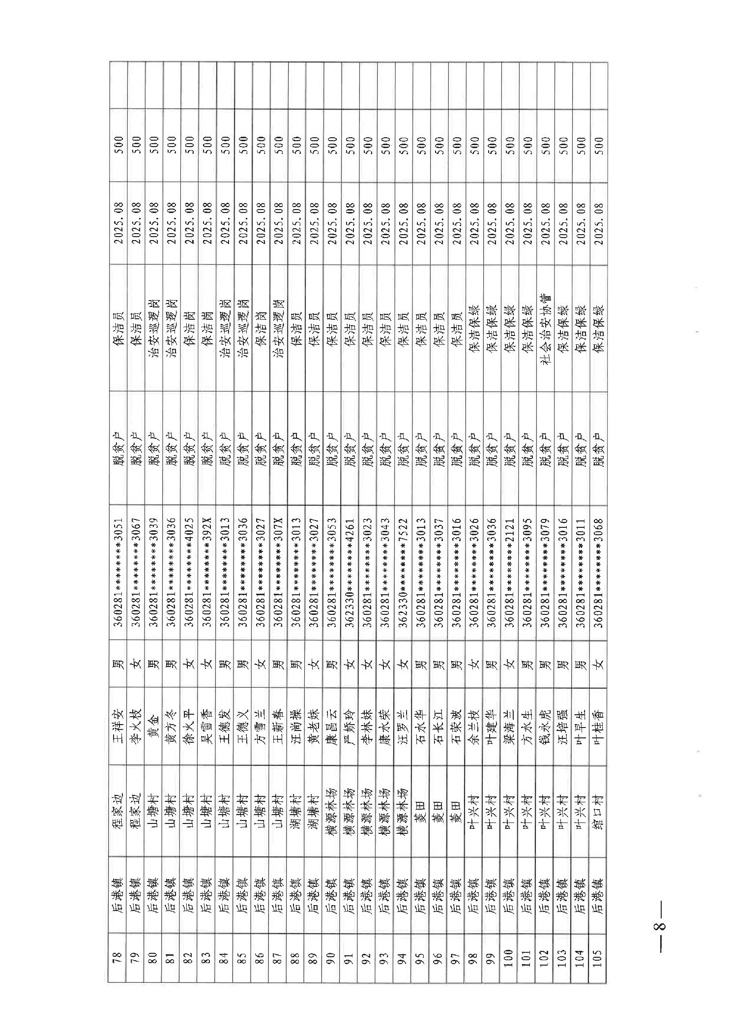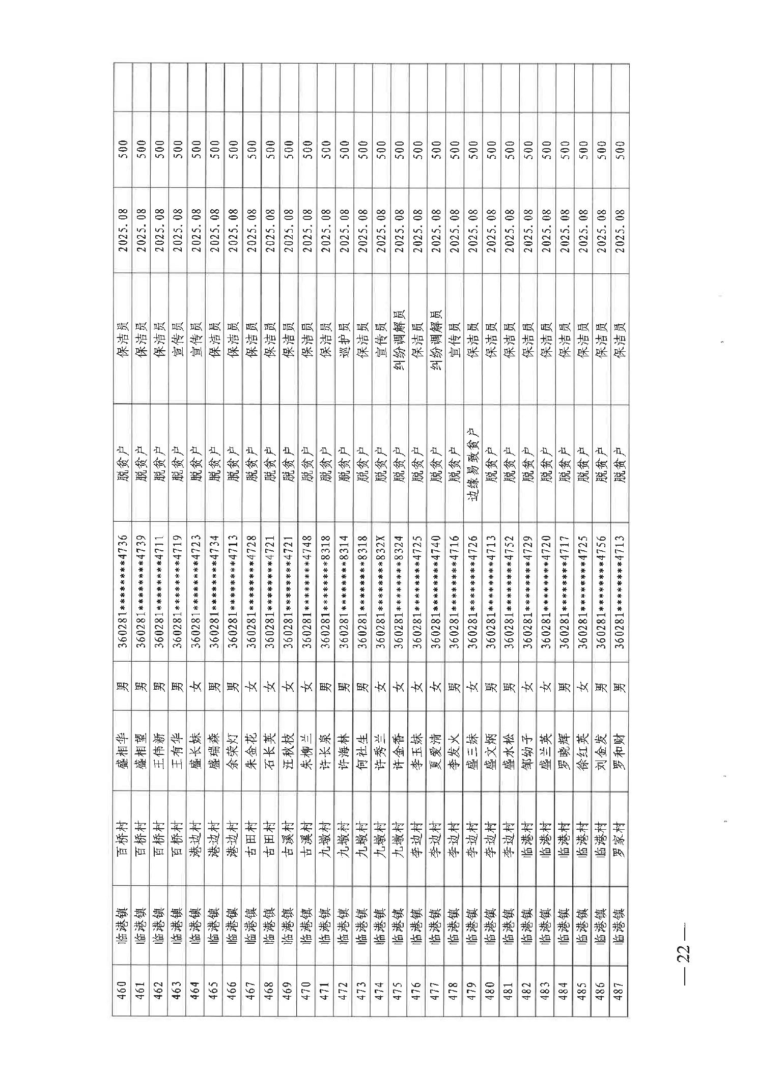 关于发放2025年8月份公益性专岗就业补助的函