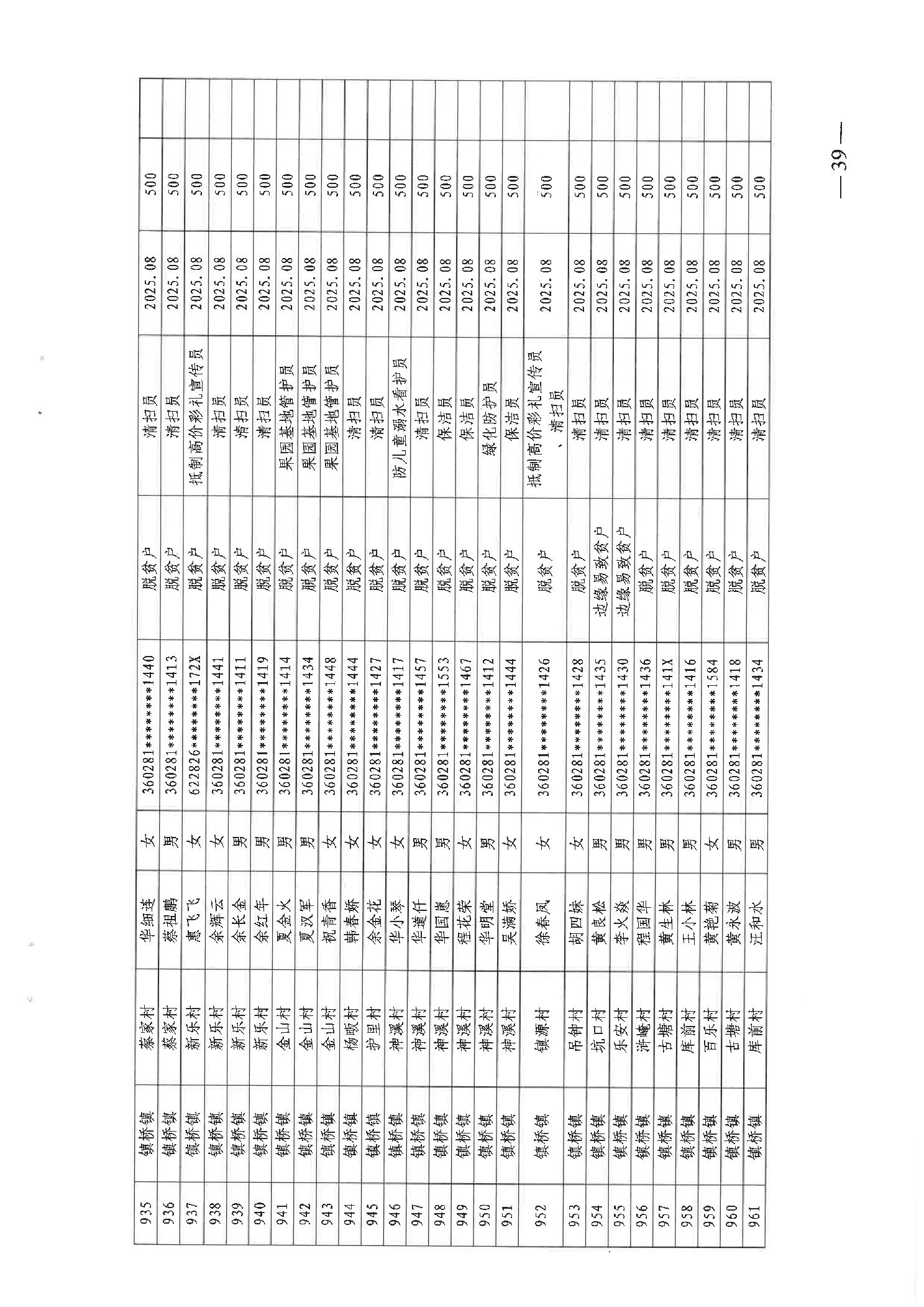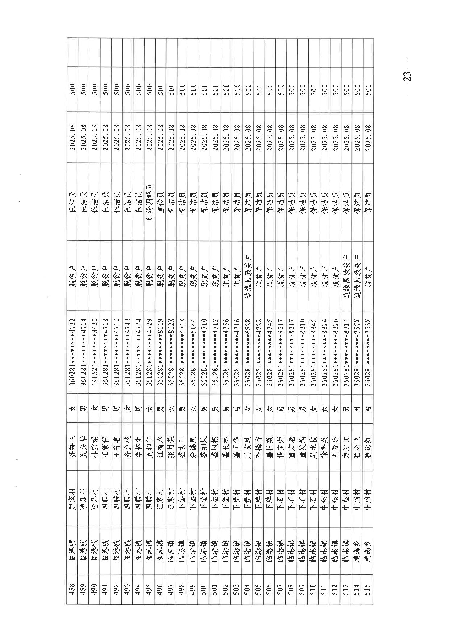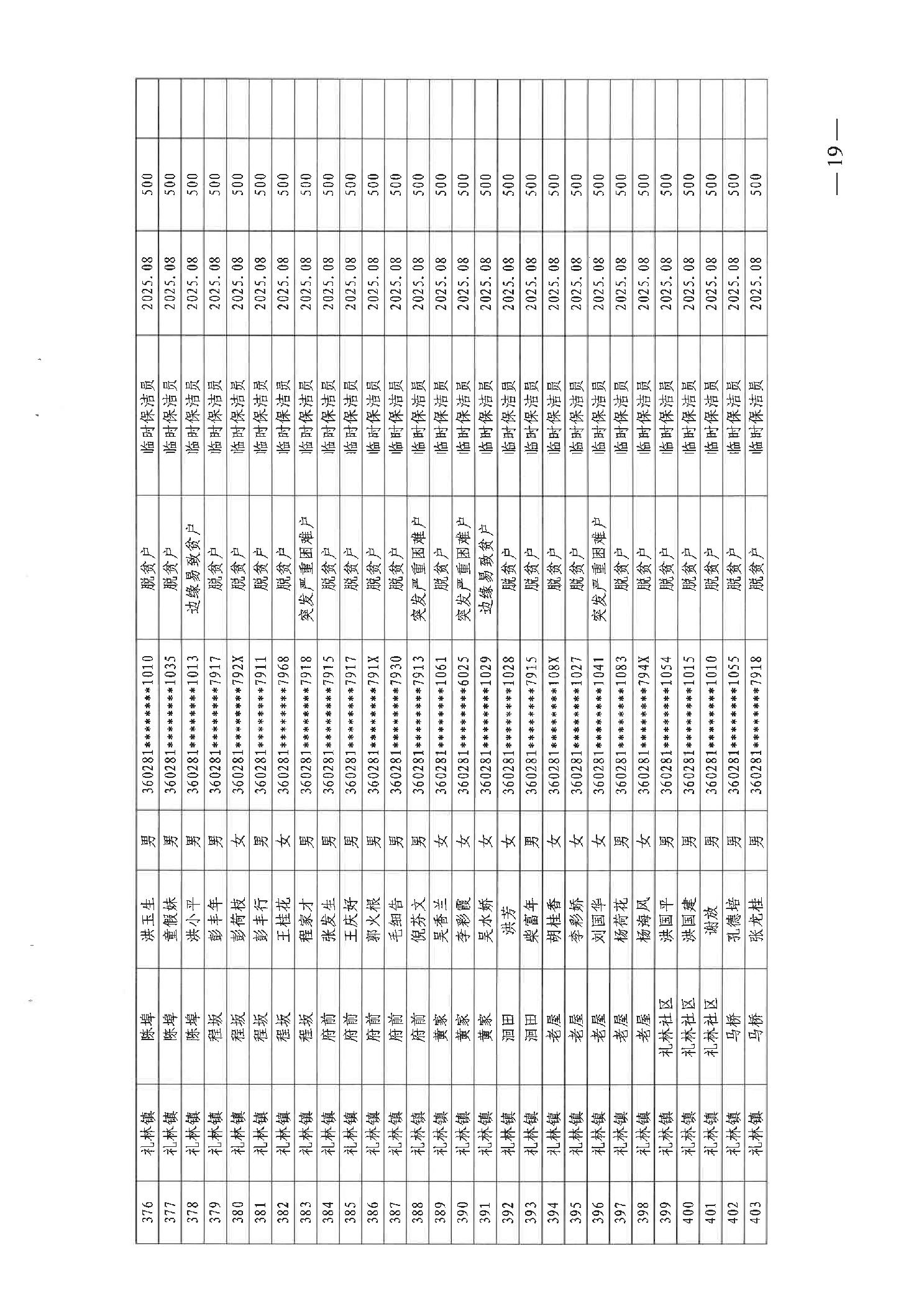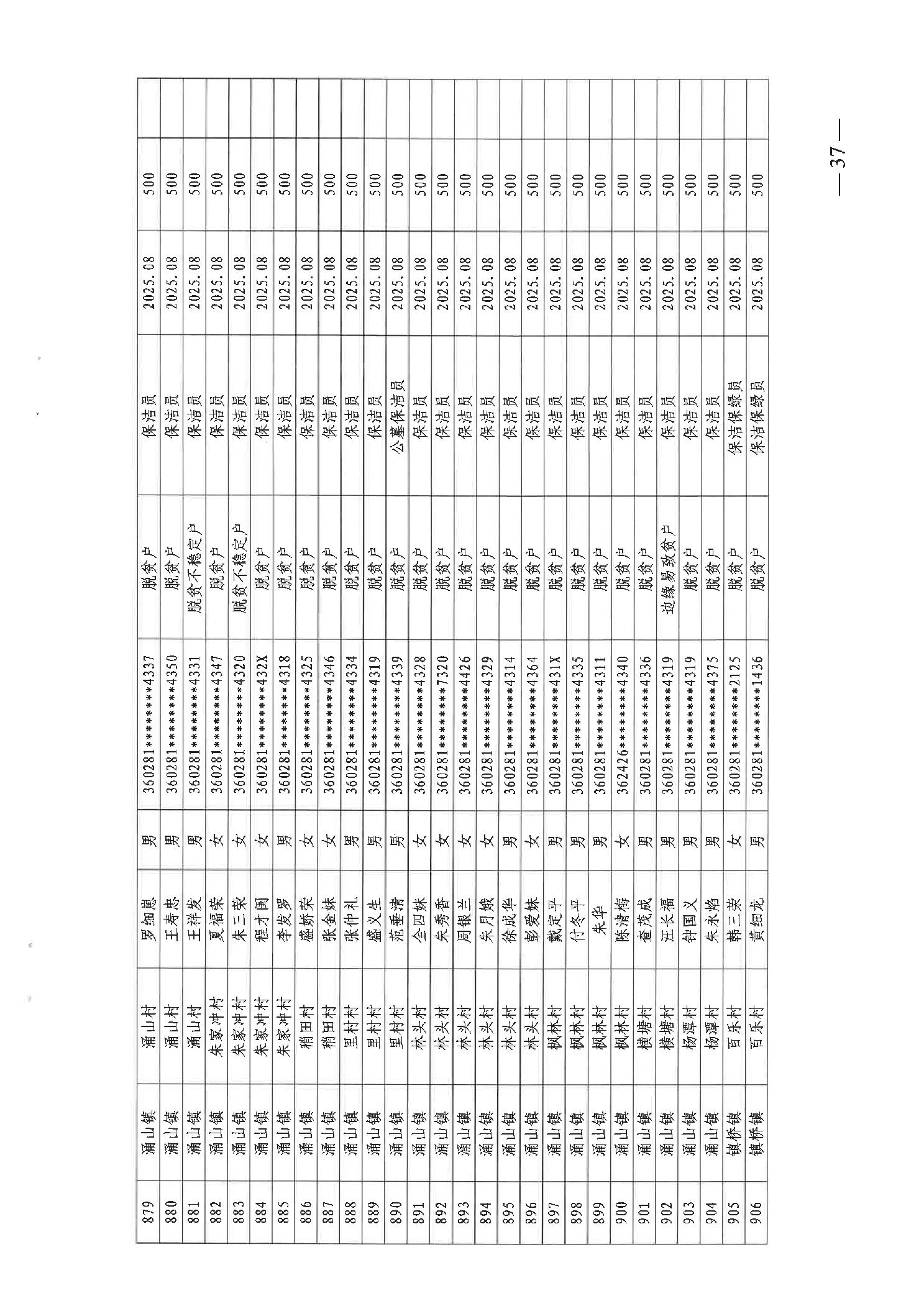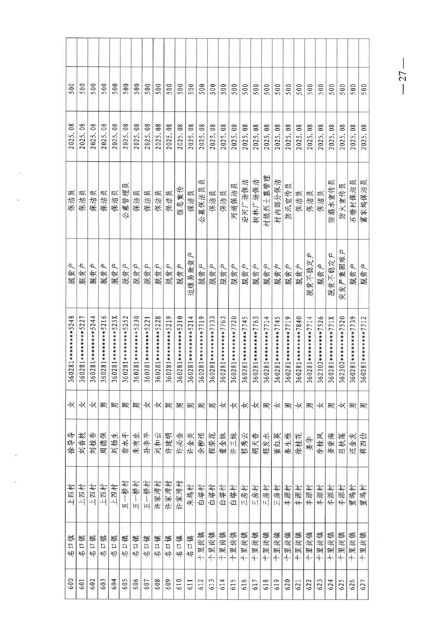 关于发放2025年8月份公益性专岗就业补助的函