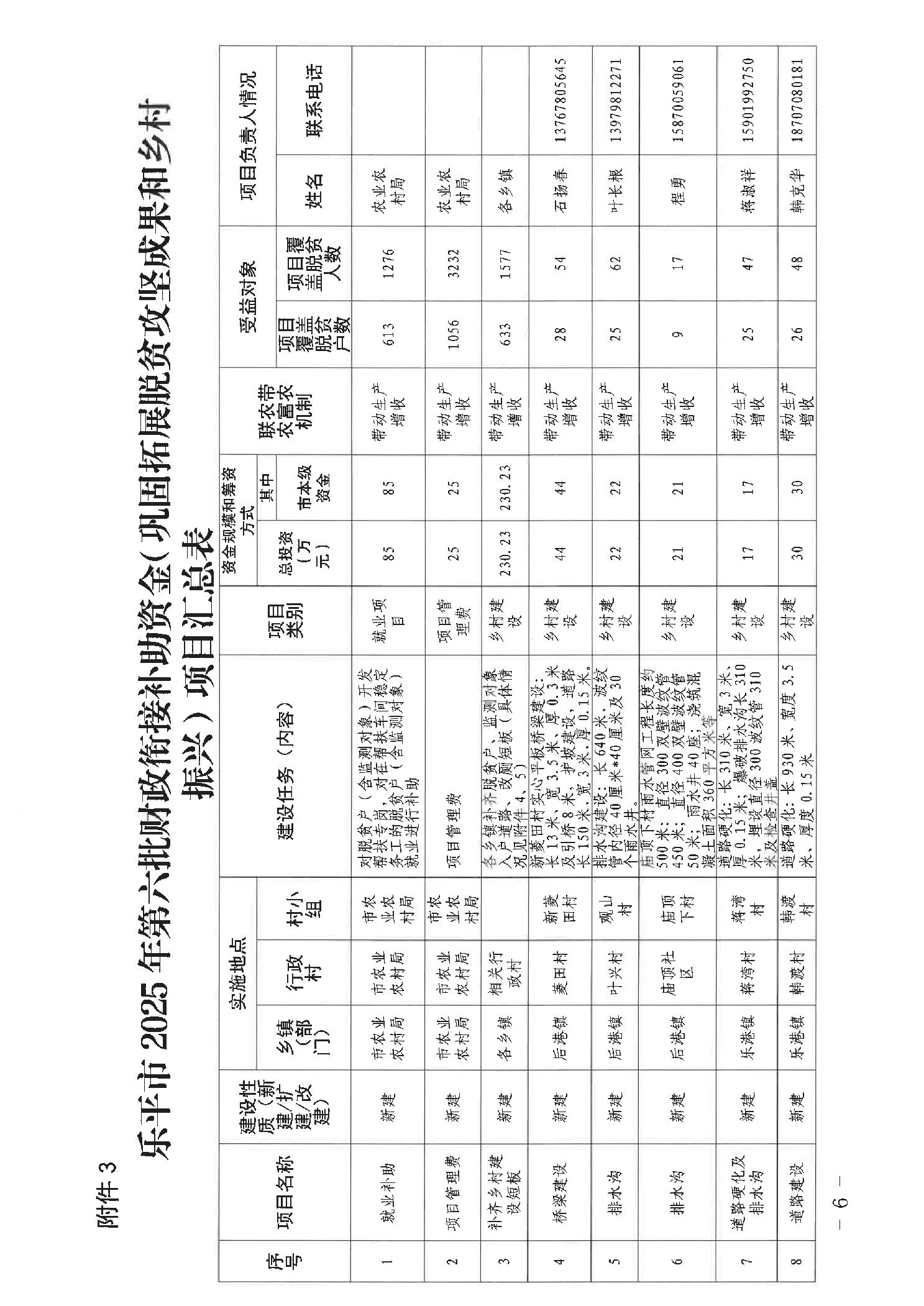 关于下达2025年第六批财政衔接补助资金(巩固拓展脱贫攻坚成果和乡村振兴)项目的通知