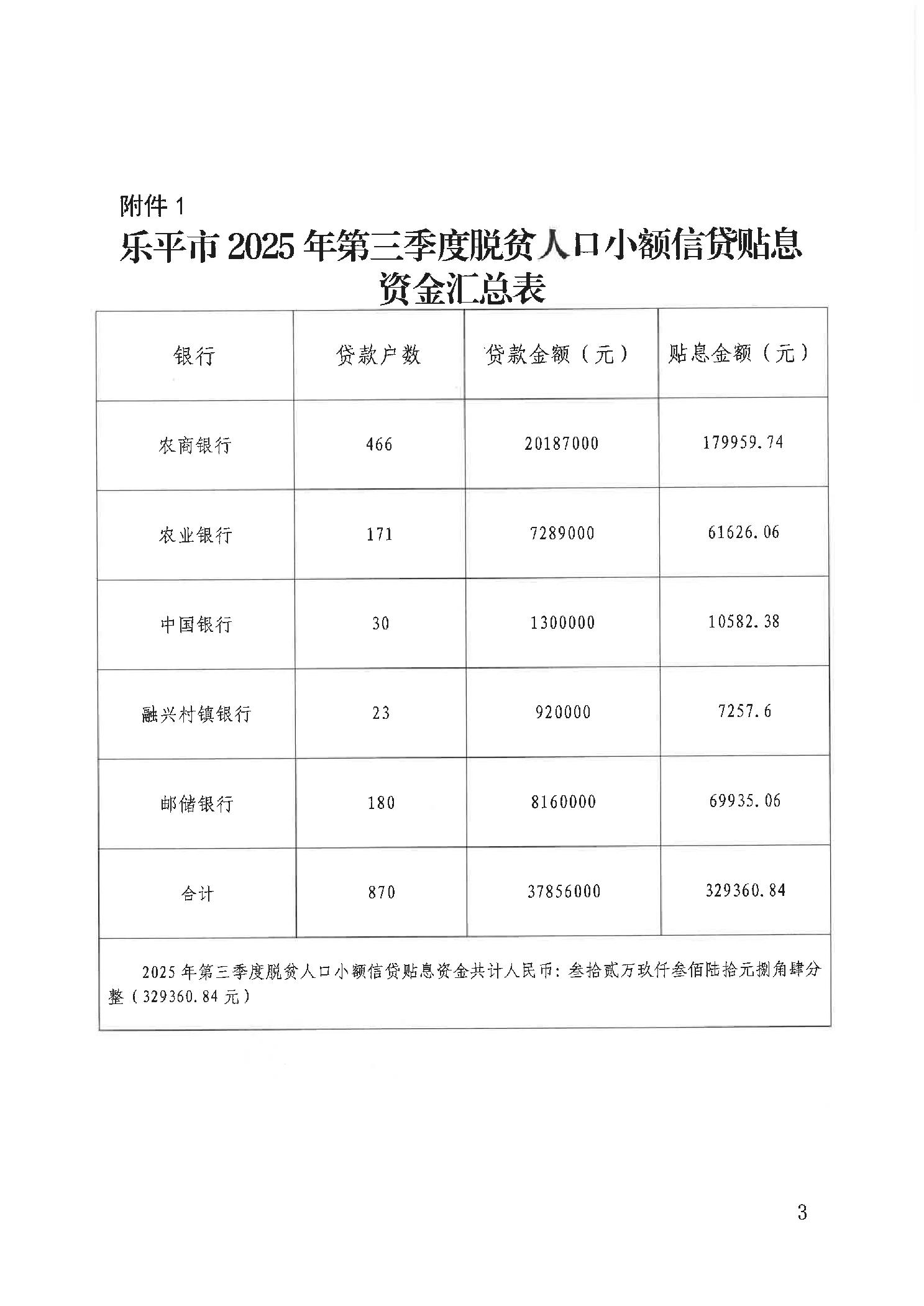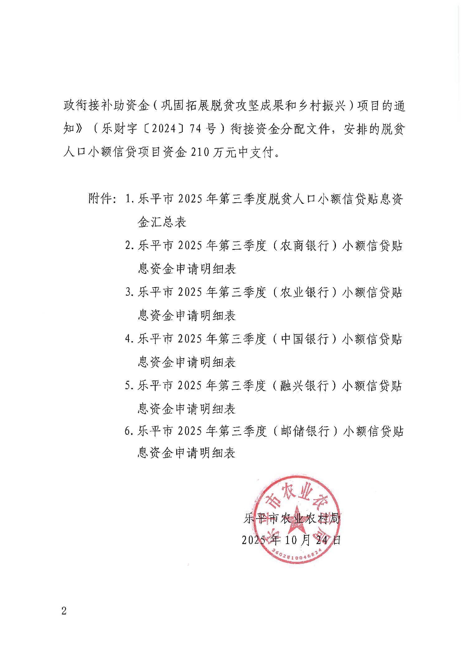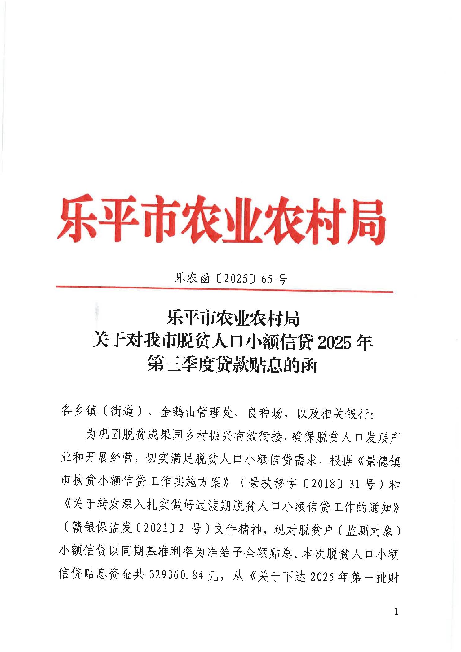 关于对我市脱贫人口小额信贷2025年第三季度贷款贴息的函