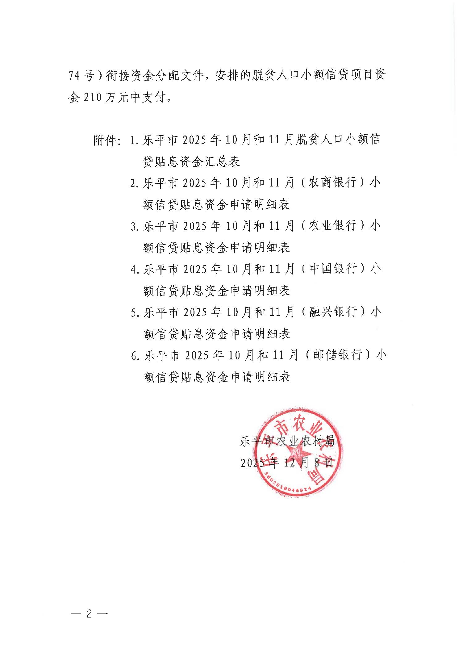 关于对我市脱贫人口小额信贷2025年10月和11月贷款贴息的函