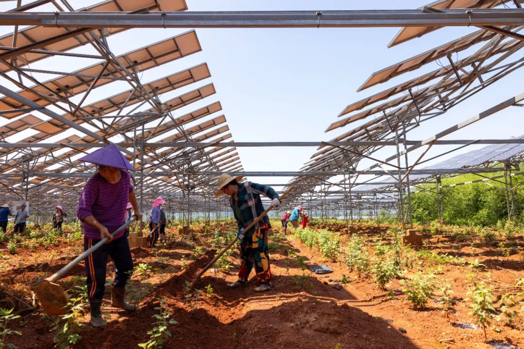 ▲中药材种植基地一派繁忙景象