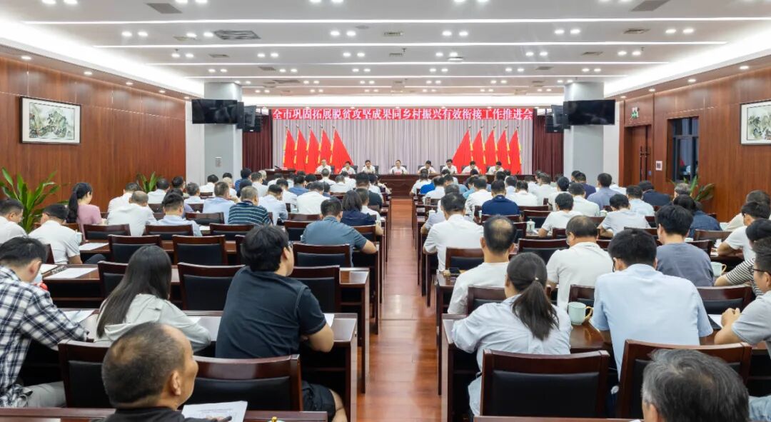 近日,全市巩固拓展脱贫攻坚成果同乡村振兴有效衔接工作推进会在市为民服务中心召开。市委副书记、市长吴艳出席会议并讲话。市委副书记汪德胜主持会议,副市长李晓滨传达了上级会议精神并通报有关情况。市领导潘赛新、朱瑞龙、王枥珍、张琦、吴鲲、戴戎等出席会议。