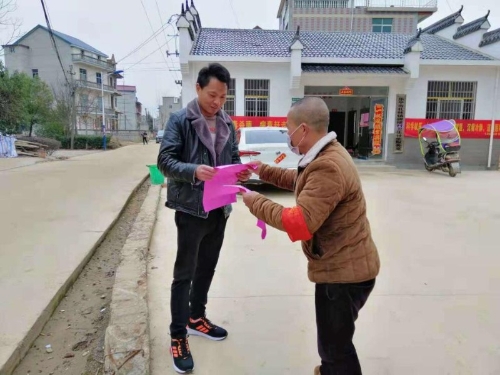 ▲马金海发放疫情防控宣传单