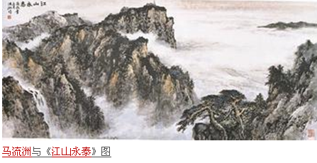 生活是创作的源泉。石涛有“搜尽奇峰打草稿”的名言,马流洲十分注重从大自然中吸吮养料,对祖国的大好山川有种特殊感情。他多次北登泰山、长白山,南探珠江源头,西上张家界、天山,还深入到云、贵、川深山老林写生作画。朝观日出、暮览烟霞,听万壑松涛,看千山飞瀑,领略大自然雄壮之美。以真山水作为自己创作资源,用笔墨来写山水的真性情,表达自己的真切感受。2006年2月,他应邀为天安门城楼中厅创作《江山永泰》巨幅山水画,这是画家宏卷巨制的代表作。为画好这幅巨作,马流洲三次登泰山写生,上百次观云海,惨淡经营,几易其稿,反复提炼,寻找最佳表现形式,以深化《江山永泰》这一绝妙的主题。巨画苍松屹立,千峰涌翠,万里腾波,一轮红日从云海中腾跃而出,灿烂无比,它象征着伟大祖国永远蒸蒸日上、国泰民安、民族兴旺,雄伟壮观的气势给上天安门城楼参观的中外宾客以强烈的震撼。