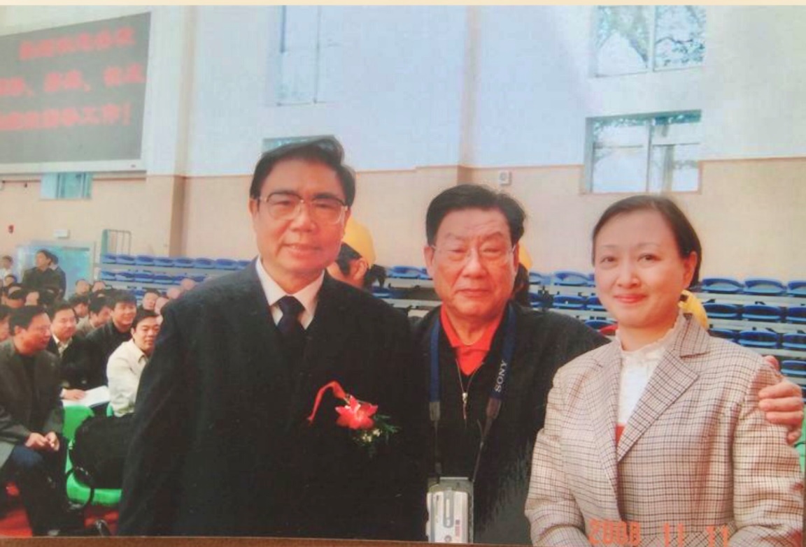 2 008年11月11日,作者和程绍沛同乐平市副市长、《乐平报》原总编辑朱菁华(右)在庆祝乐平中学建校80周年大会上。