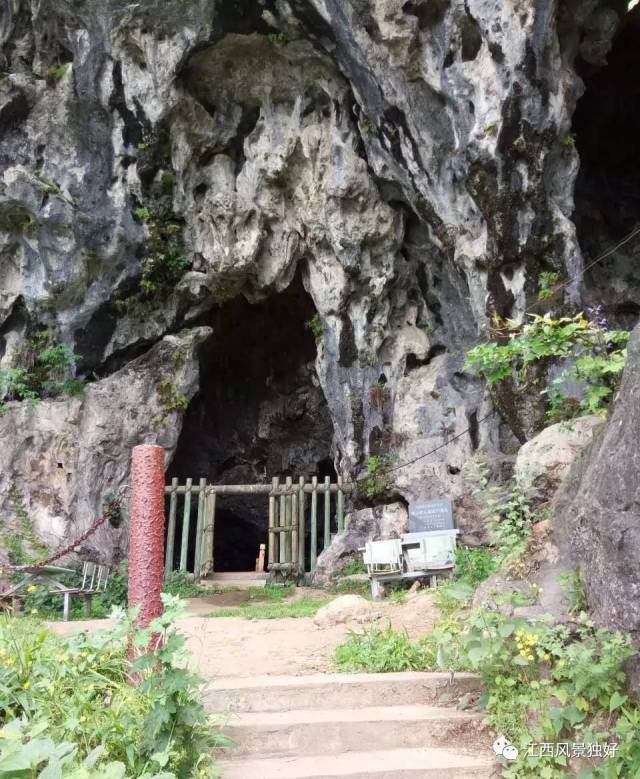 洞口朝南,洞口外有一块与岩洞连成一片的一百平方米左右的平台,就是天然的院落,两侧有类似滑滑梯的岩石斜坡和类似捉迷藏的小型岩洞,洞口外四周都是悬崖峭壁,山上的猛兽很难对在“院落”工作、嬉戏、晒太阳和生活在洞内的先祖们造成威胁,因此不需要担心洞内洞外的安全问题,更不需要考虑洞口守护和防御其它猛兽的入侵,这是绝大多数洞穴所不具有的条件。这里四季恒温,不冷不热;常年有水,却不干不湿,俨然是上天给部落首领造就的圣地。在石床一侧的六个梯度水槽中,倒映着洞窟的穹顶上镌满了的历朝历代的居士、游客创作拓刻的章句,增添了古朴而富有神奇的文化色彩。这样的岩洞条件最适合猿人向直立人还没有完全进化完的人类生存、生活,这恐怕是全球千千万万岩洞绝无仅有的独特条件。