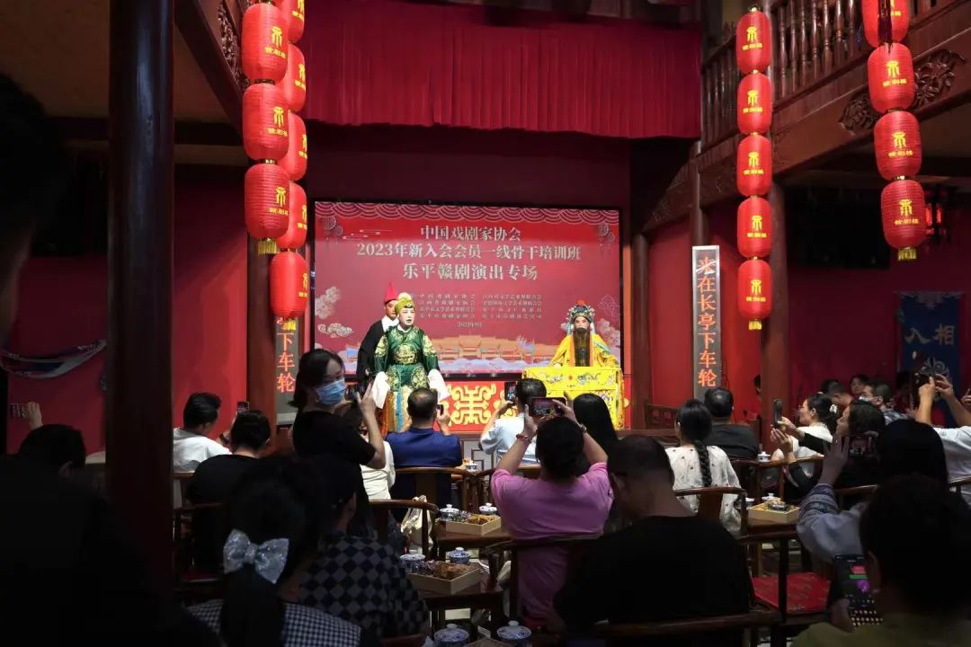 当晚,培训班学员一行在乐平市非物质文化遗产馆·赣剧楼观摩了由乐平市戏剧家协会、乐平市赣剧演艺公司共同精心选排的经典赣剧专场演出。在演出互动环节,由素有“赣剧百科全书”之称的中国戏剧家协会会员蒋良善老师担任讲解嘉宾,现场为大家讲解了国家级非遗项目赣剧的历史文化及演员行当、服饰、道具等。让现场的中国剧协专家和会员们近距离领略赣剧文化,体验赣剧艺术的独特魅力。