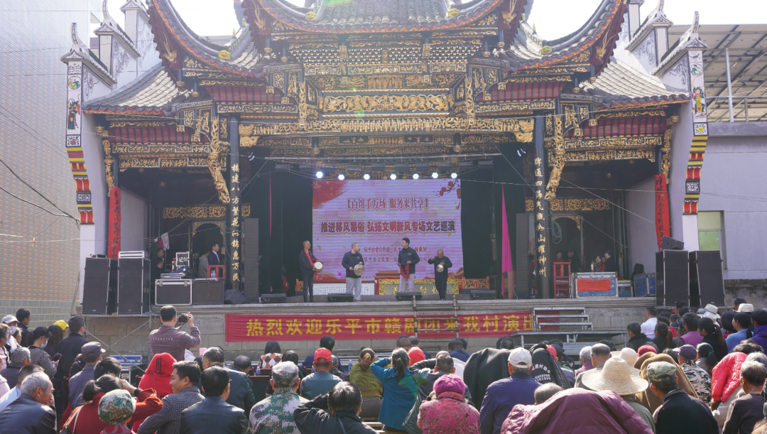 由乐平市文化馆组织的“乐赣轻骑兵”文艺志愿服务队立足“小、快、灵”,利用群众喜闻乐见的方式,创编的乐平大鼓《夸夸乐平我的家》、三句半《移风易俗新风来》、赣剧《江边会友》选段等精彩节目依次登台,以围绕宣传党的二十大精神,推进移风易俗、弘扬文明新风,通过文艺节目表演的方式引导广大群众自觉摒弃陈规陋习,养成勤俭节约、文明高尚的生活方式。